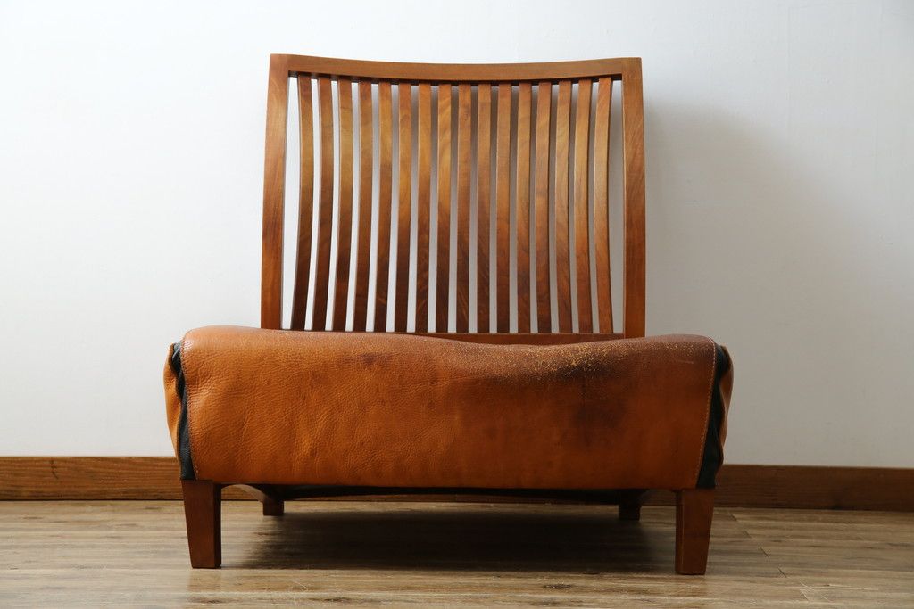 ソファ> 1人掛けソファ > 中古 希少な廃番品!! BC工房 安楽きらきら椅子 チーク材 ワイドタイプ 和洋どちらの空間にも取り入れやすいアームレスチェア(1Pソファ、一人掛け)(R-081785)