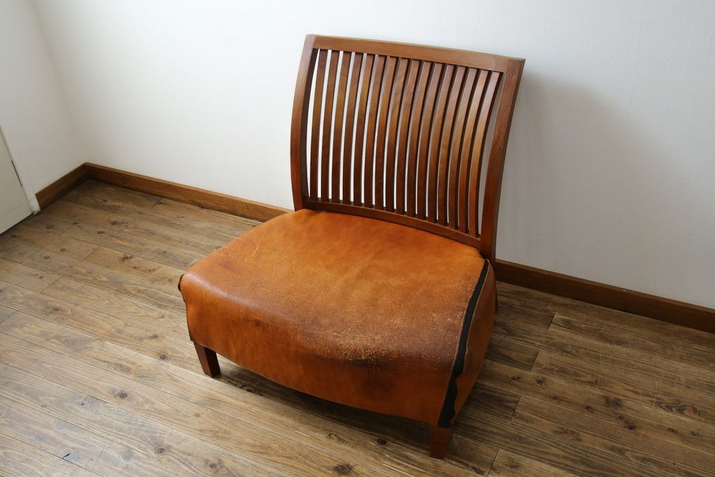 中古 希少な廃番品!! BC工房 安楽きらきら椅子 チーク材 ワイドタイプ 和洋どちらの空間にも取り入れやすいアームレスチェア(1Pソファ、一人掛け)(R-081785)です。