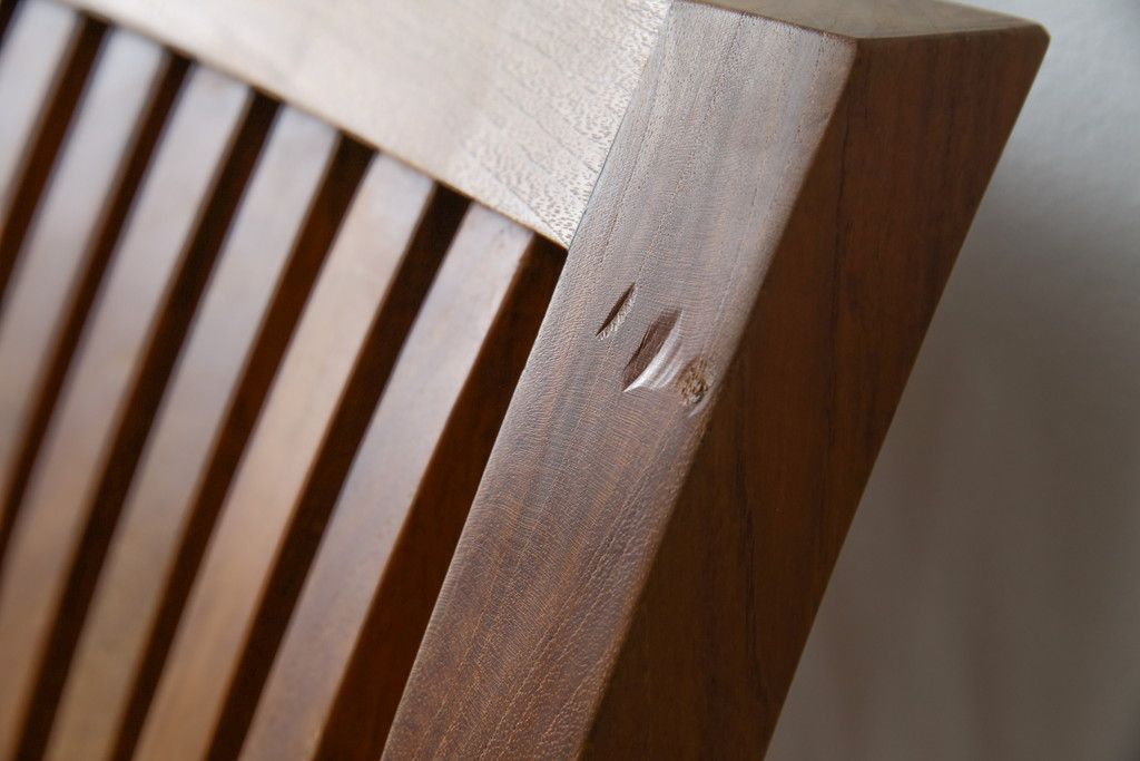 37、38枚目の画像にありますように正面の貫部分が欠損しております。使用上、強度上に問題はありません。