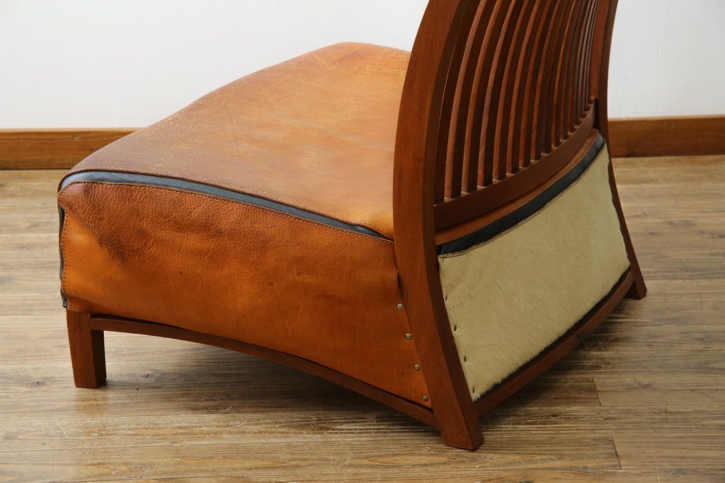 中古 希少な廃番品!! BC工房 安楽きらきら椅子 チーク材 ワイドタイプ 和洋どちらの空間にも取り入れやすいアームレスチェア(1Pソファ、一人掛け)(R-081785)