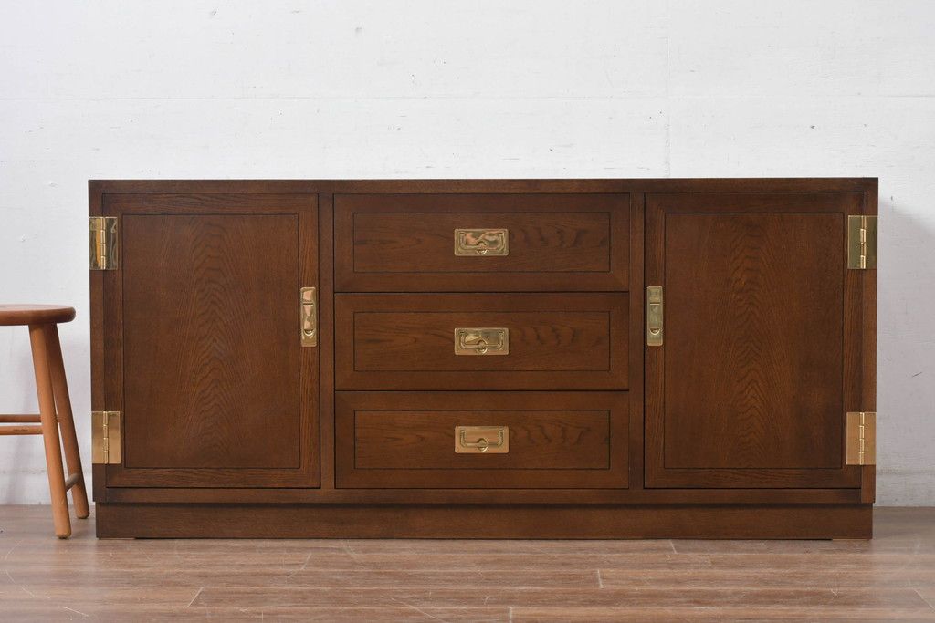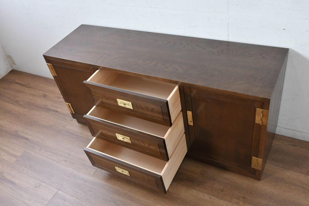 中古 超美品!! ほぼ新品!! カリモク家具(karimoku) domani(ドマーニ) Morganton(モーガントン) ヒッコリーブラウン 高級感漂う上品なデザインが魅力的なサイドボード(収納棚、戸棚、引き出し、サイドキャビネット)(定価約45万円)(R-081832)
