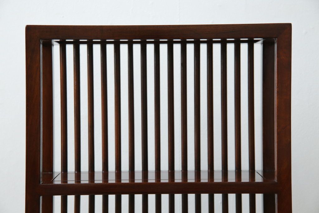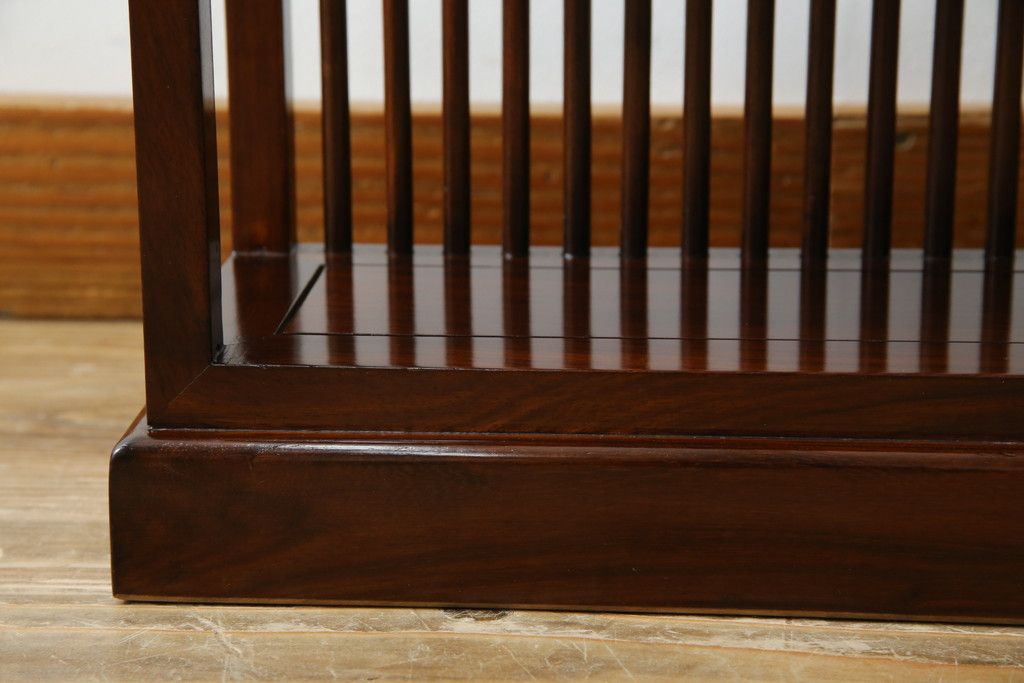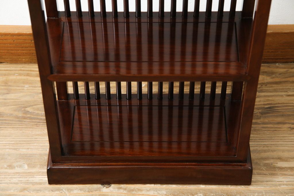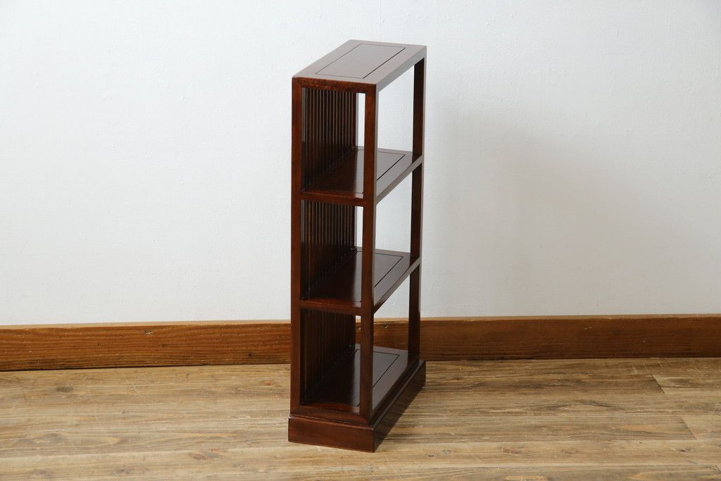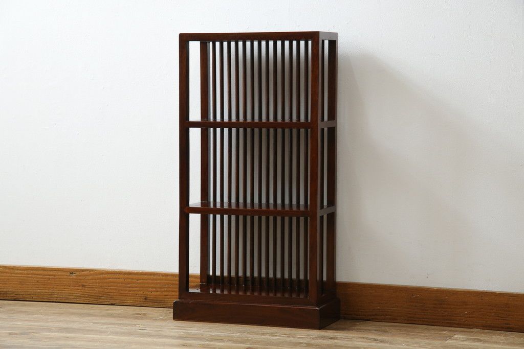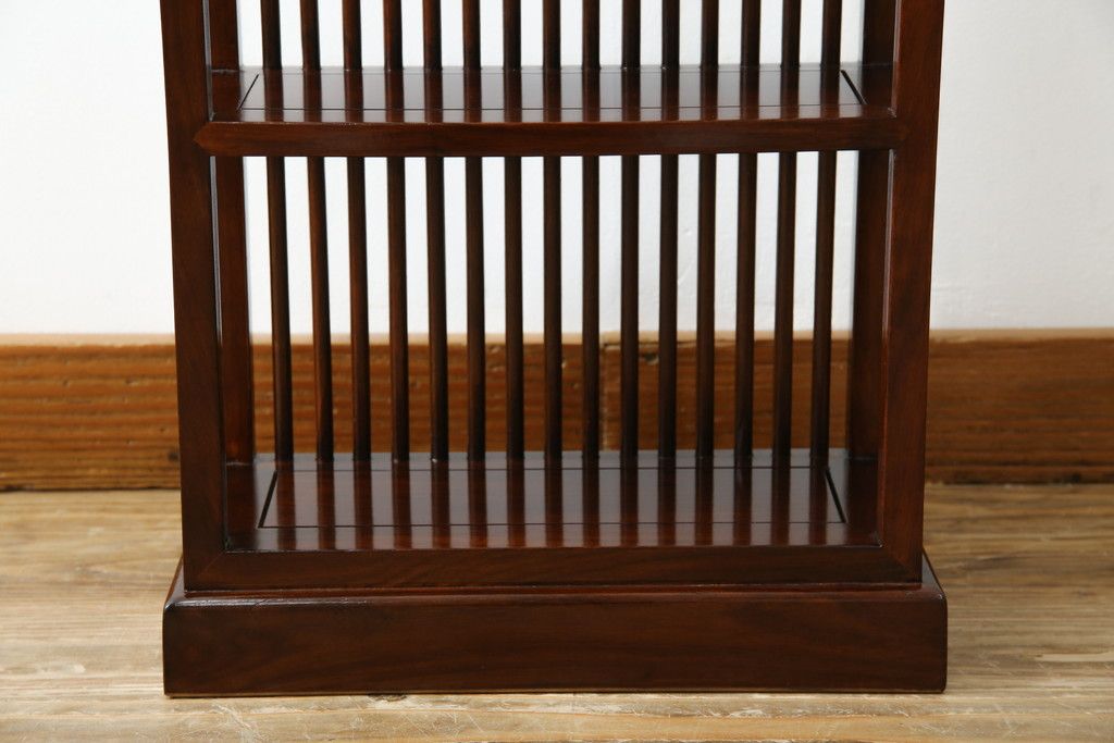 中古 美品 唐木 上品な縦格子が和の美しさを漂わせる小振りな飾り棚(陳列棚、花梨棚、ディスプレイラック、収納棚、オープンラック)(R-081846)