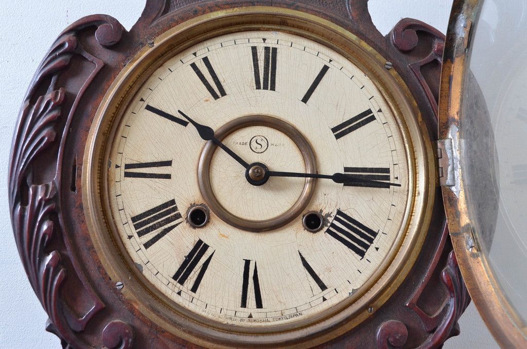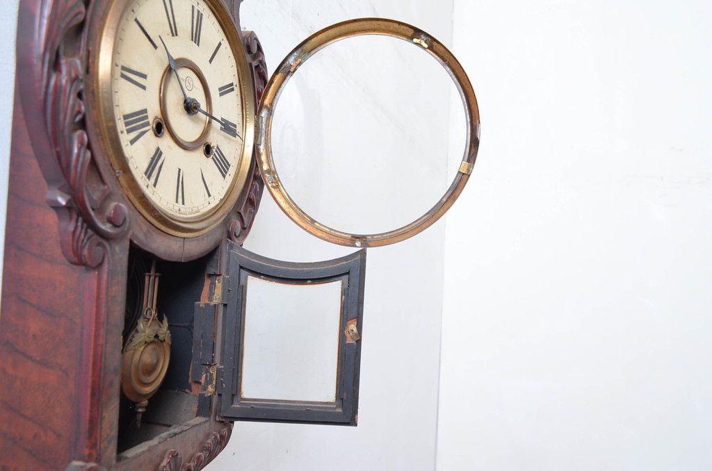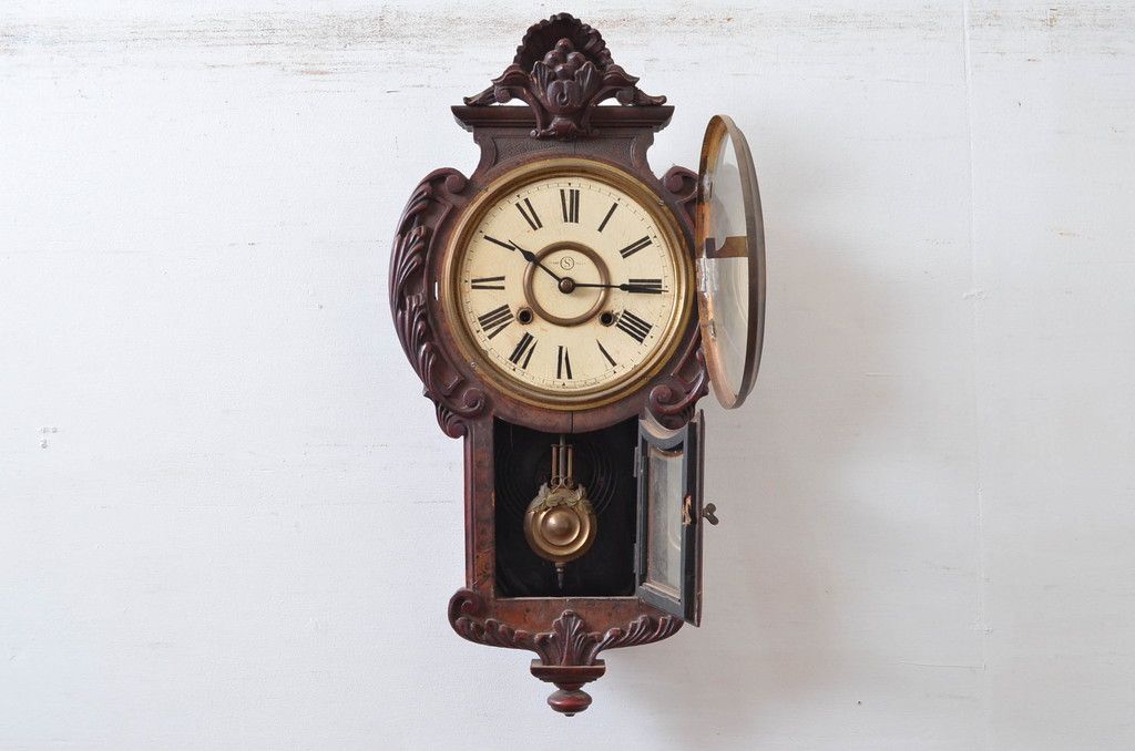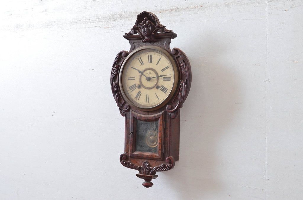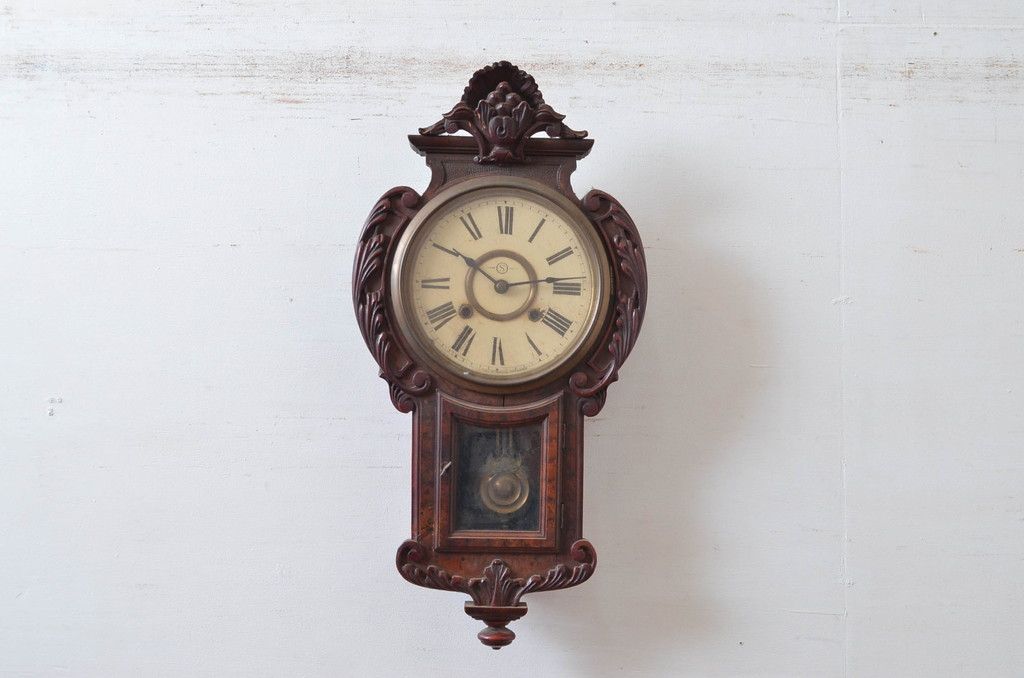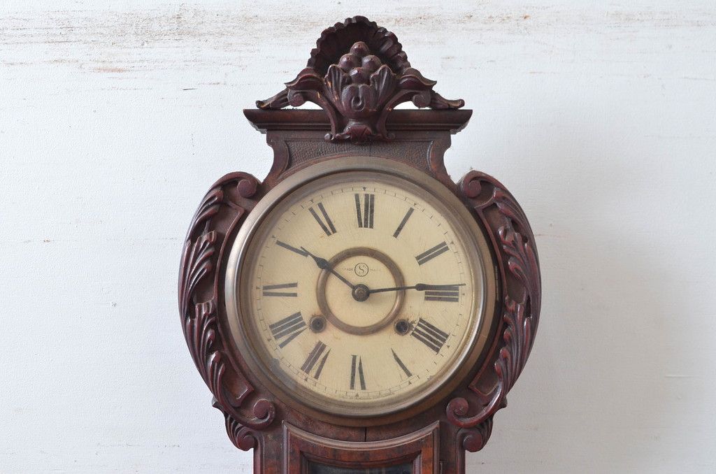 時計> 掛け時計 > 和製アンティーク 意匠を凝らした彫刻が魅力的な掛け時計(振り子時計、柱時計、古時計)(R-081977)