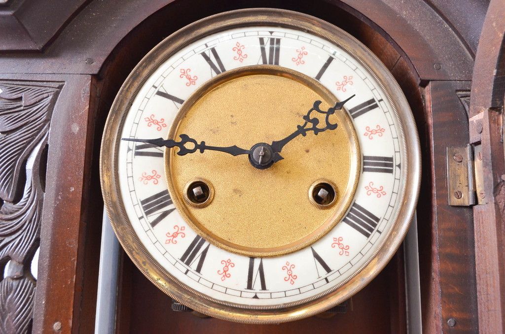 時計> 掛け時計 > アンティーク時計 ドイツ製 JUNGHANS(ユンハンス)社 文字盤が可愛らしい掛け時計(振り子時計、柱時計、古時計)(R-081990)