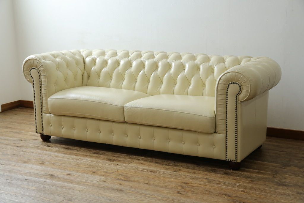 ソファ > 中古 超美品 ほぼ新品 入手困難商品 SUNTON(サントン)社 Huntington(ハンティントン)シリーズ 本革(レザー) 上質な空間づくりに取り入れたいチェスターフィールドソファ(2P、2.5P、3P、2人掛け、2.5人掛け、3人掛け)(R-082055)