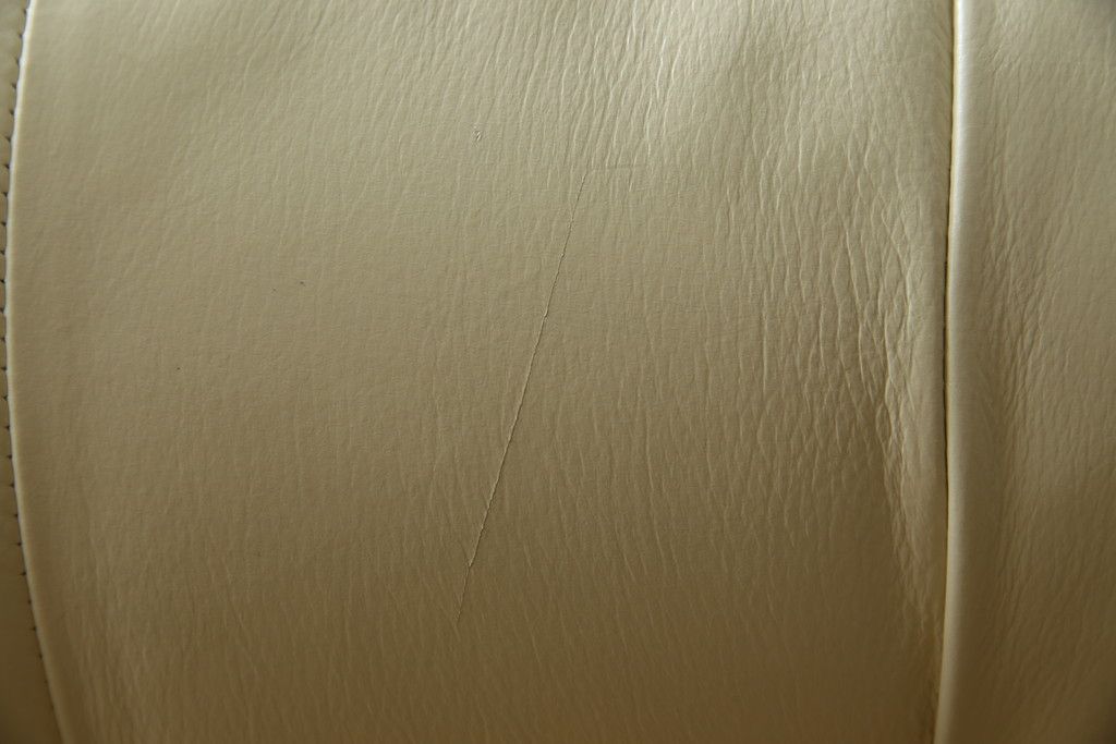 34枚目の画像にありますように背もたれ後ろ側上部の革表面に傷がありますが、使用上、強度上に問題はありません。