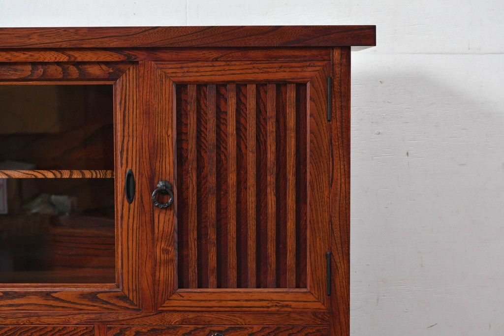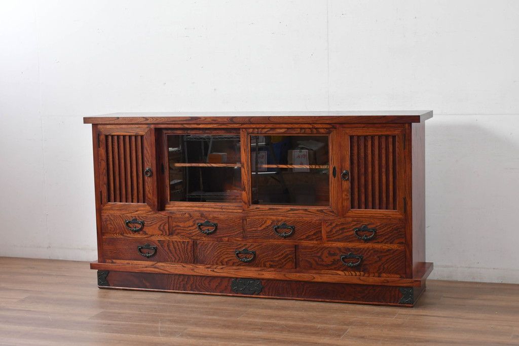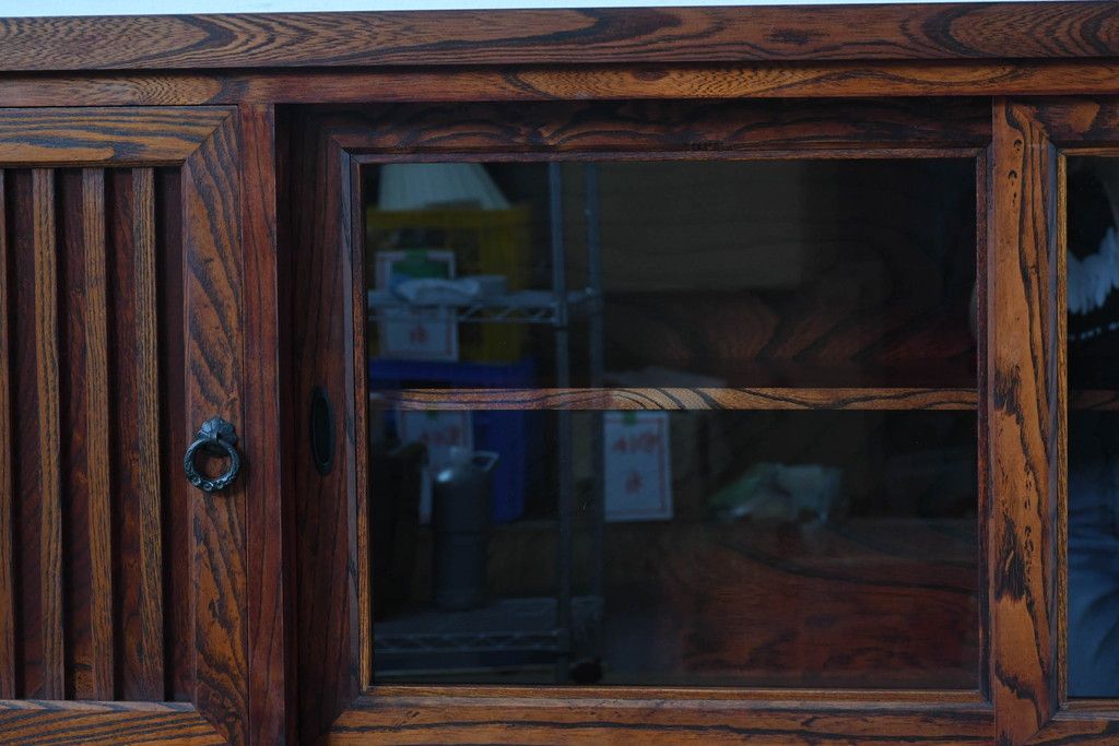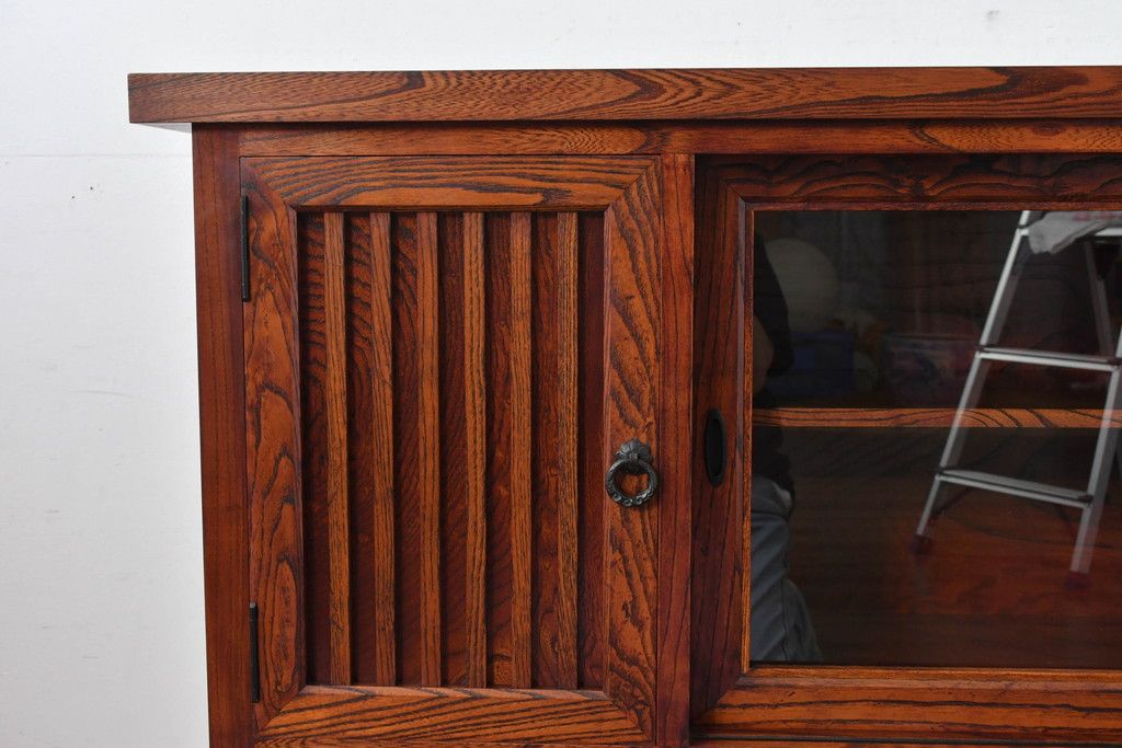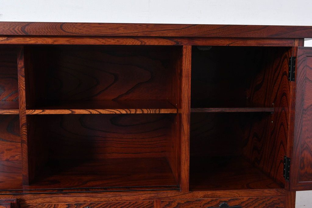 中古 美品 力強い杢目が目を引く岩谷堂箪笥サイドボード(収納棚、戸棚、引き出し、食器棚、カップボード、サイドキャビネット)(R-082066)