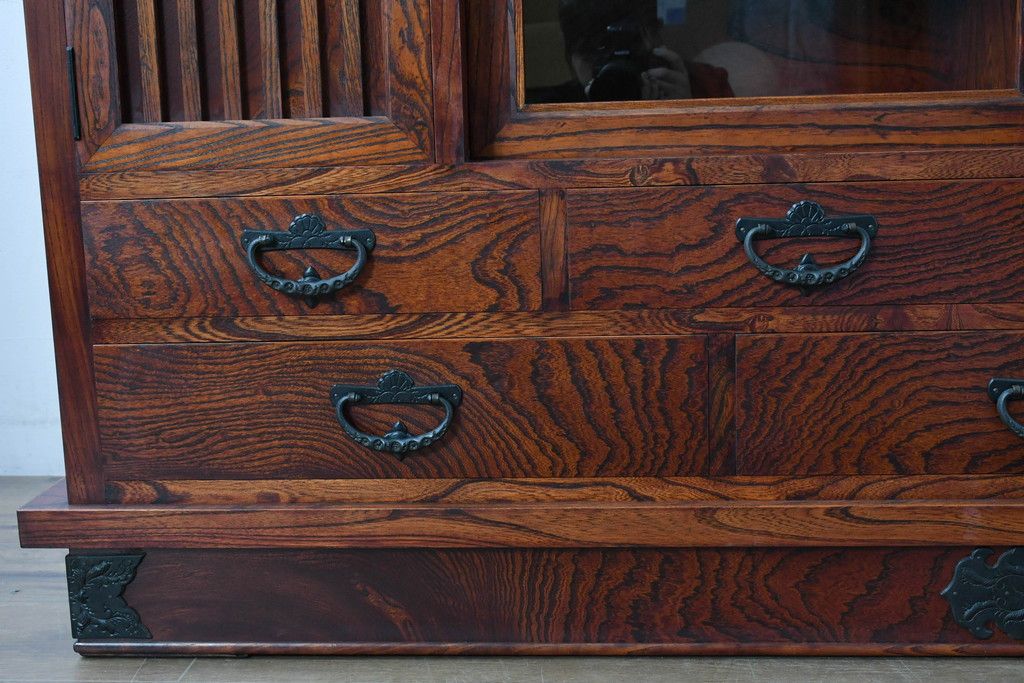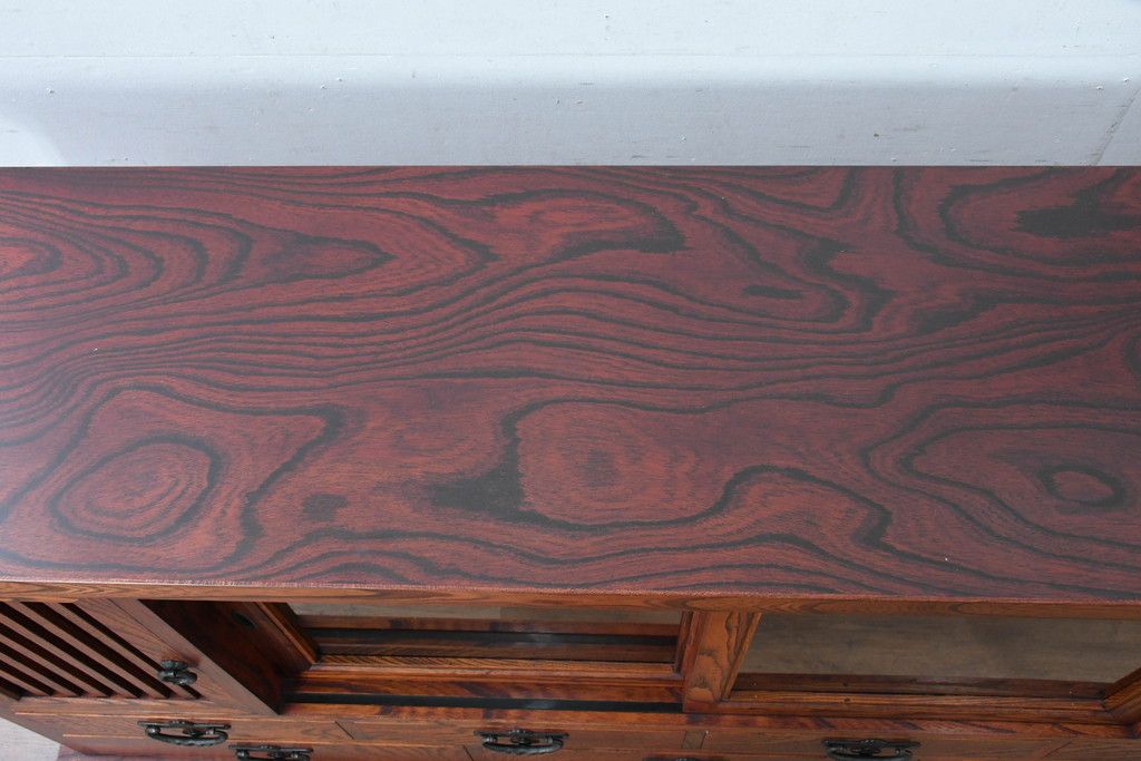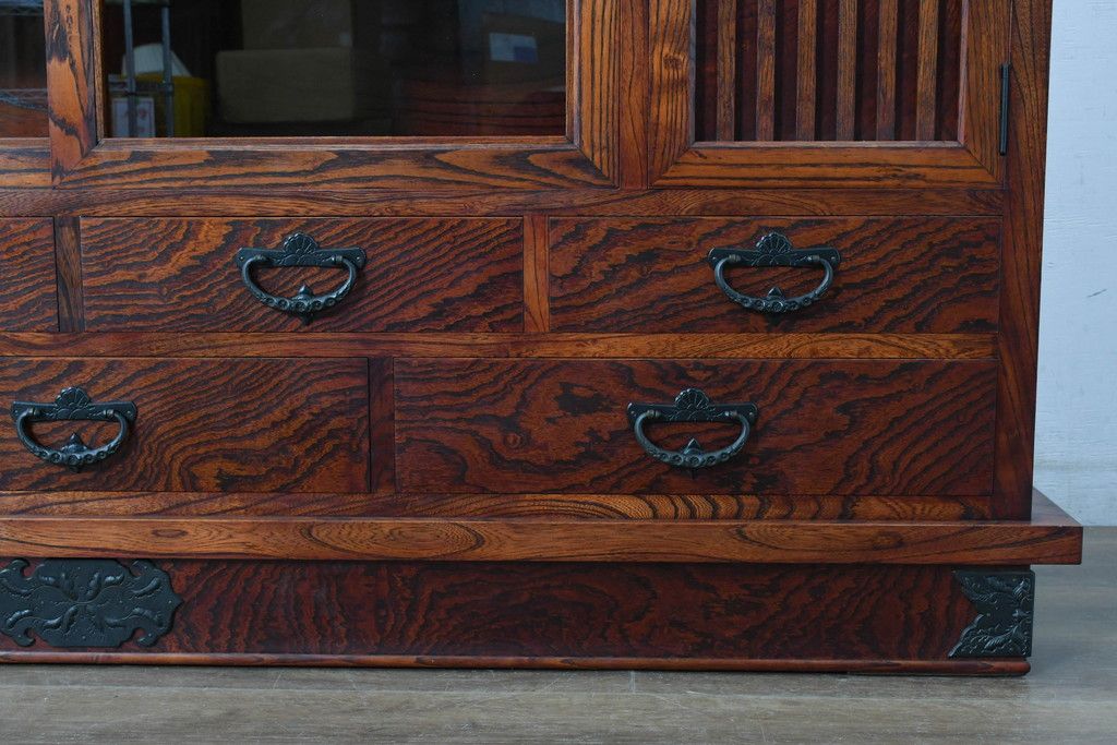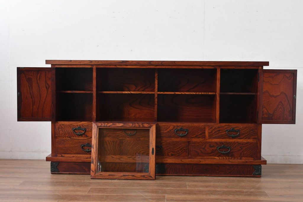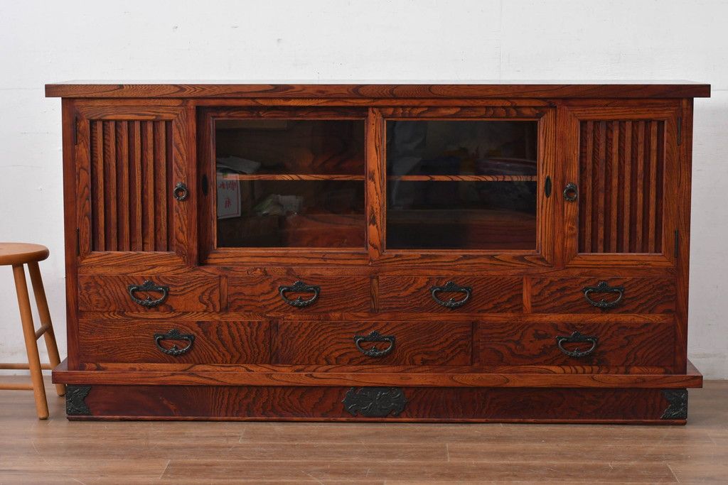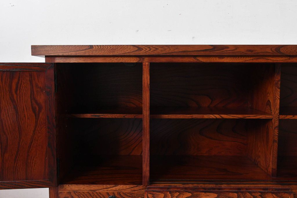 中古 美品 力強い杢目が目を引く岩谷堂箪笥サイドボード(収納棚、戸棚、引き出し、食器棚、カップボード、サイドキャビネット)(R-082066)