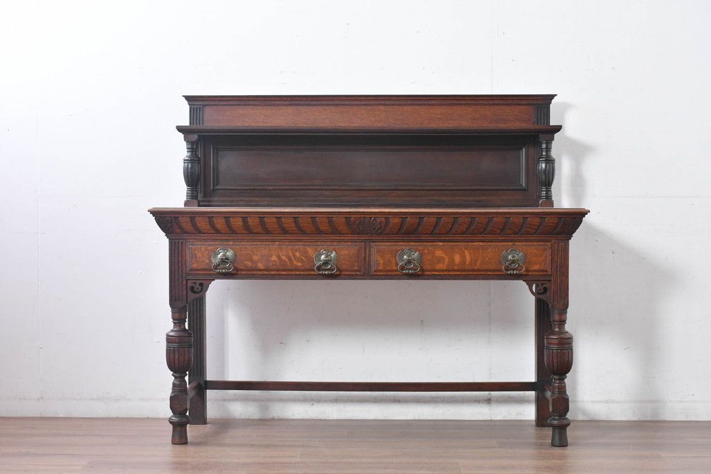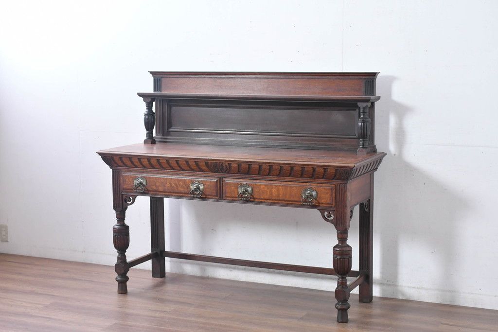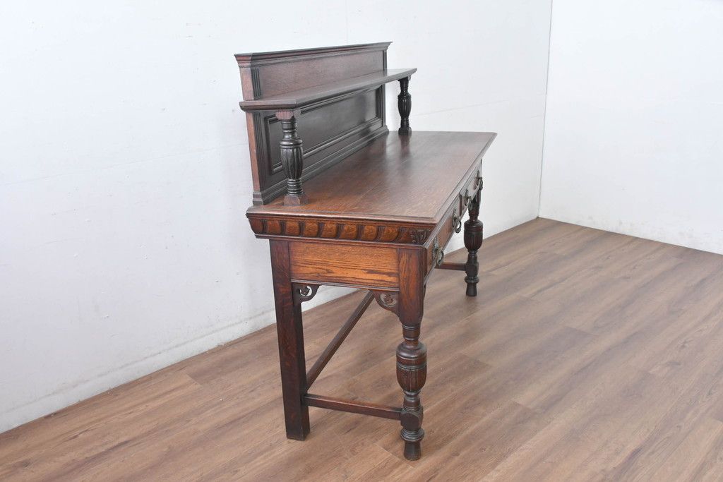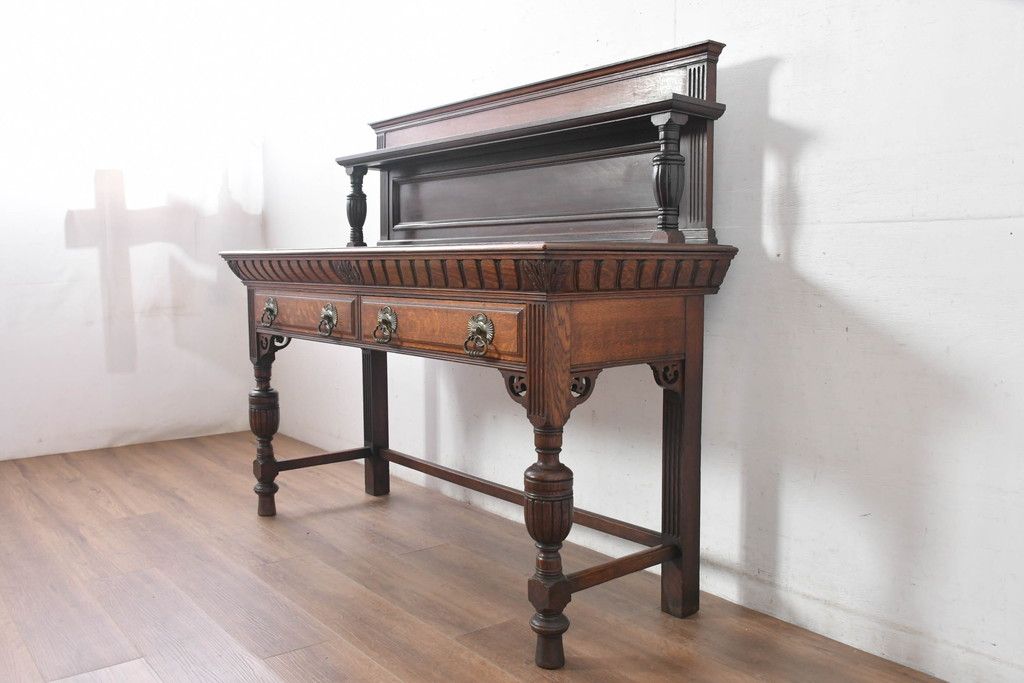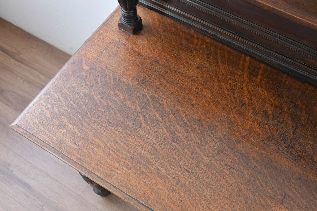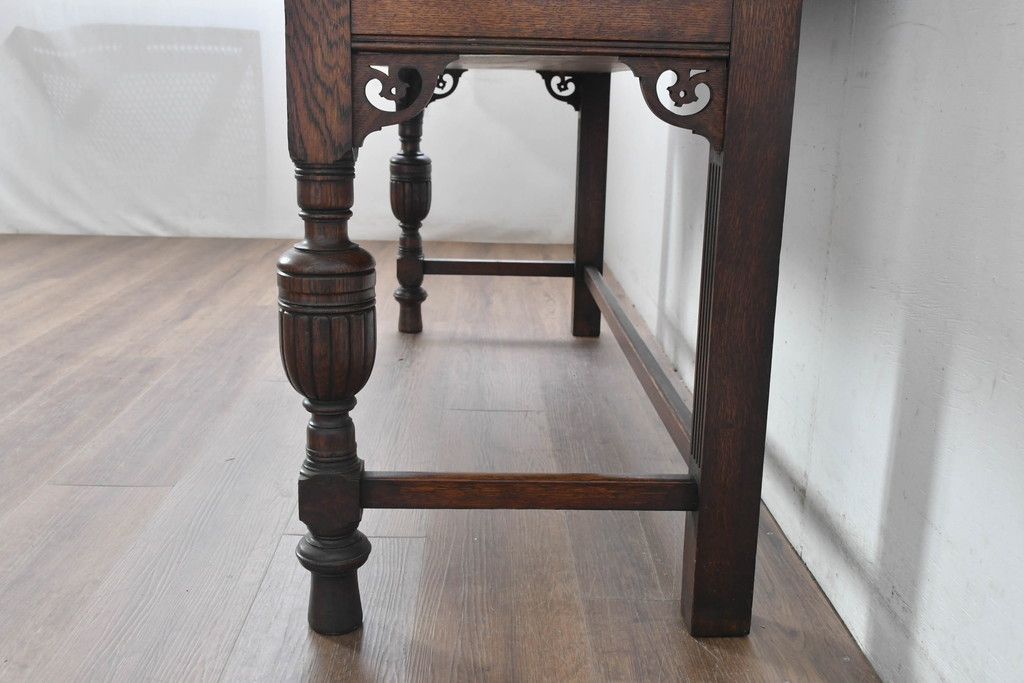 デスク> ワークデスク > イギリスアンティーク オーク材 気品漂うデザインとバルボスレッグが魅力的なサイドボード(コンソールテーブル、キャビネット、飾り台、机、ワークデスク、在宅用、在宅ワーク用、英国)(R-082121)