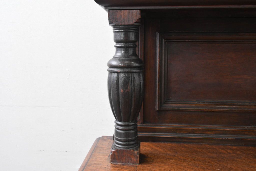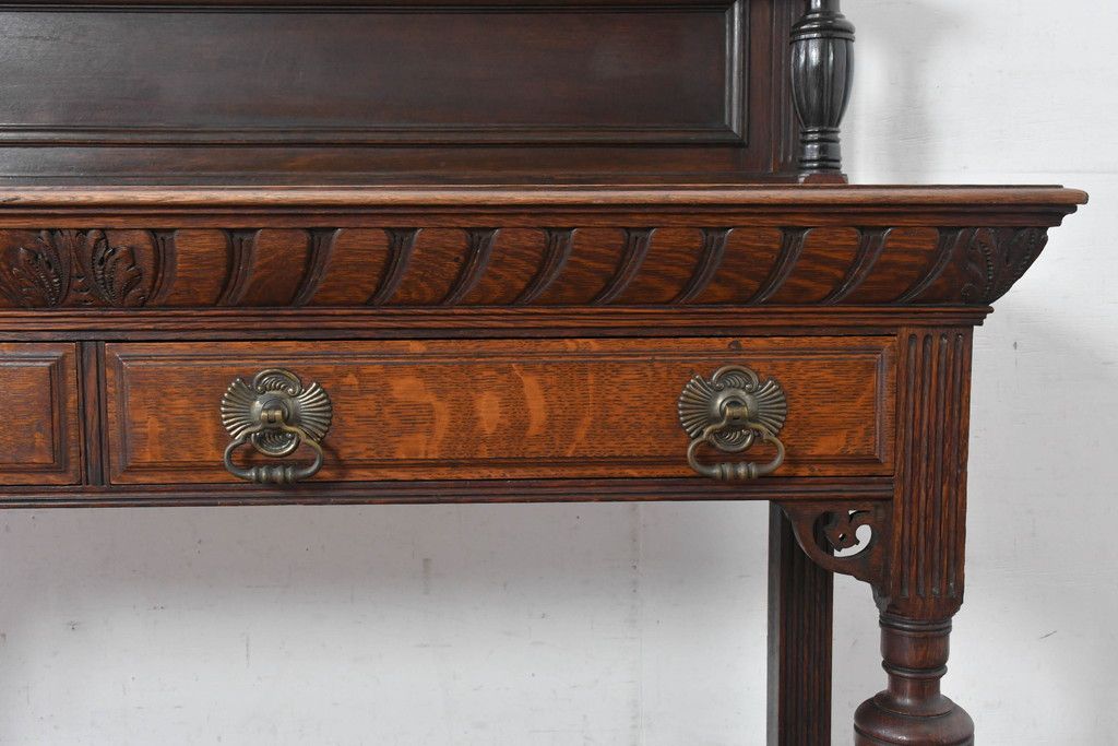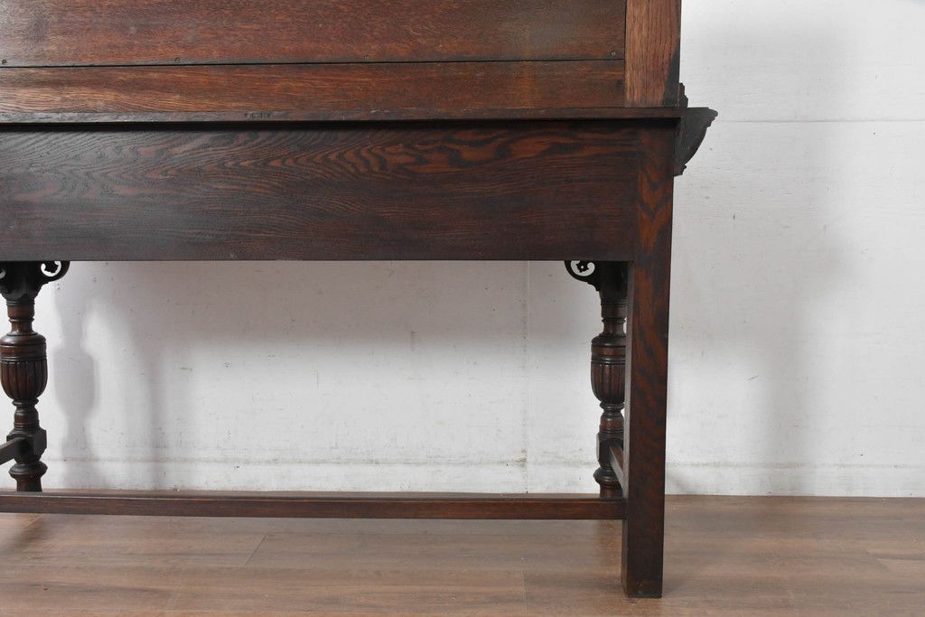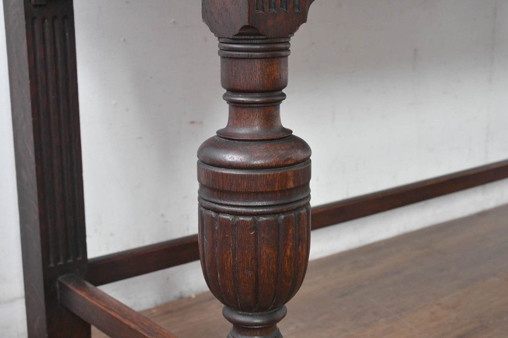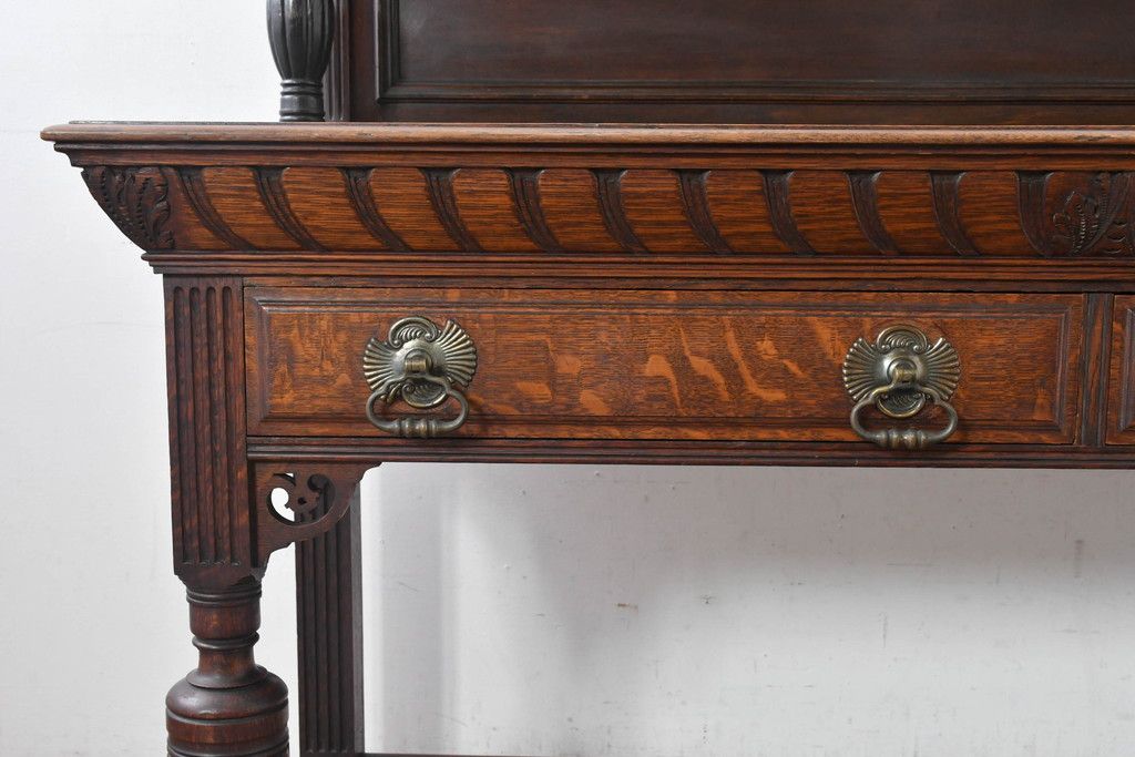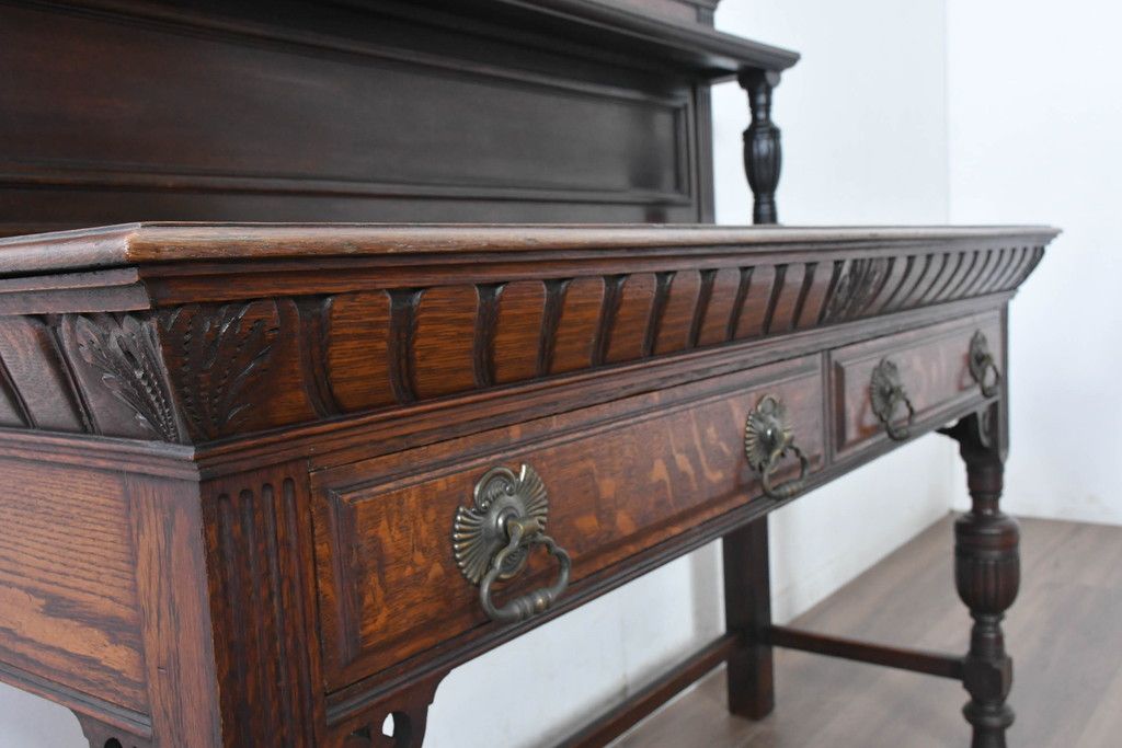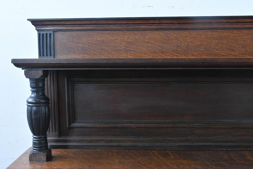 デスク> ワークデスク > イギリスアンティーク オーク材 気品漂うデザインとバルボスレッグが魅力的なサイドボード(コンソールテーブル、キャビネット、飾り台、机、ワークデスク、在宅用、在宅ワーク用、英国)(R-082121)