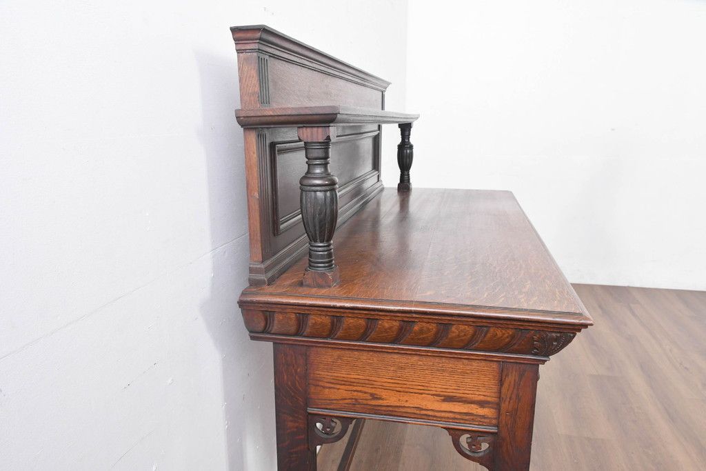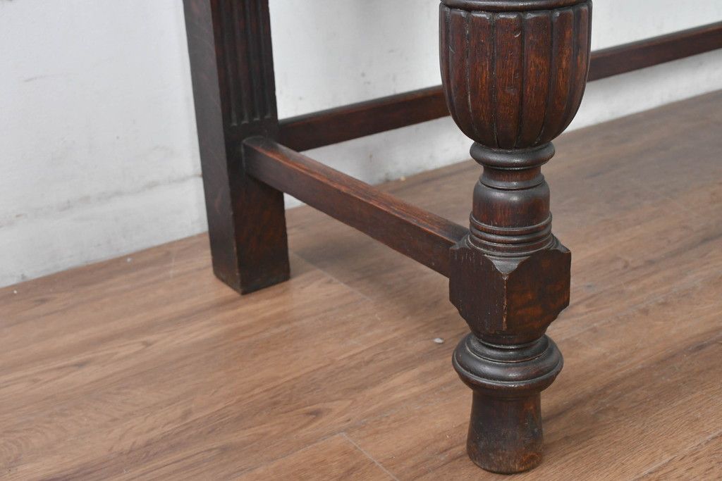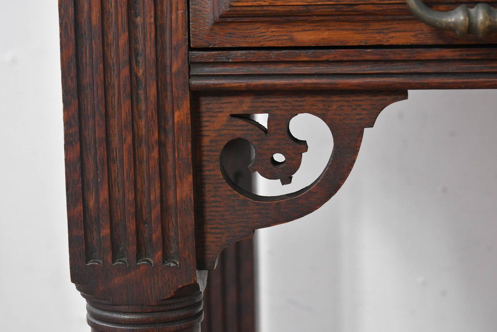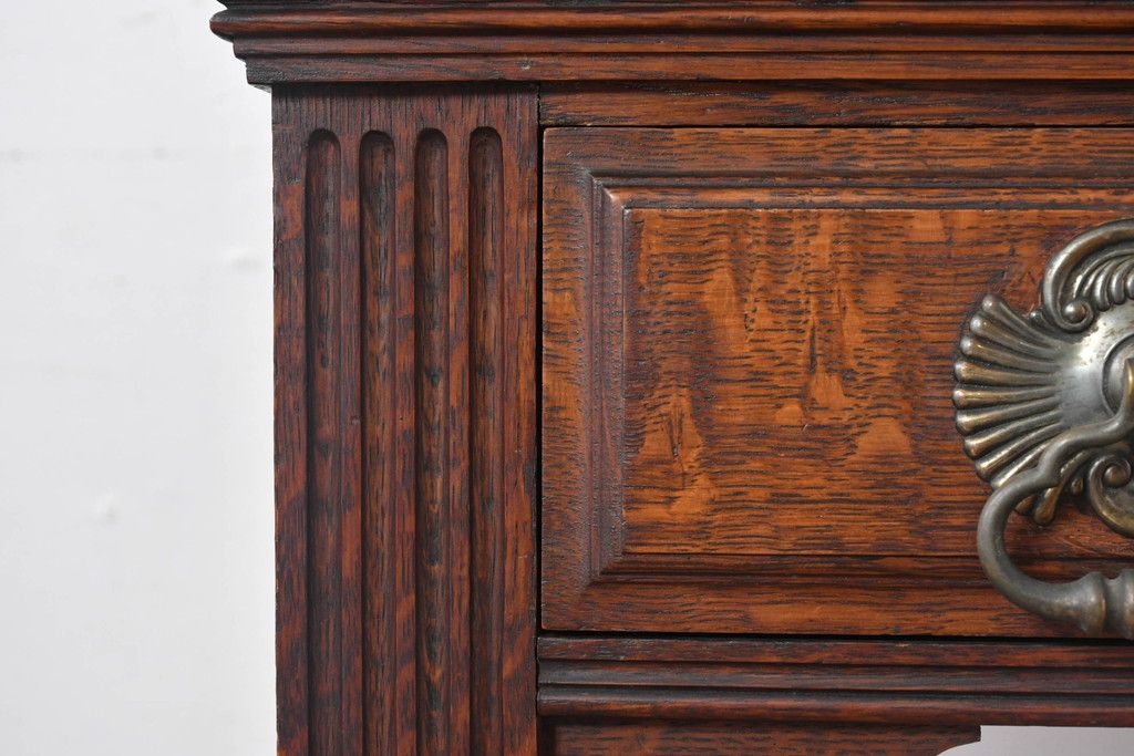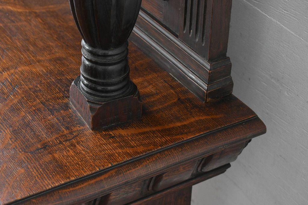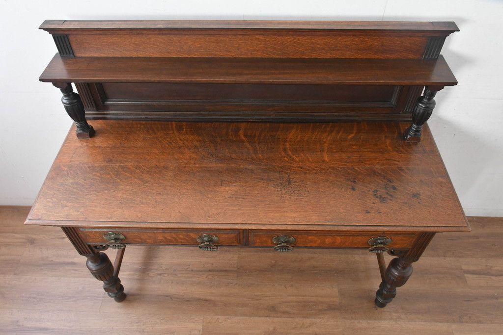 デスク> ワークデスク > イギリスアンティーク オーク材 気品漂うデザインとバルボスレッグが魅力的なサイドボード(コンソールテーブル、キャビネット、飾り台、机、ワークデスク、在宅用、在宅ワーク用、英国)(R-082121)