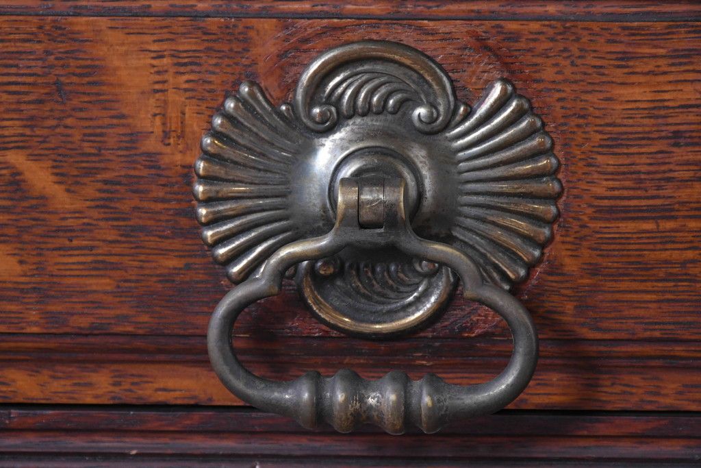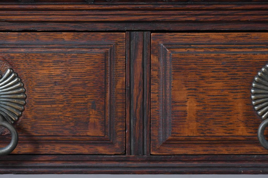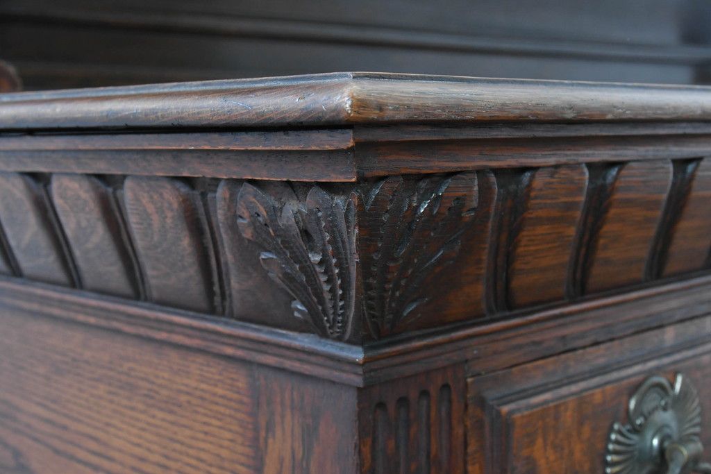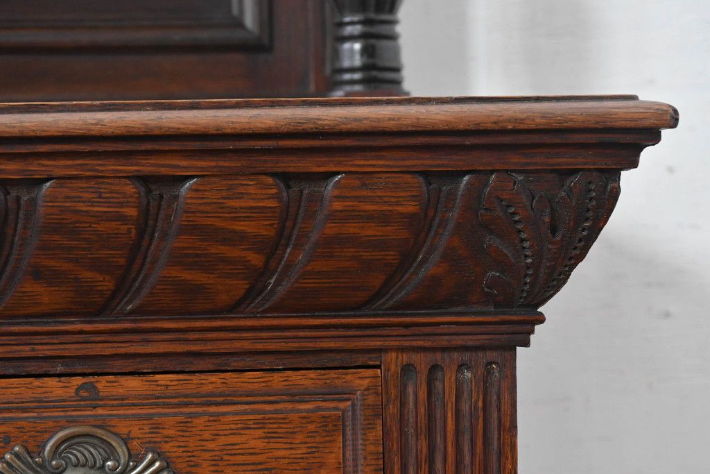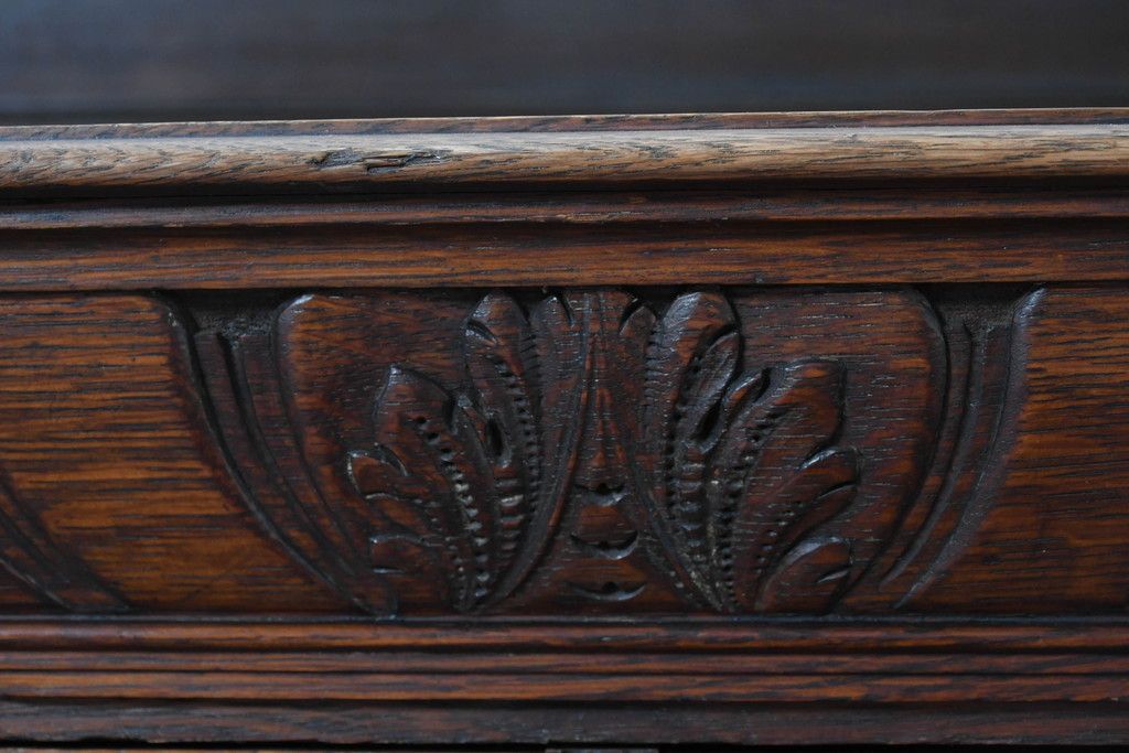 キャビネット・戸棚> サイドキャビネット > イギリスアンティーク オーク材 気品漂うデザインとバルボスレッグが魅力的なサイドボード(コンソールテーブル、キャビネット、飾り台、机、ワークデスク、在宅用、在宅ワーク用、英国)(R-082121)