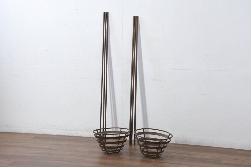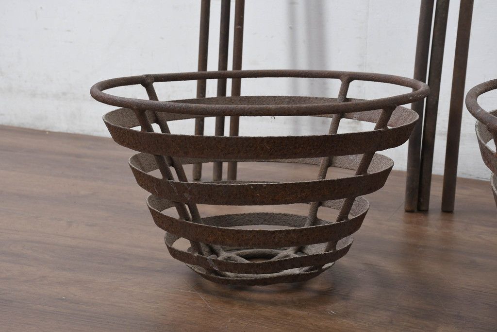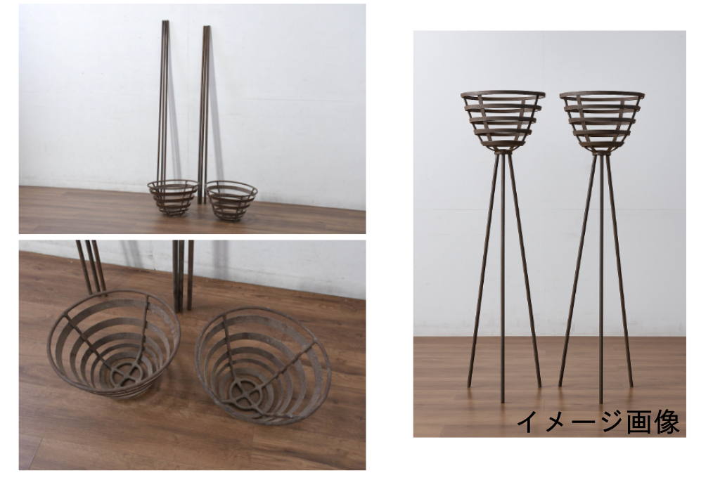 店舗什器 > 【簡易リペア限定品】 和製アンティーク 希少 屋外演出に最適な鉄製の篝火スタンド1対 (R-082158)