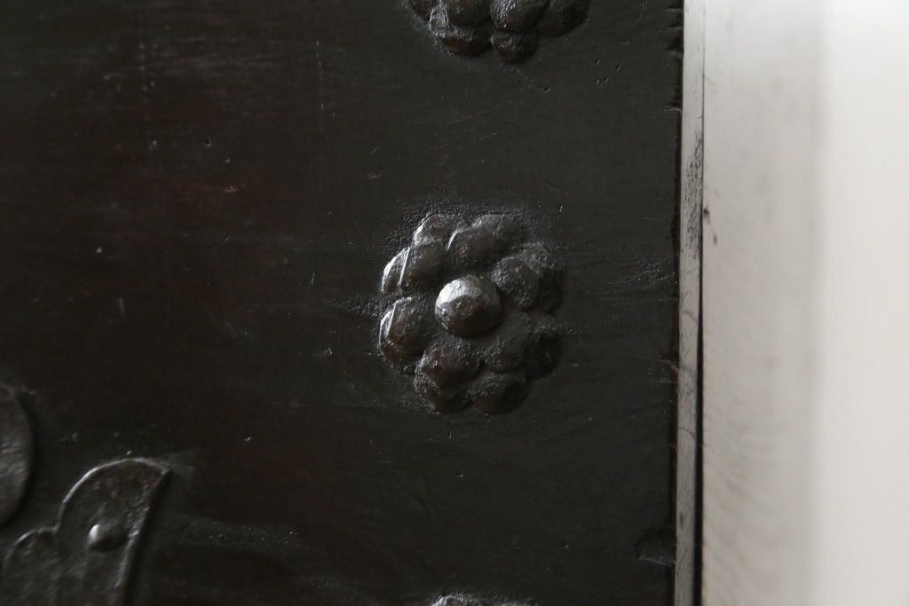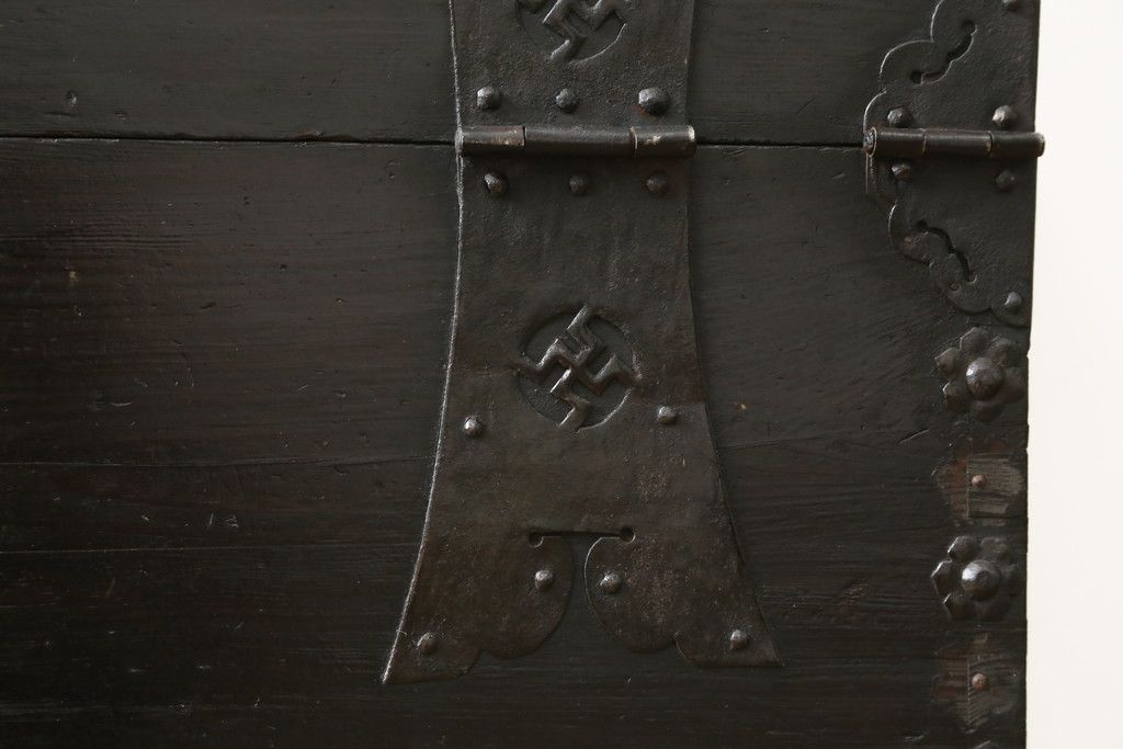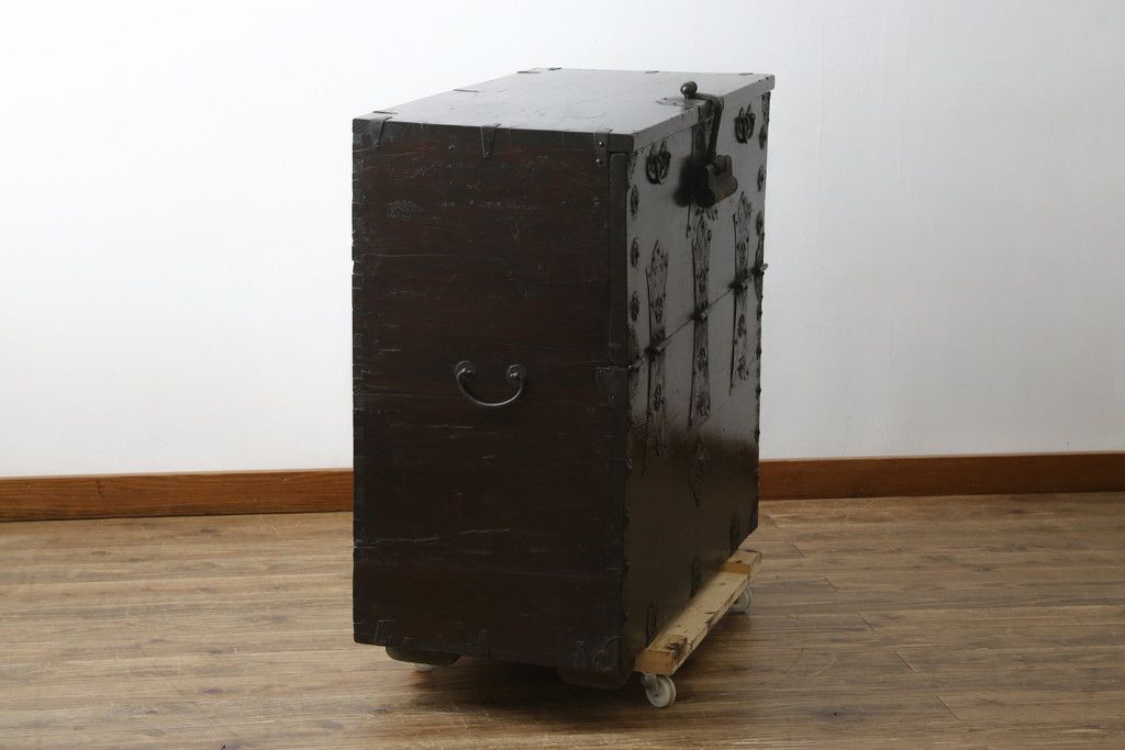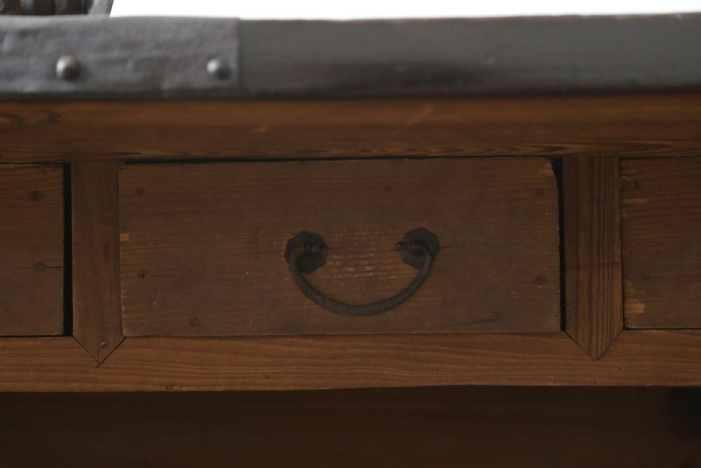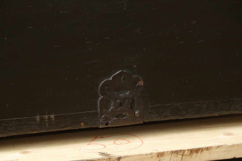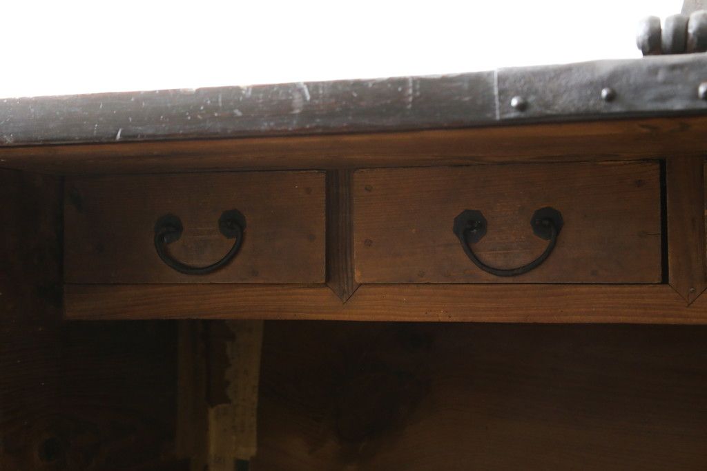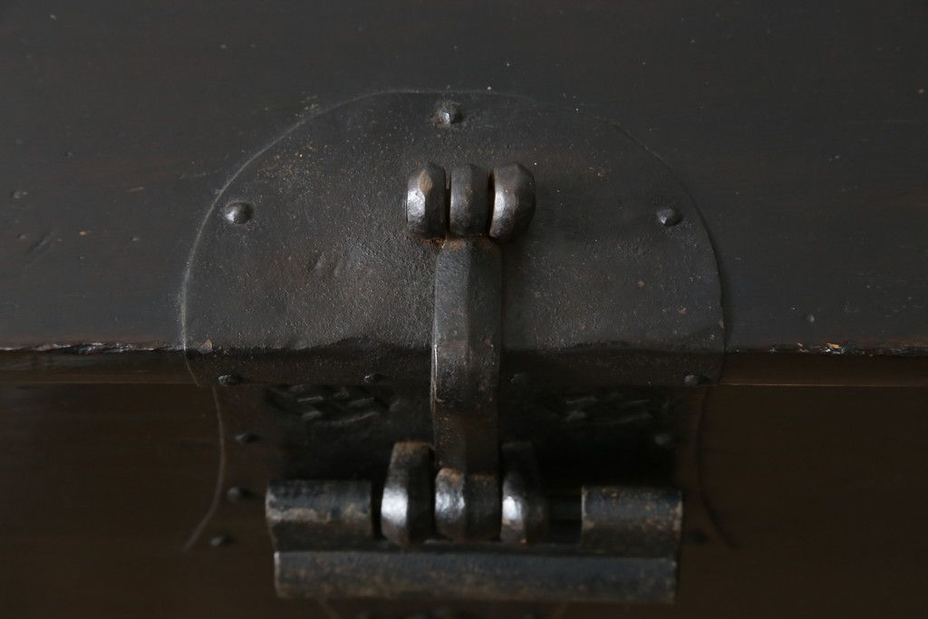 和箪笥 > 和製アンティーク 松材 重厚感のある金具が目を惹くバンダチ(バンダジ、半閉櫃、李朝箪笥、時代箪笥、収納箪笥、サイドボード)(R-082197)