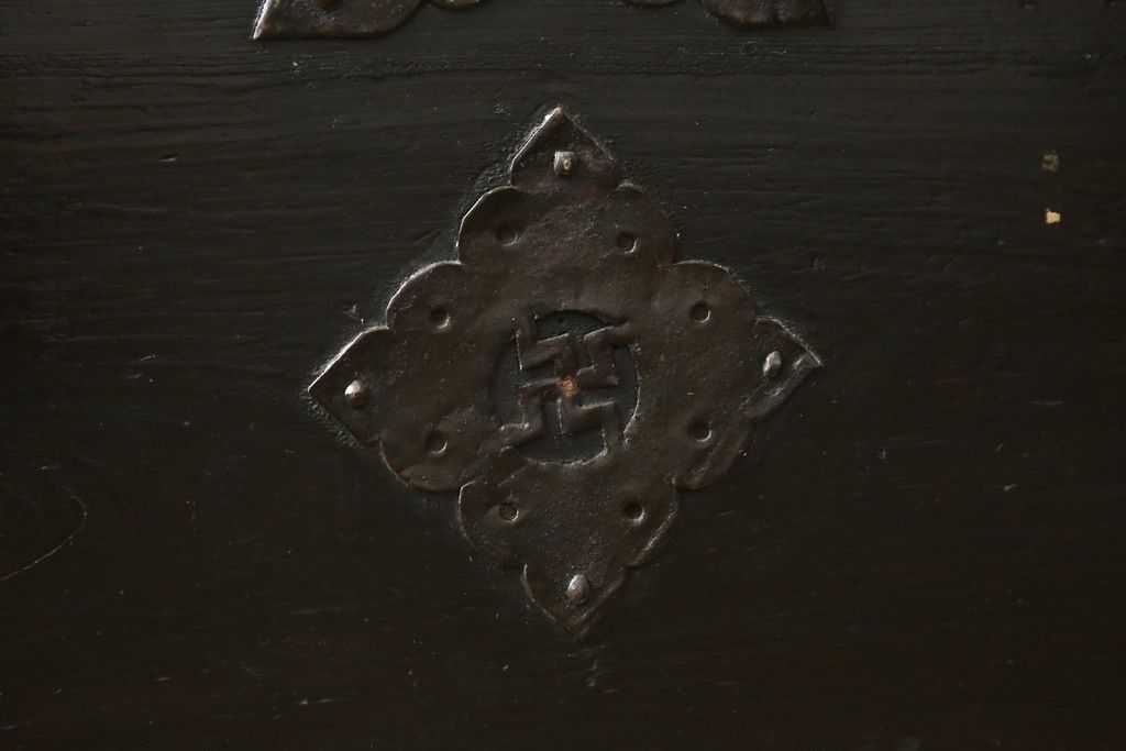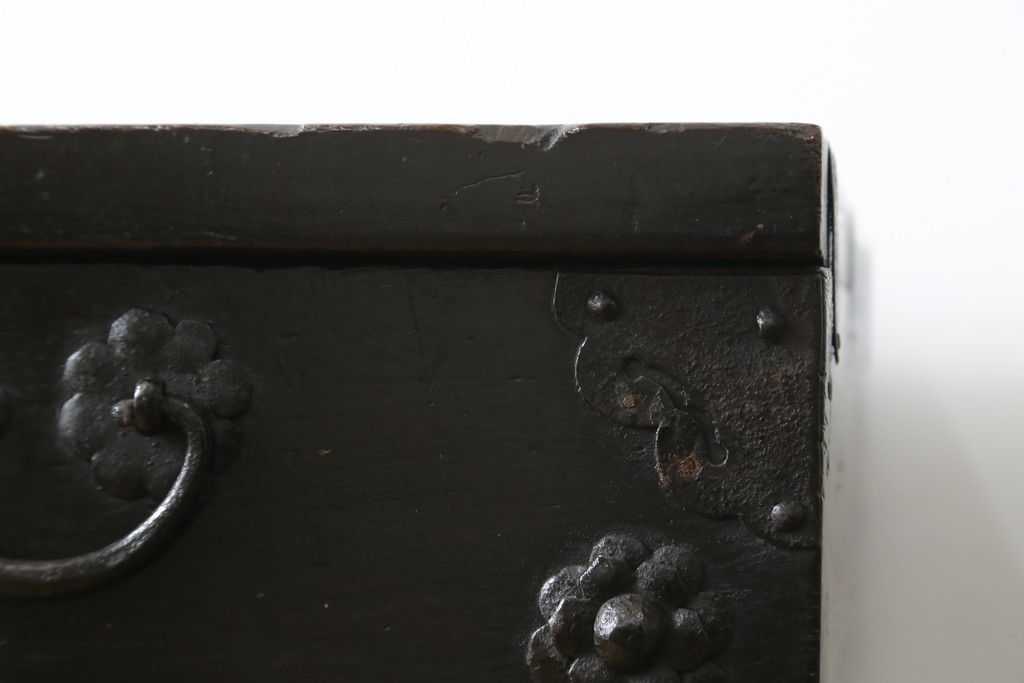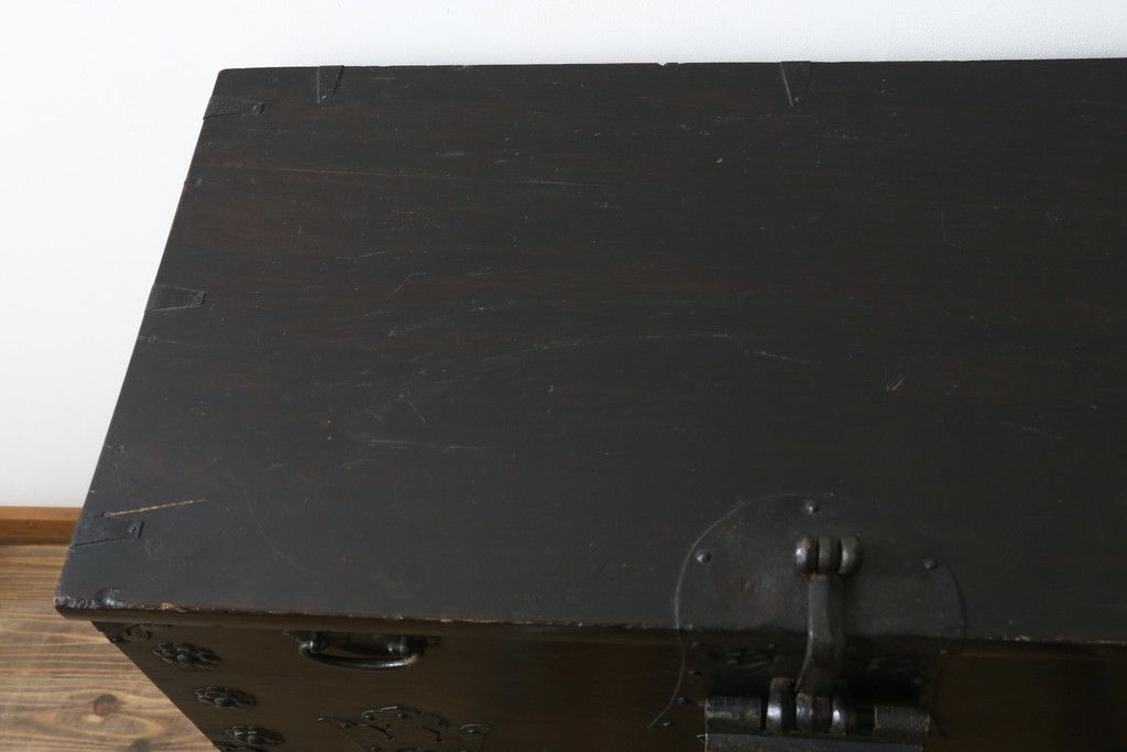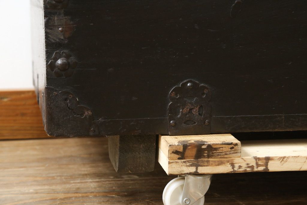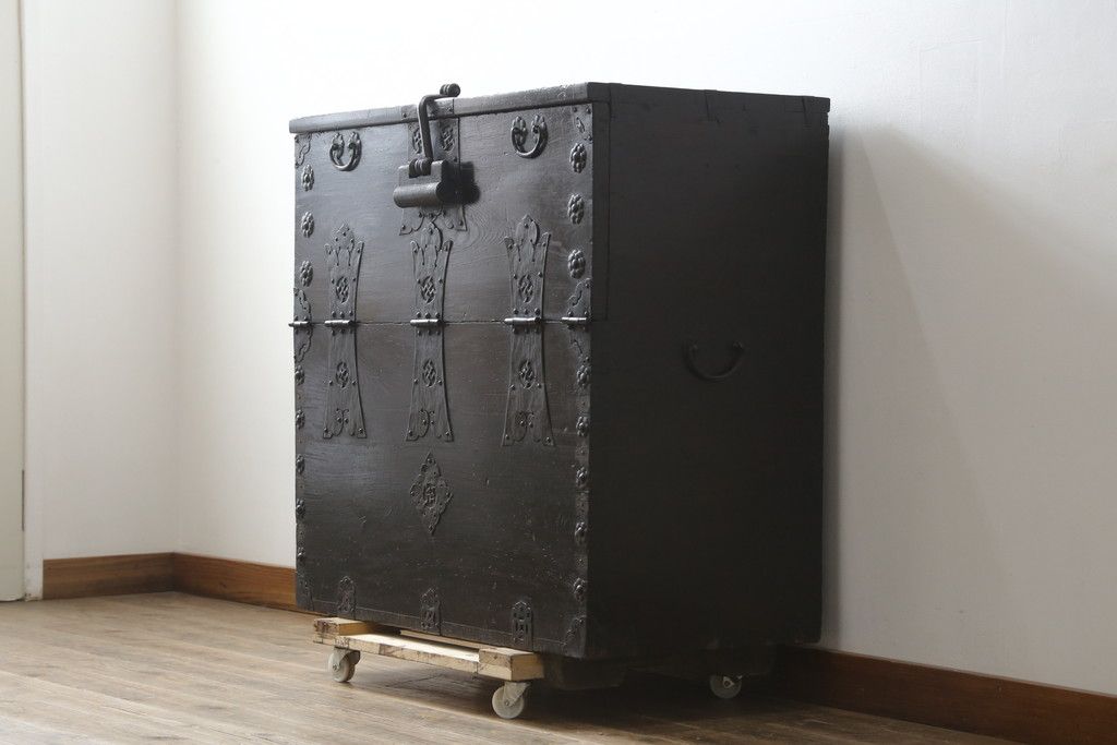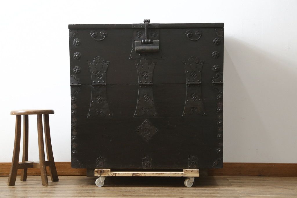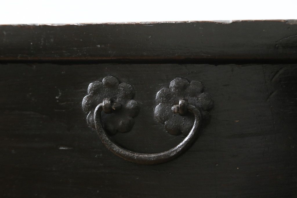 和箪笥 > 和製アンティーク 松材 重厚感のある金具が目を惹くバンダチ(バンダジ、半閉櫃、李朝箪笥、時代箪笥、収納箪笥、サイドボード)(R-082197)