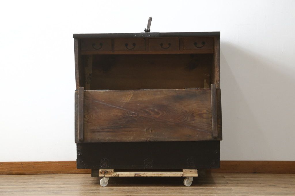 アンティーク商品では稀に引き出しや扉、つまみ等を動かすと鍵がかかる仕組みの商品があります。鍵閉じ込め防止のため、鍵は当該商品の引き出し、扉内ではなく別に保管してくださいますようお願い致します。