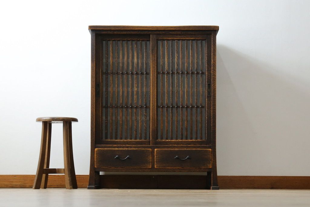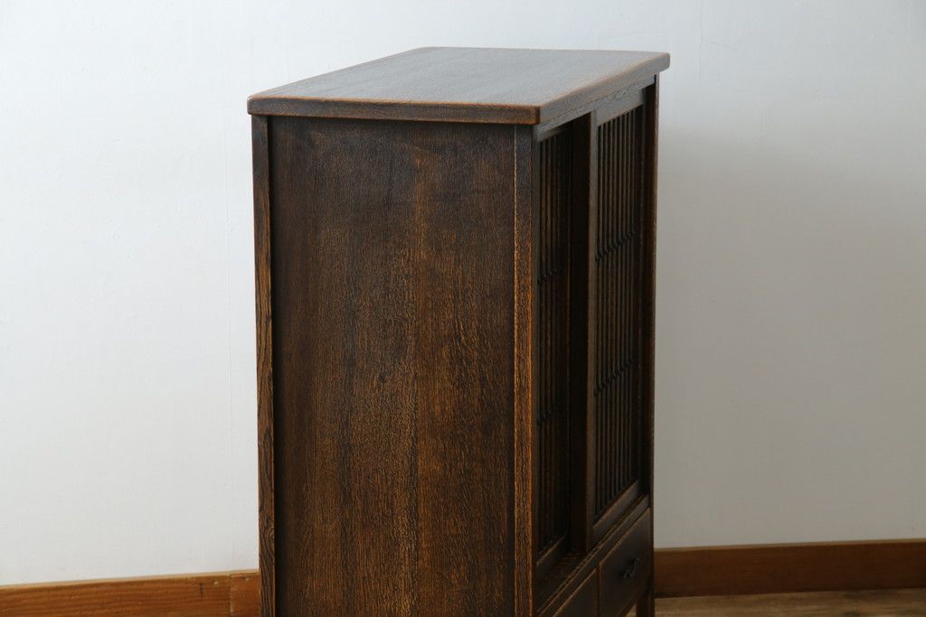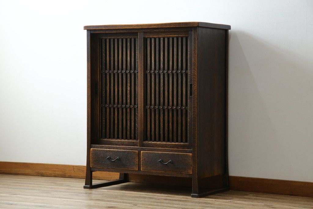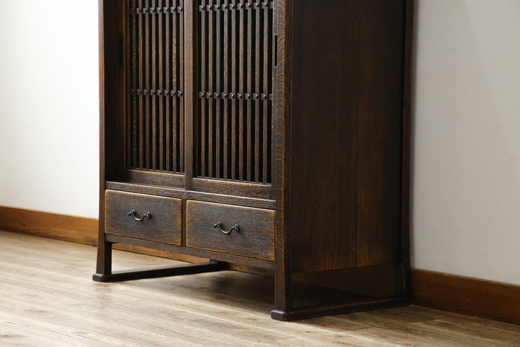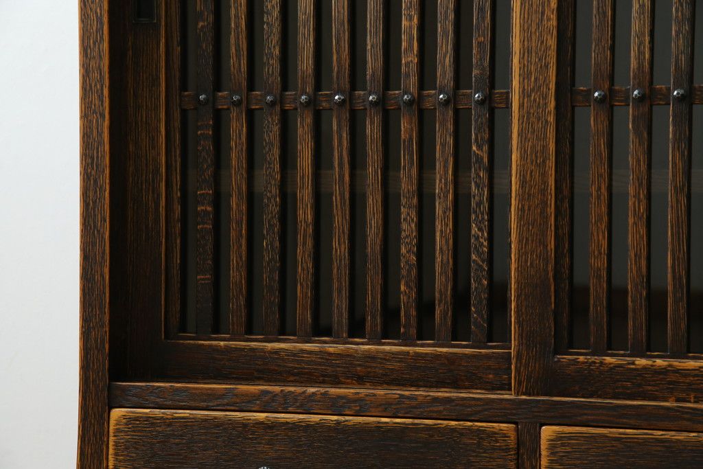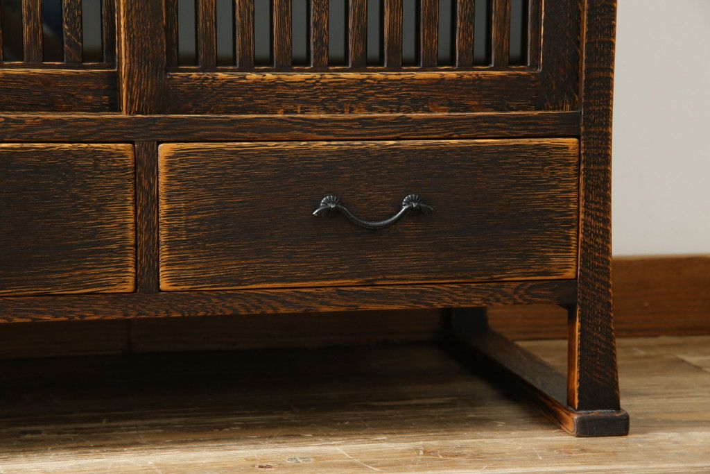 キャビネット・戸棚> 食器棚・カップボード > 中古 美品 国産職人手作り 水屋の匠 久遠 希少の廃番品 民芸家具 楢(ナラ)材 味わい深い木の色味が素敵なアンティーク調脚付き水屋箪笥(サイドボード、サイドキャビネット、食器棚、戸棚、収納棚)(R-082228)