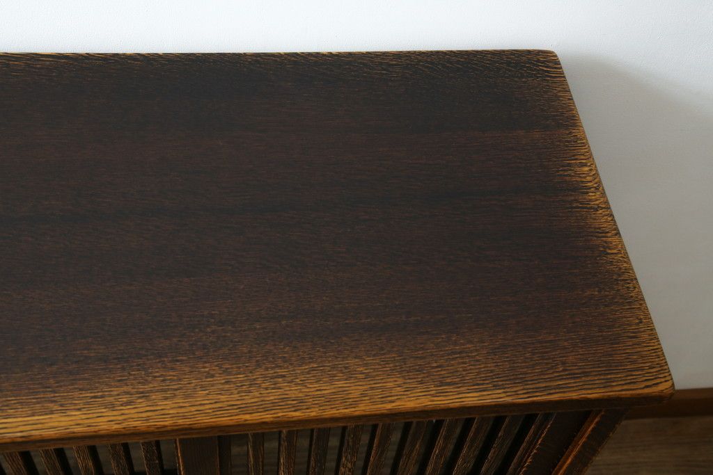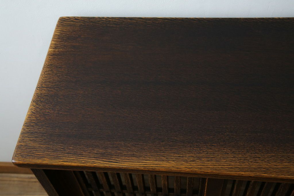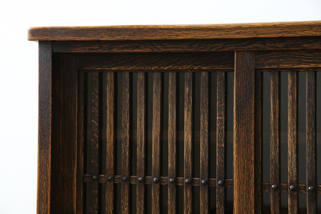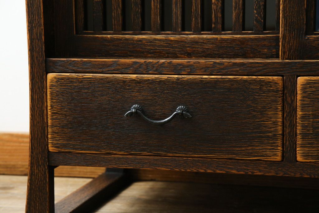 民芸家具 > 中古 美品 国産職人手作り 水屋の匠 久遠 希少の廃番品 民芸家具 楢(ナラ)材 味わい深い木の色味が素敵なアンティーク調脚付き水屋箪笥(サイドボード、サイドキャビネット、食器棚、戸棚、収納棚)(R-082228)