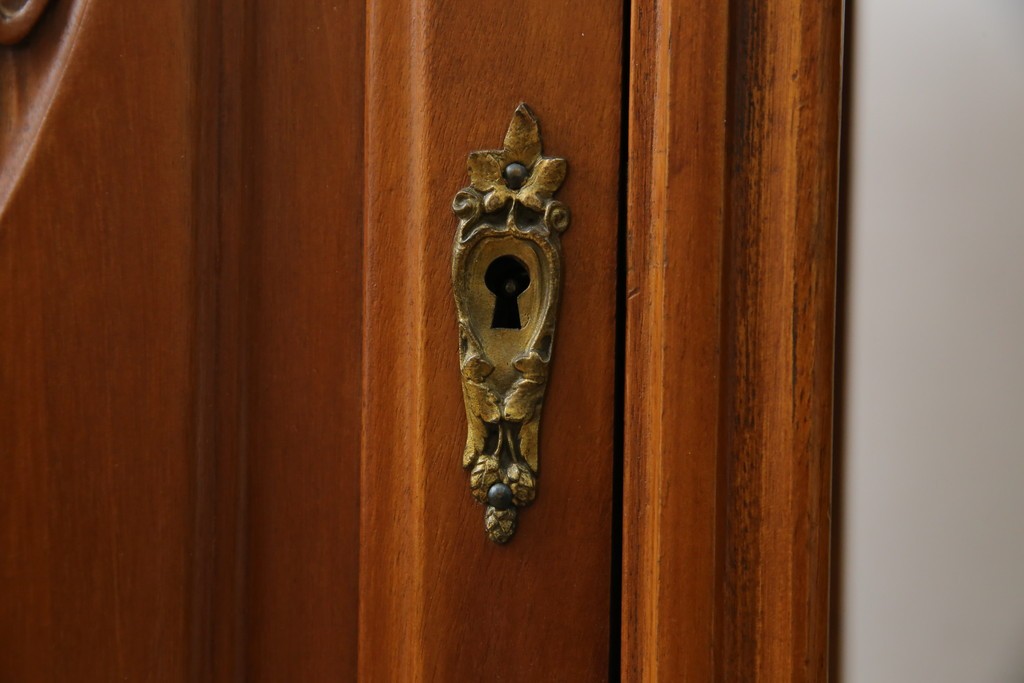 ※アンティーク商品では稀に引き出しや扉、つまみ等を動かすと鍵がかかる仕組みの商品があります。閉じ込め防止のため、鍵は当該商品の引き出しや扉内ではなく、別の場所で保管してください。