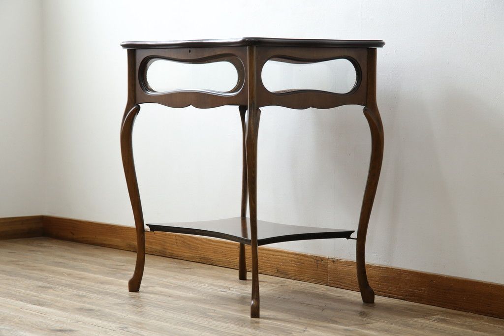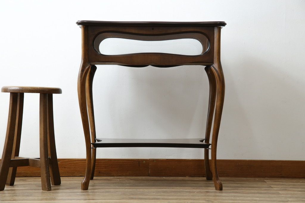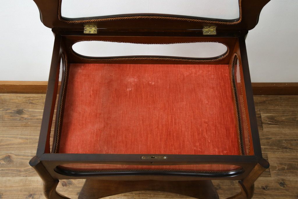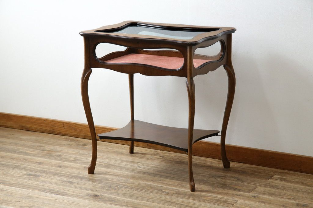 中古 人気の猫脚!! 象嵌入り クラシカルな雰囲気漂うジュエリーケース(サイドテーブル、ガラスケース、ショーケース、コレクションケース)(R-082339)です。