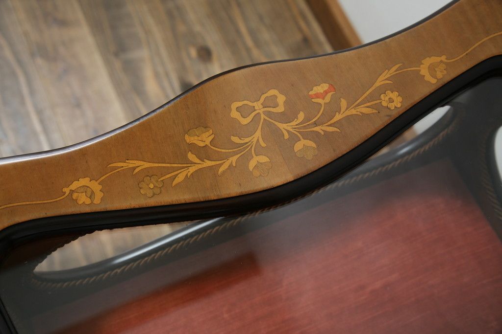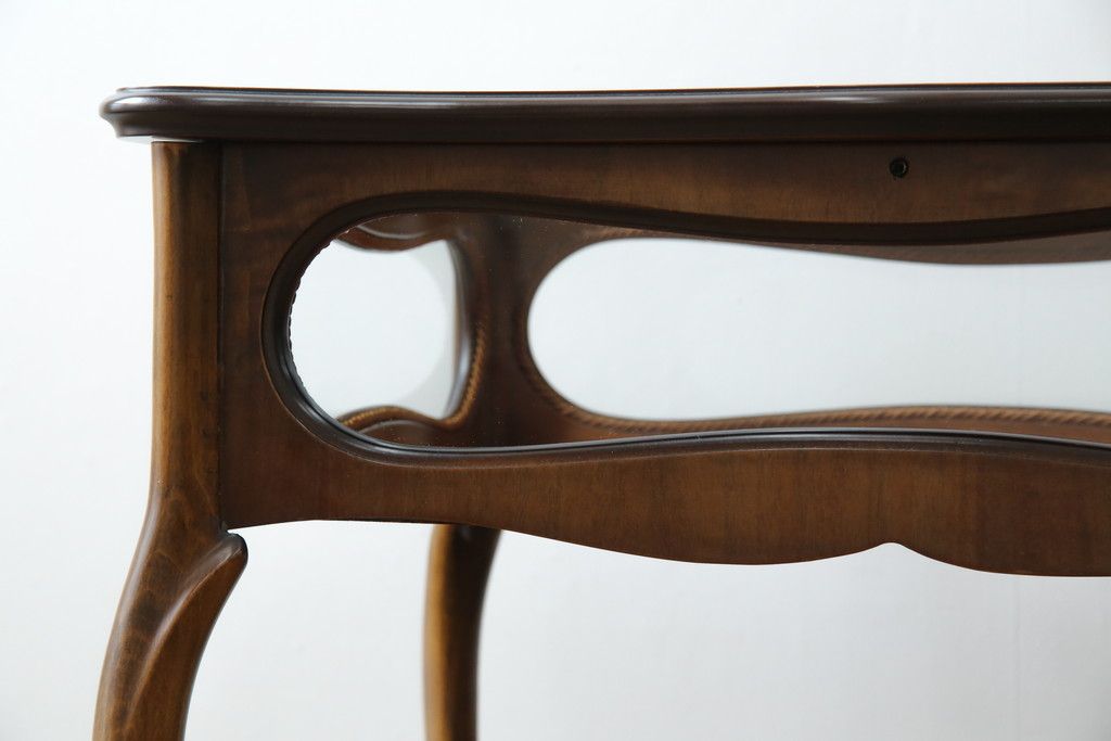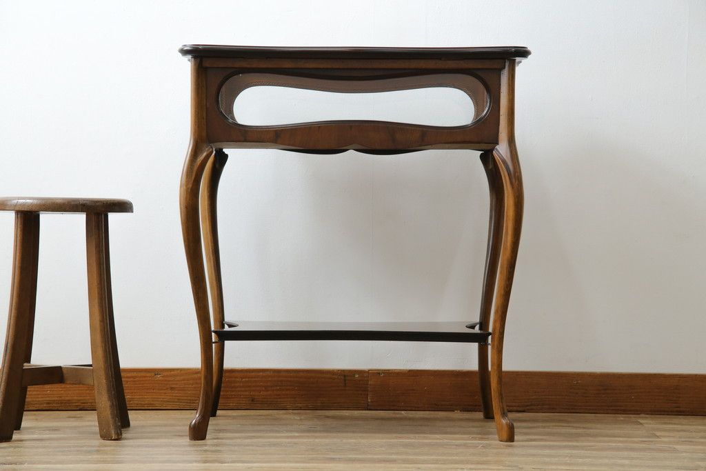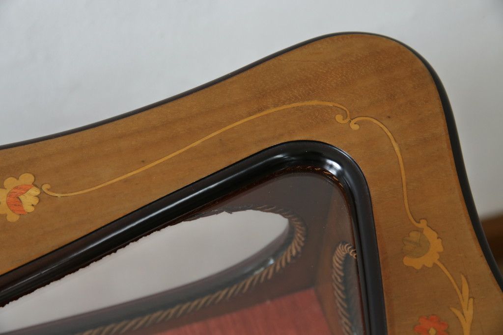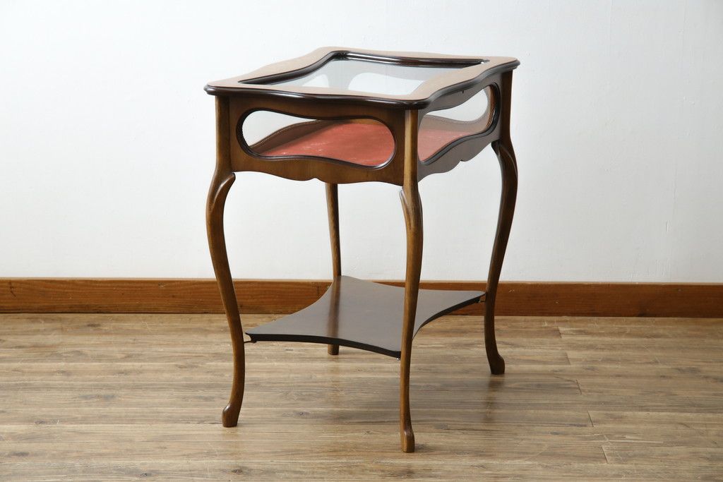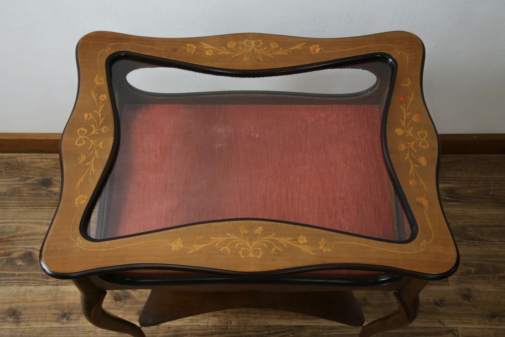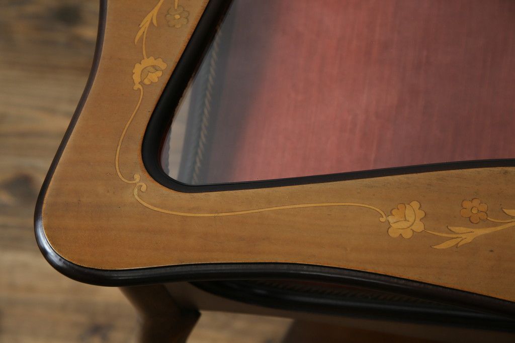 中古 人気の猫脚!! 象嵌入り クラシカルな雰囲気漂うジュエリーケース(サイドテーブル、ガラスケース、ショーケース、コレクションケース)(R-082339)