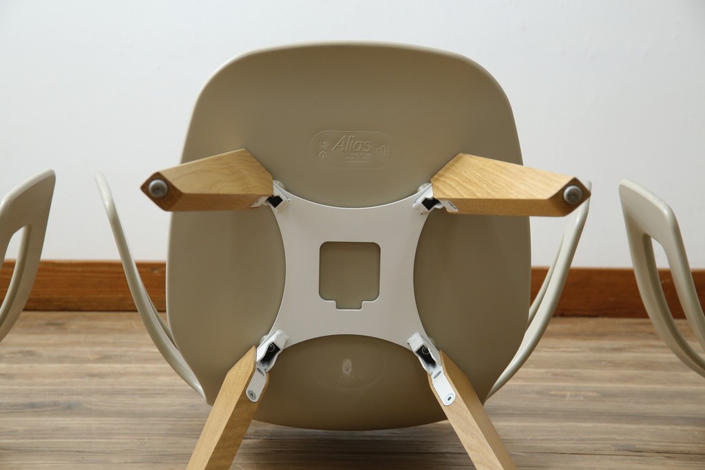 ラフジュ工房> 椅子・ベンチ> ダイニングチェア > 中古 Cassina(カッシーナ) Alias(アリアス) 曲線フォルムと木脚がおしゃれなSegesta Wood(セジェスタウッド) 558 アームチェア3脚セット(ダイニングチェア、椅子、イス、バラ売り可能)(定価3脚で約46万円)(R-082346)