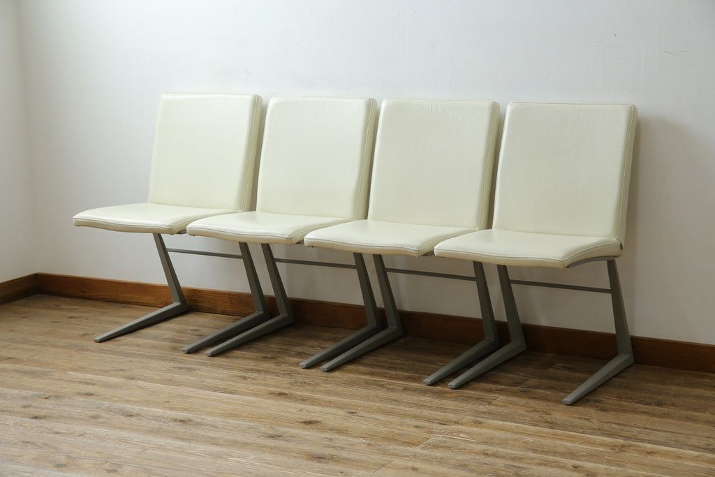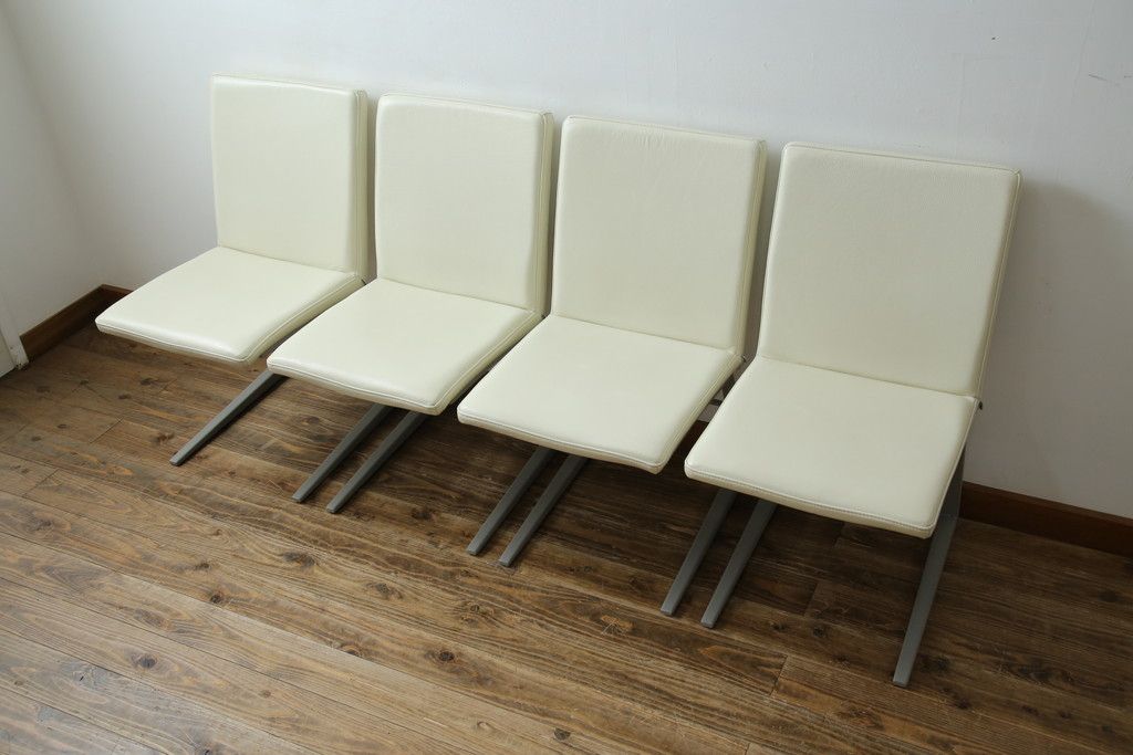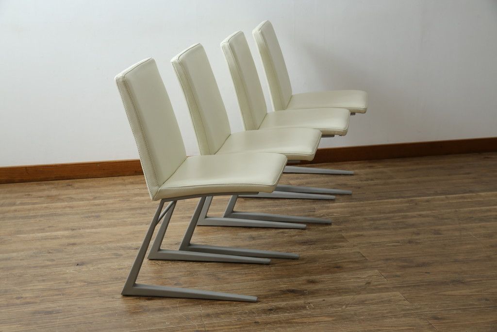 ラフジュ工房> 椅子・ベンチ> ダイニングチェア > 中古 Boconcept(ボーコンセプト) Mariposa Deluxe(マリポサ デラックス) スタイリッシュなソリ脚デザインが目を引く本革(レザー)ダイニングチェア4脚セット(アームレスチェア、椅子、イス、バラ売り可能)(定価4脚で約34万円)(R-082347)