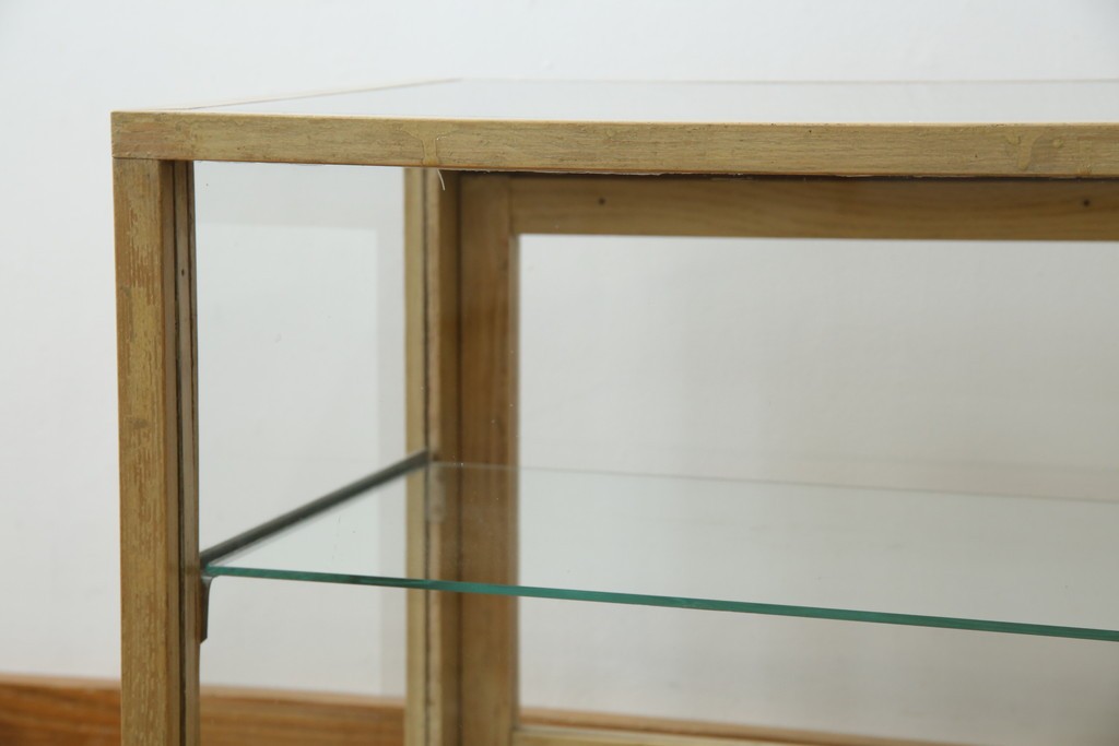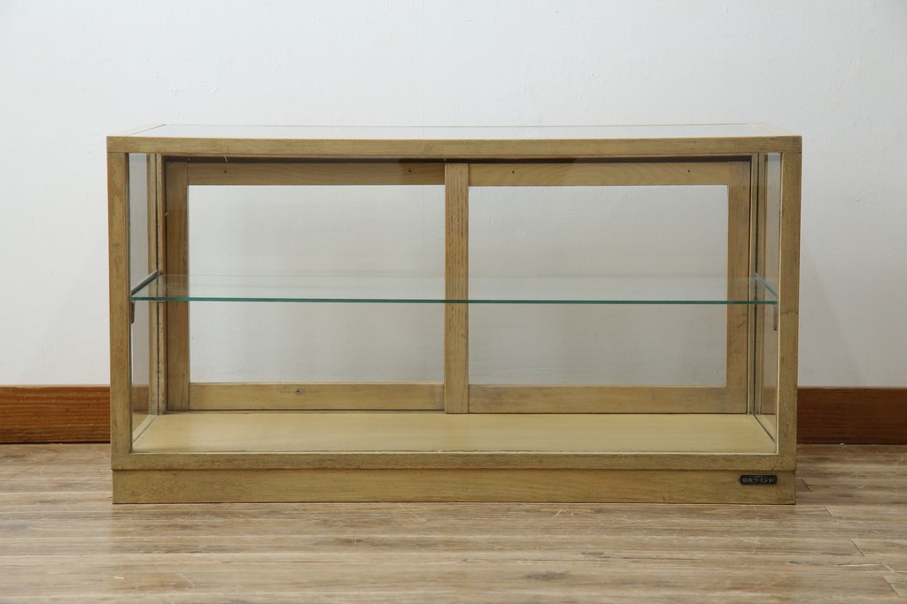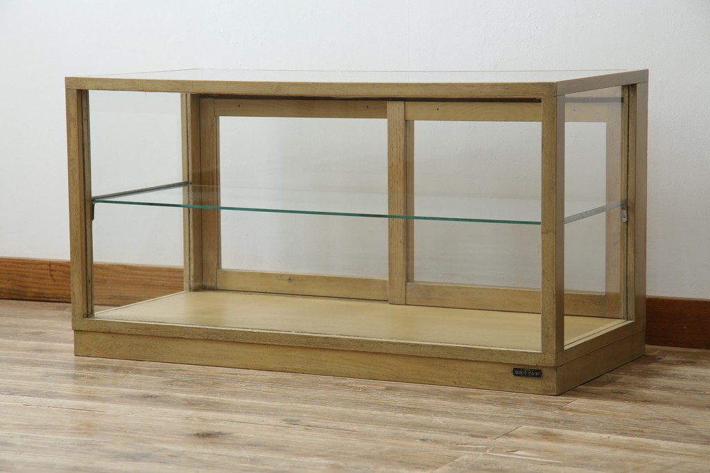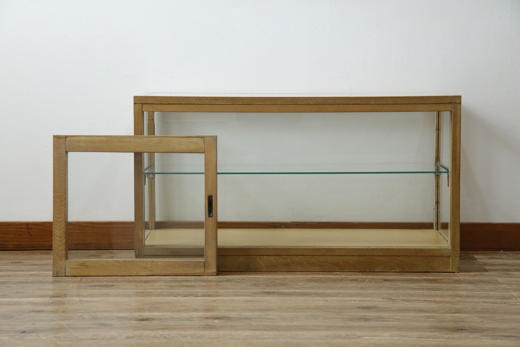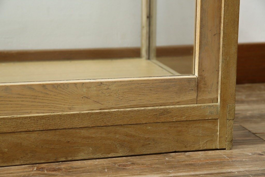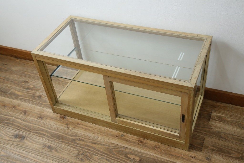 和製アンティーク 昭和レトロ ナラ(楢)材 卓上 ロータイプ シンプルなデザインで取り入れやすいガラスケース (R-082371)
