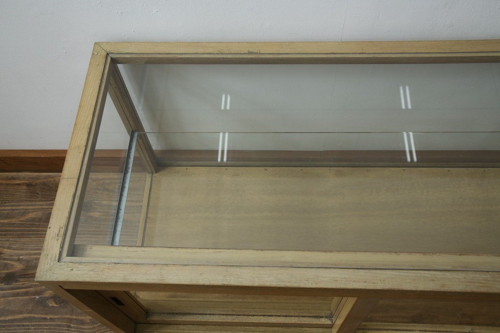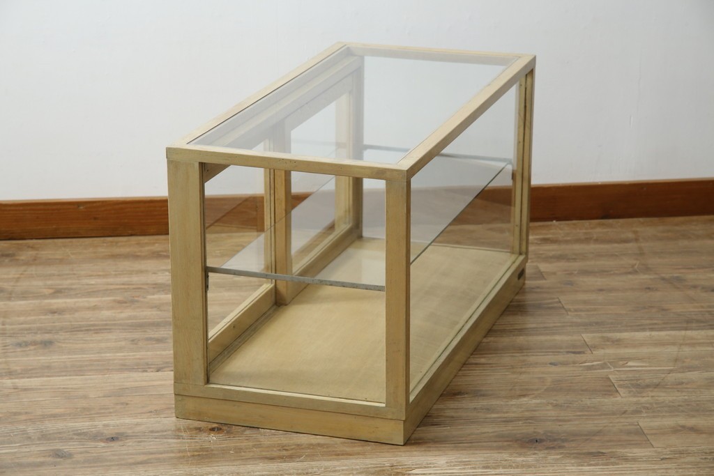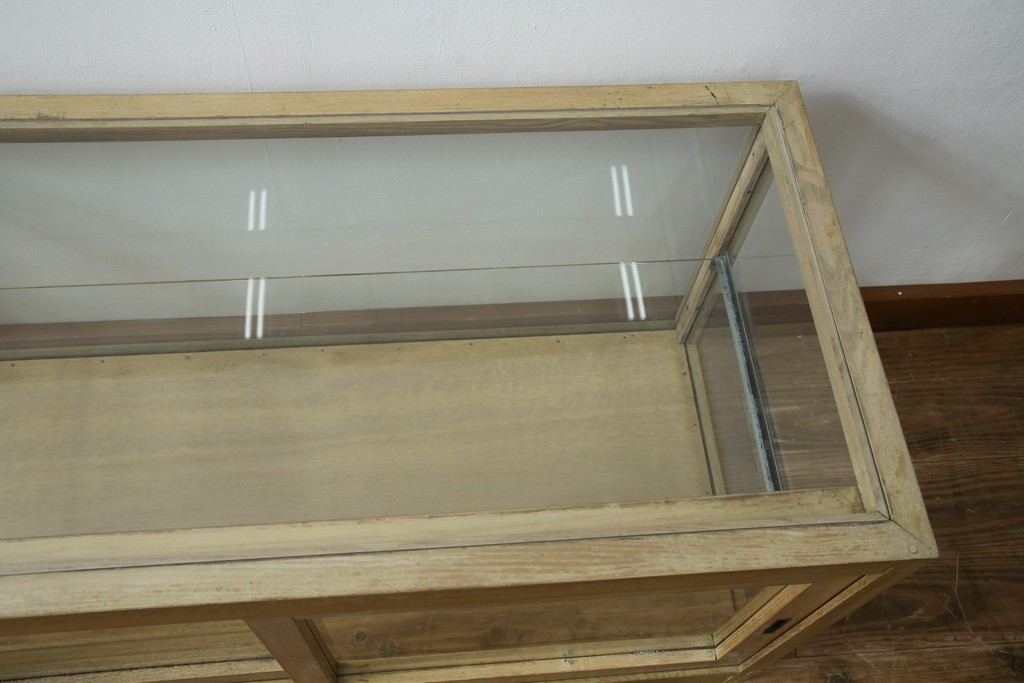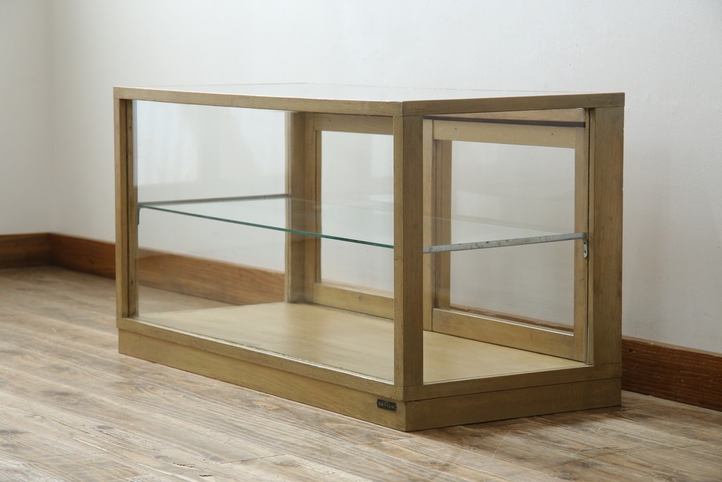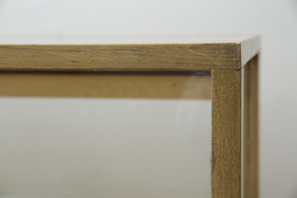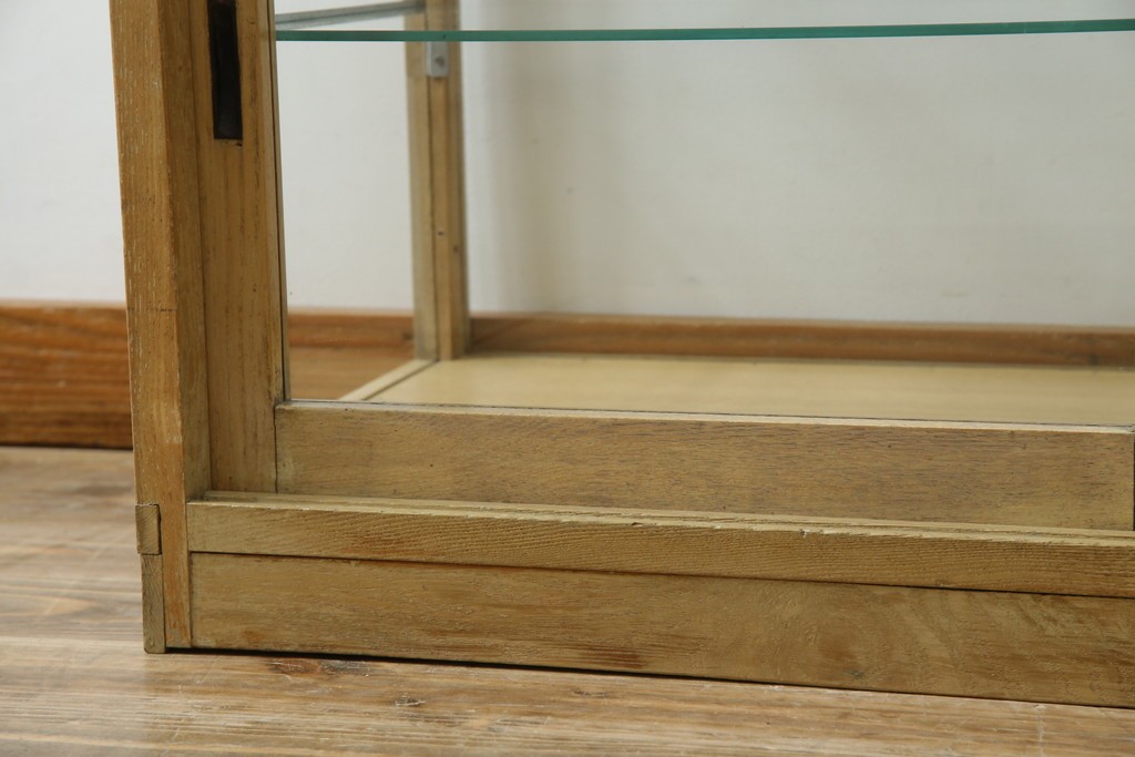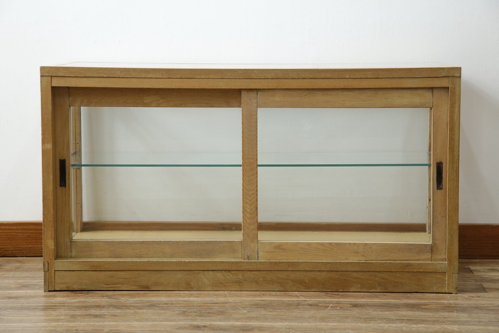 和製アンティーク 昭和レトロ ナラ(楢)材 卓上 ロータイプ シンプルなデザインで取り入れやすいガラスケース (R-082371)