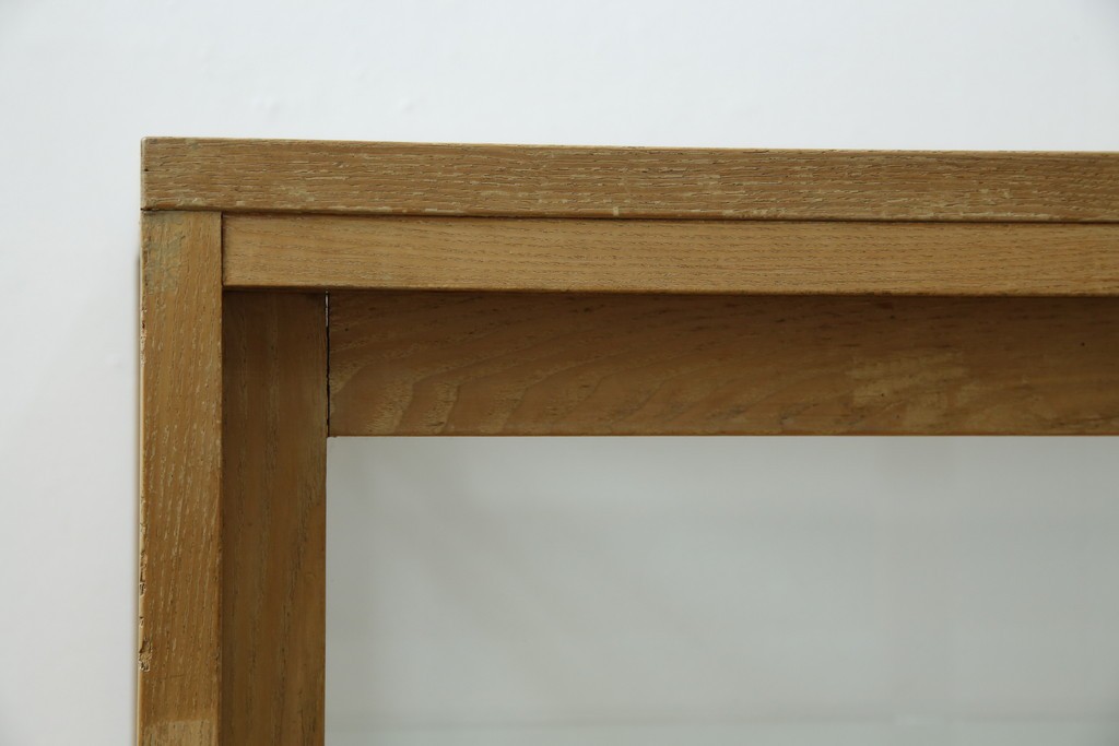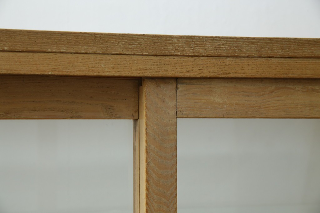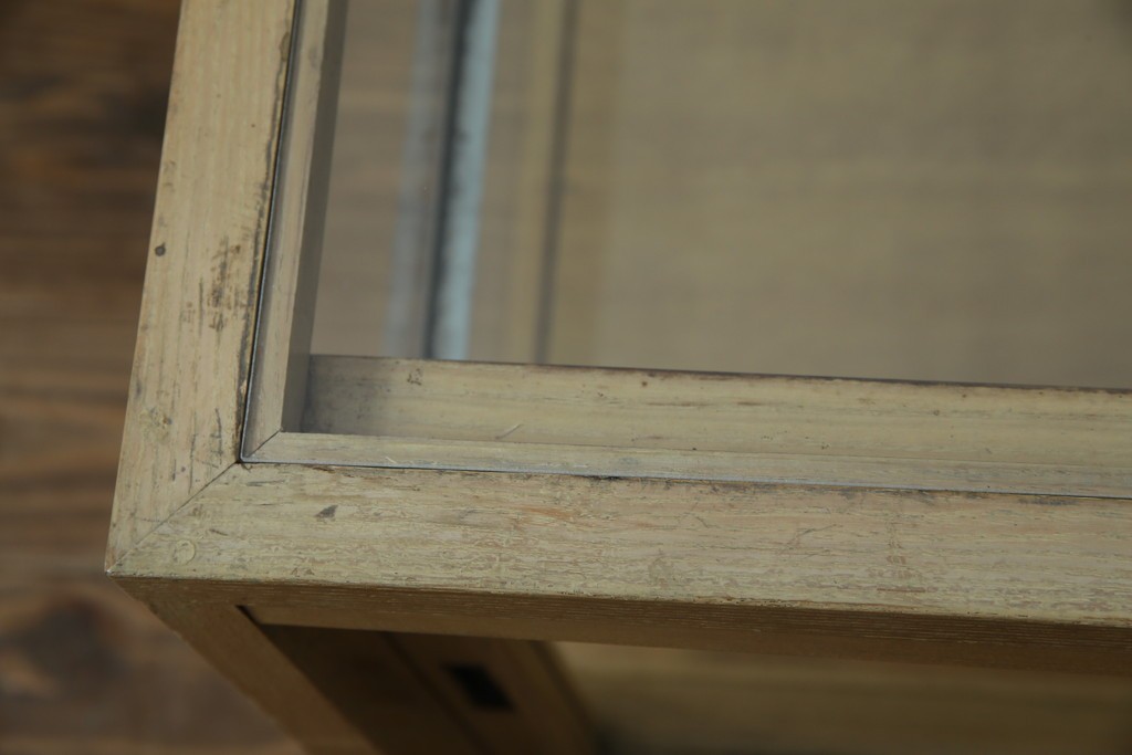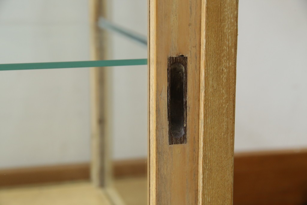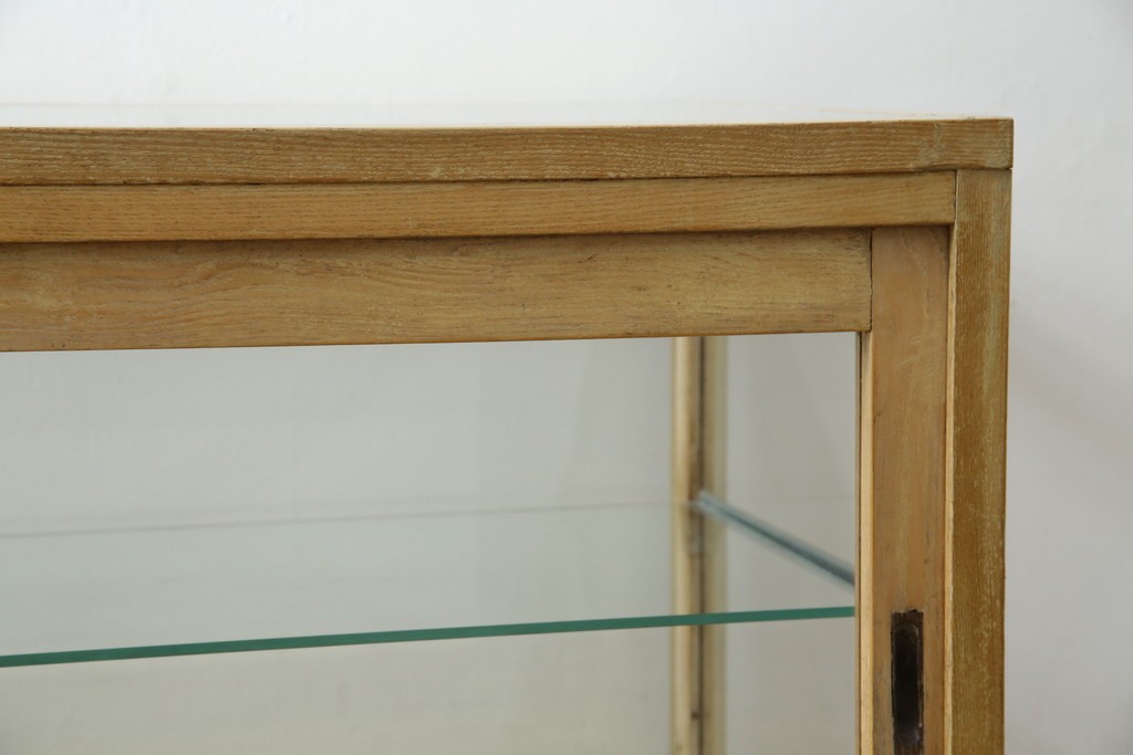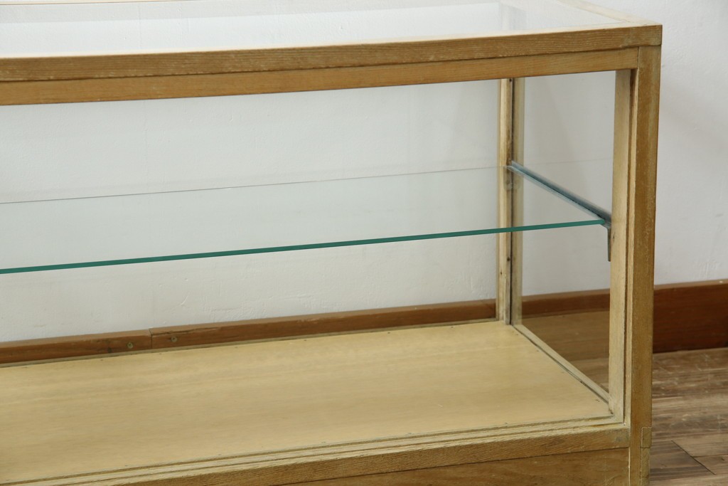和製アンティーク 昭和レトロ ナラ(楢)材 卓上 ロータイプ シンプルなデザインで取り入れやすいガラスケース (R-082371)