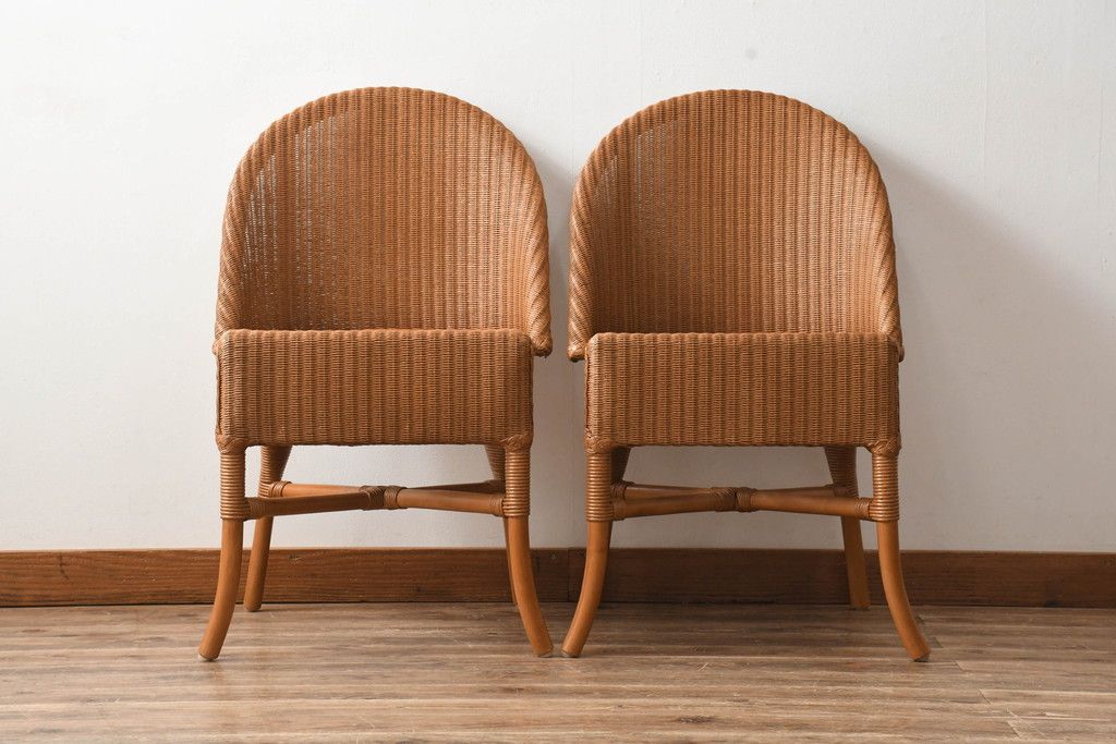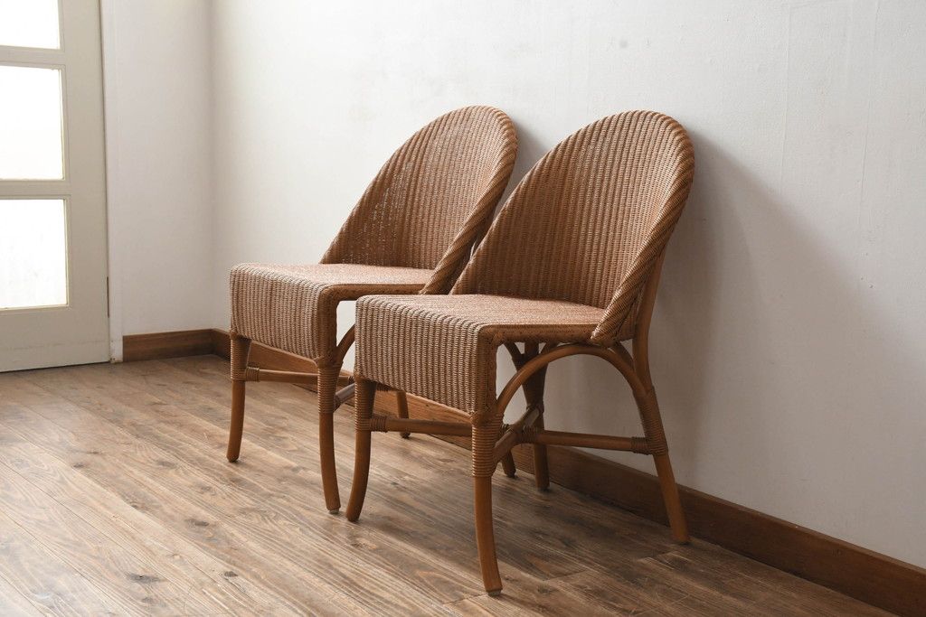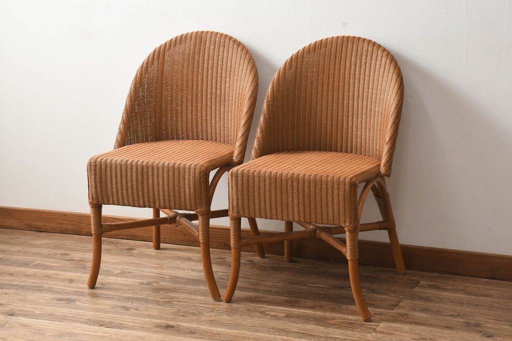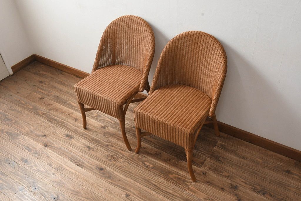 ラフジュ工房> 椅子・ベンチ> ダイニングチェア > 中古 イギリス LLOYD LOOM(ロイドルーム) 洗練されたデザインのダイニングチェア2脚セット(アームレスチェア、サイドチェア、椅子、イス、英国、バラ売り可能)(定価2脚で約10万円)(R-082484)