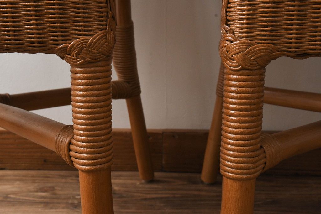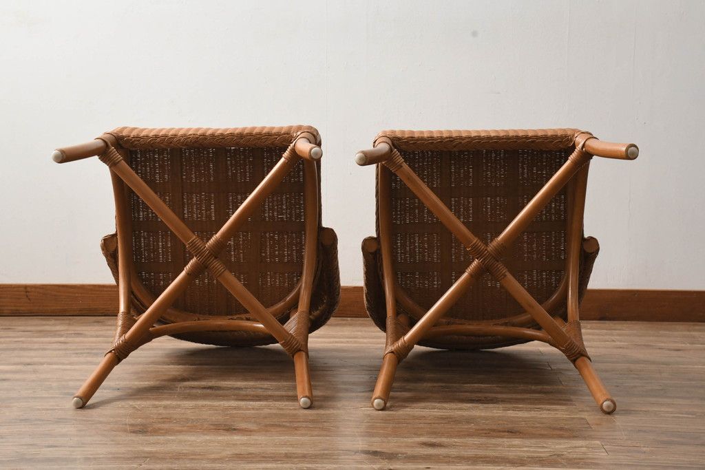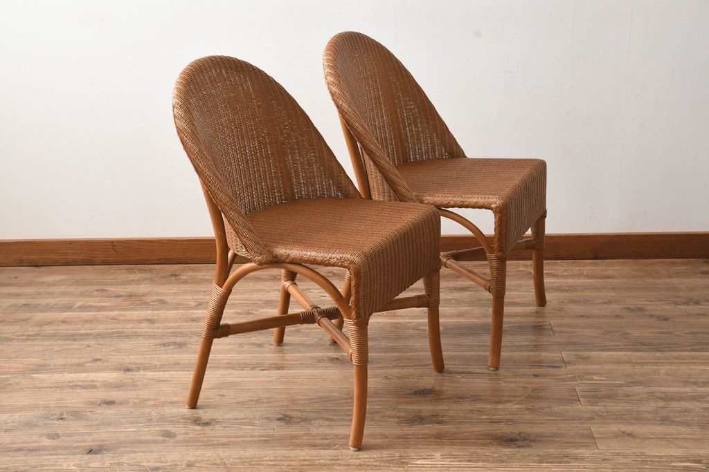 中古 イギリス LLOYD LOOM(ロイドルーム) 洗練されたデザインのダイニングチェア2脚セット(アームレスチェア、サイドチェア、椅子、イス、英国、バラ売り可能)(定価2脚で約10万円)(R-082484)