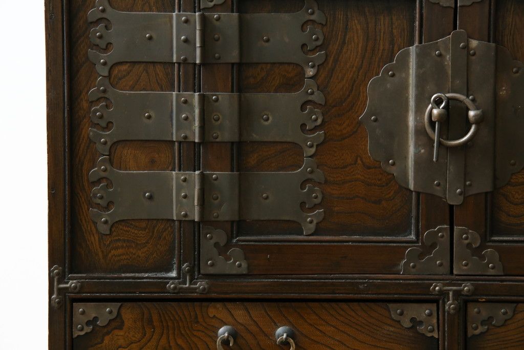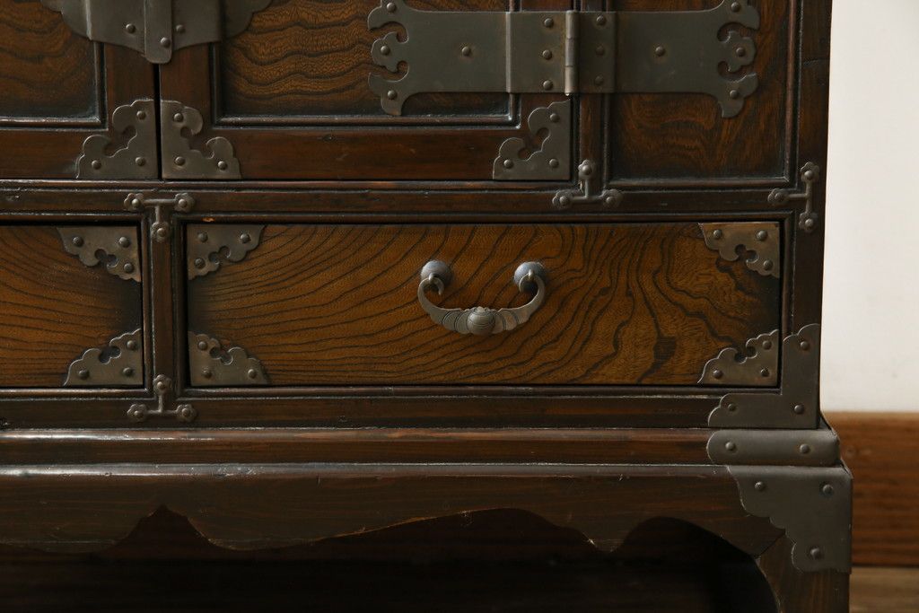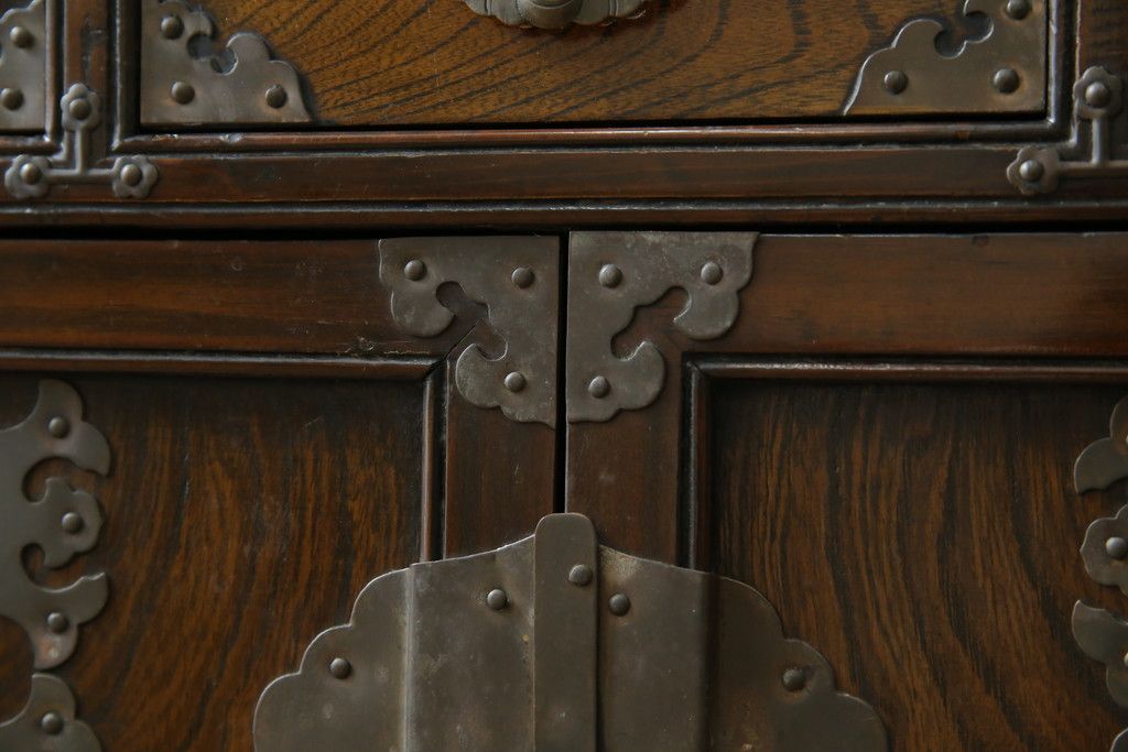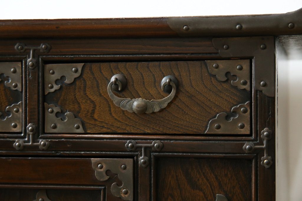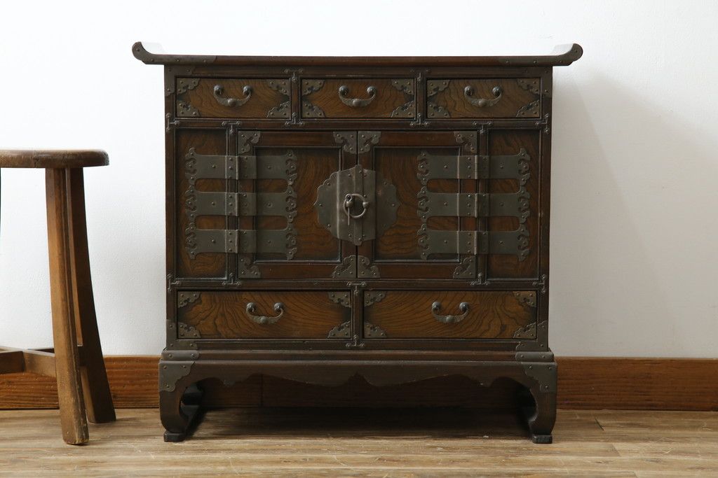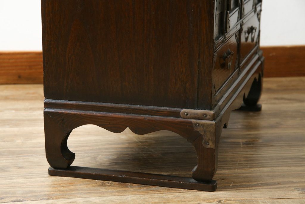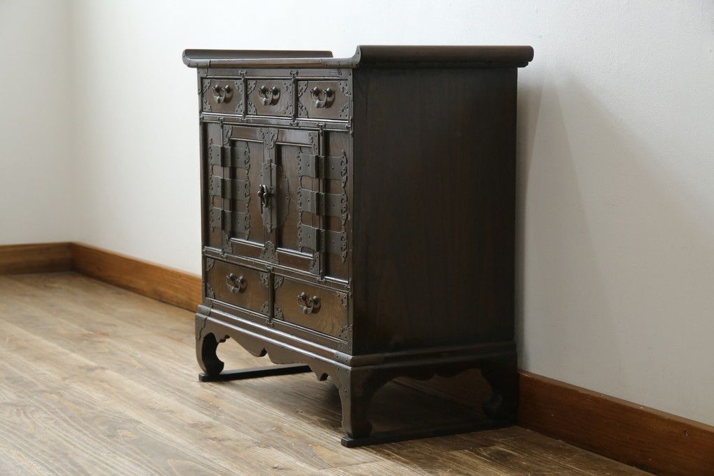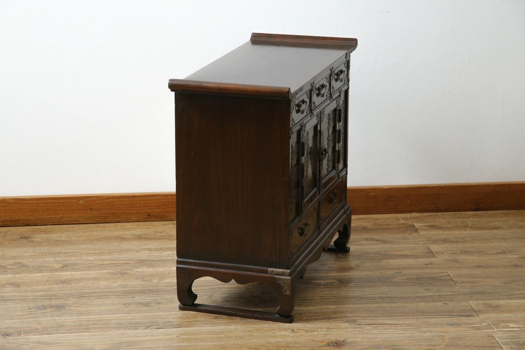 李朝家具 > 中古 アジア民芸家具 アジアンな雰囲気を高める小振りなサイドキャビネット(李朝箪笥、李朝タンス、小物収納、収納棚、戸棚、飾り棚)(R-082492)