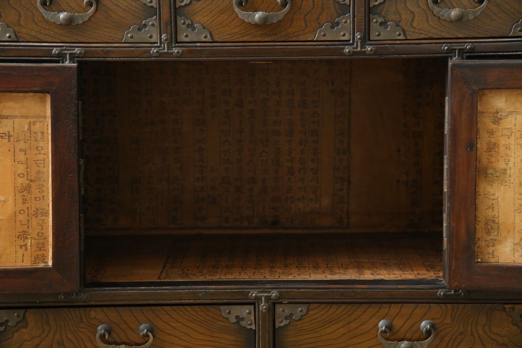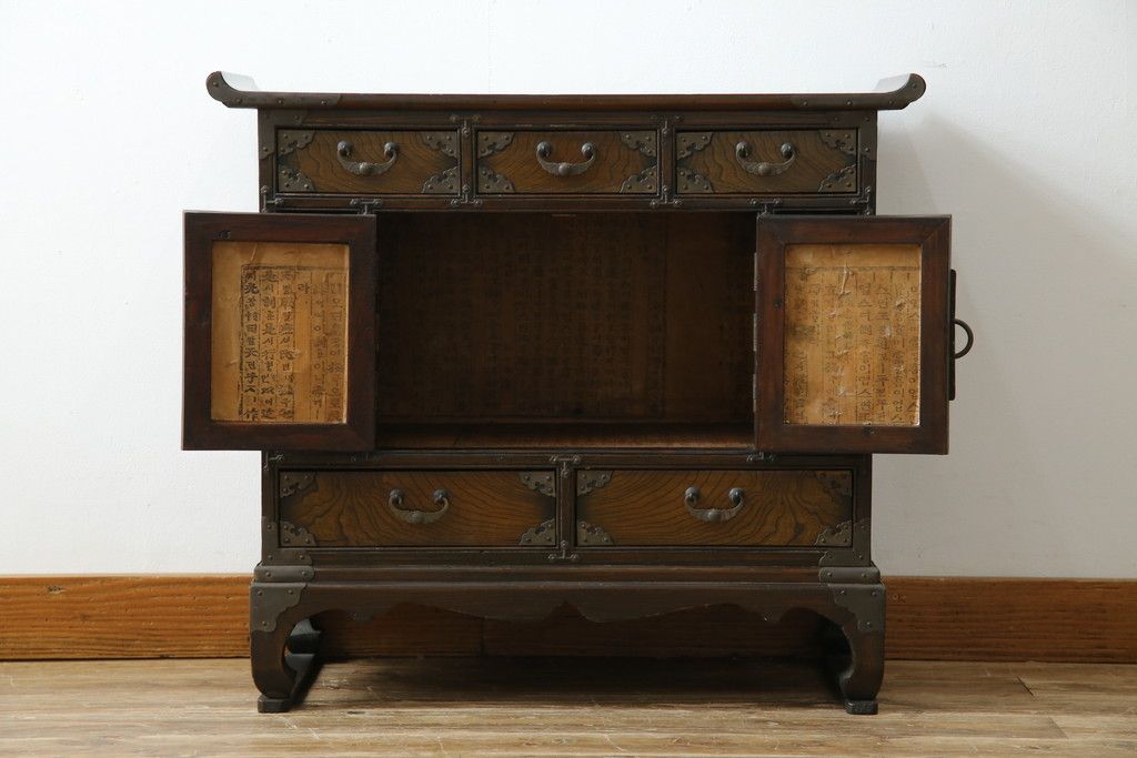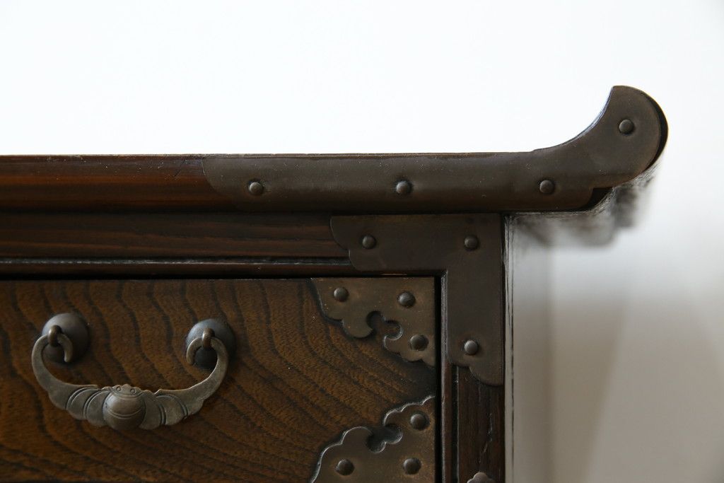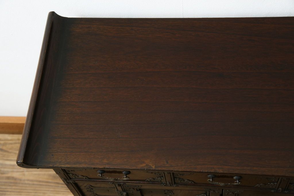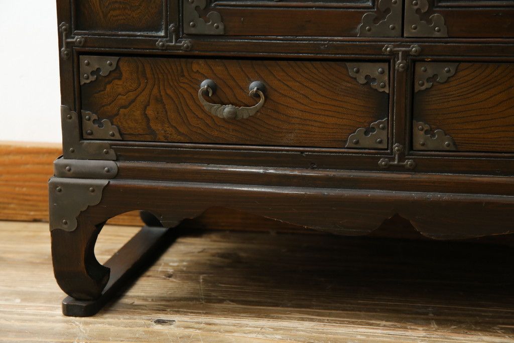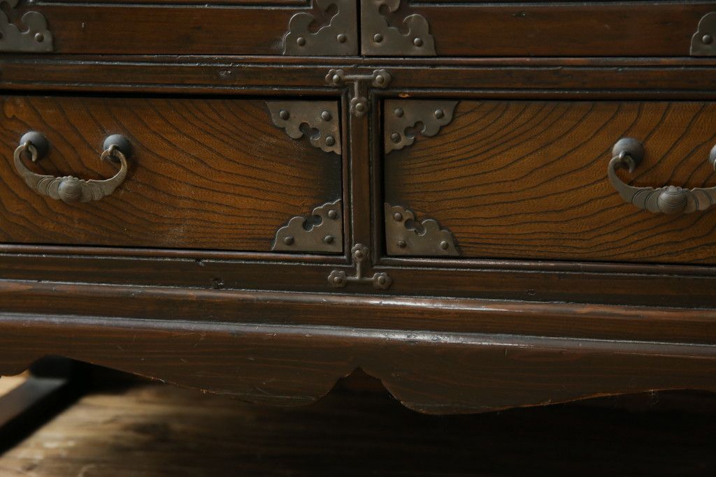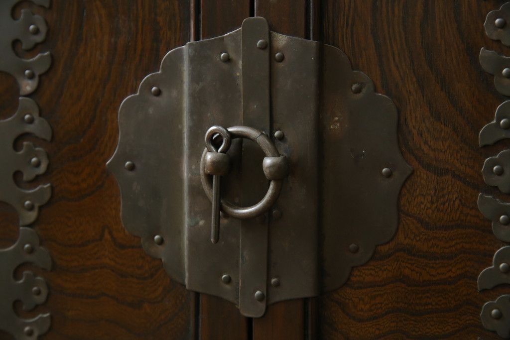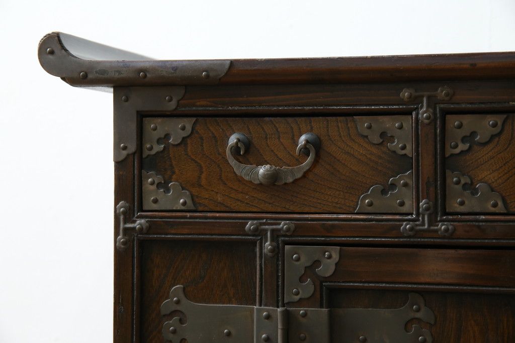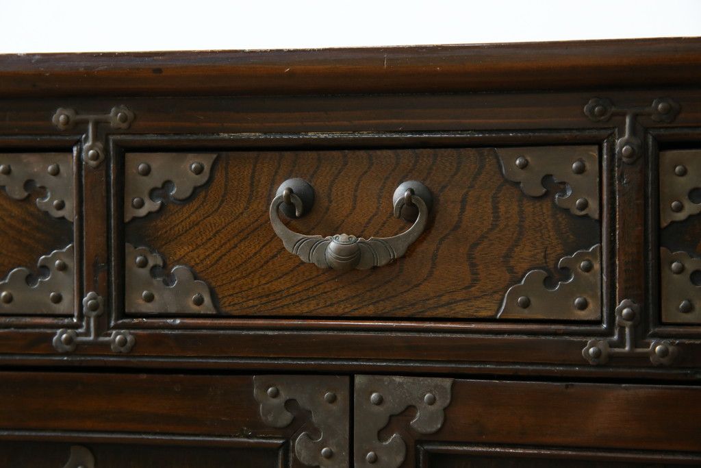 李朝家具 > 中古 アジア民芸家具 アジアンな雰囲気を高める小振りなサイドキャビネット(李朝箪笥、李朝タンス、小物収納、収納棚、戸棚、飾り棚)(R-082492)