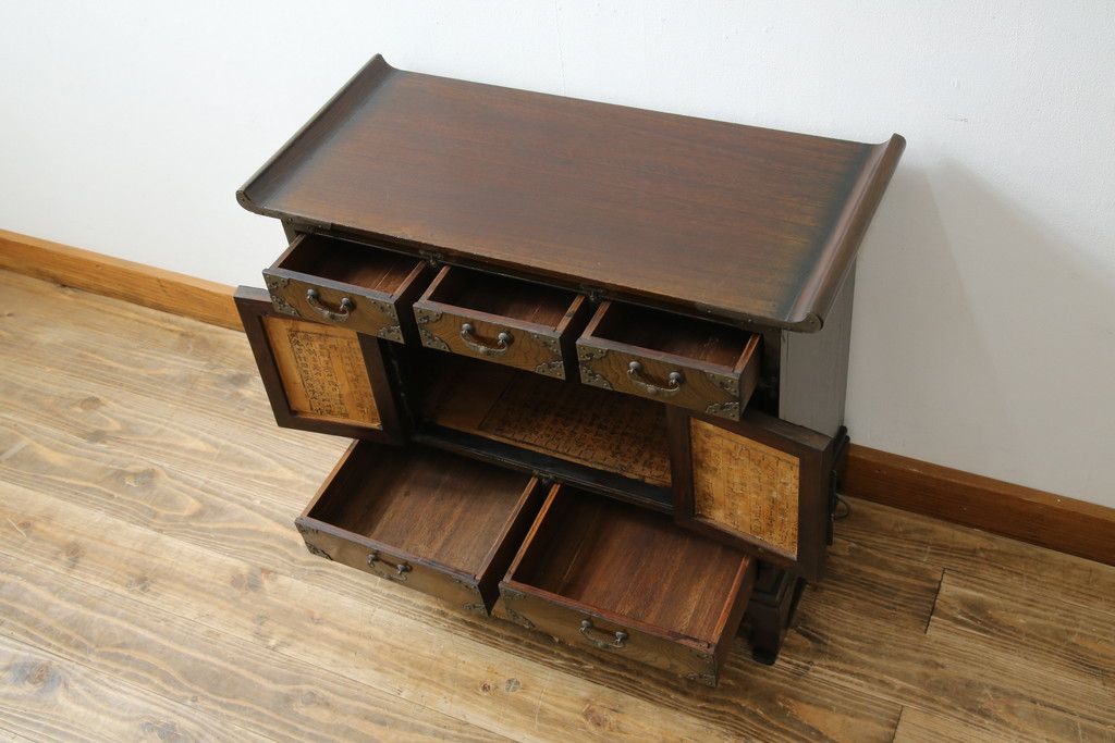 キャビネット・戸棚> サイドキャビネット > 中古 アジア民芸家具 アジアンな雰囲気を高める小振りなサイドキャビネット(李朝箪笥、李朝タンス、小物収納、収納棚、戸棚、飾り棚)(R-082492)