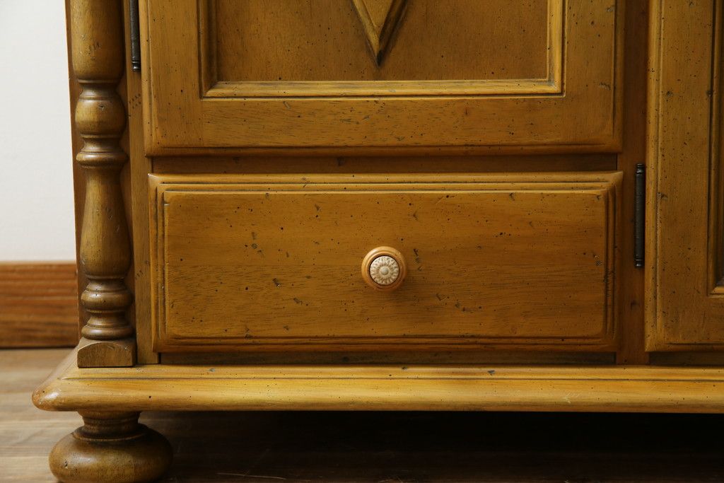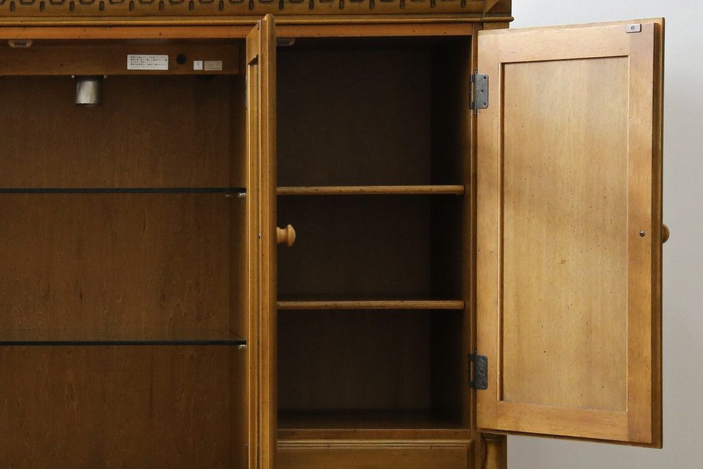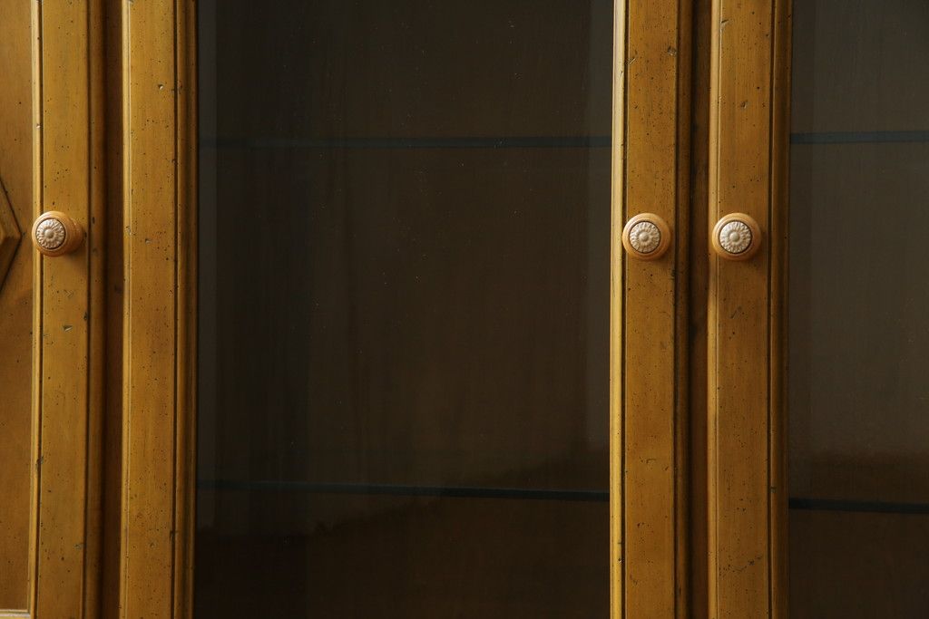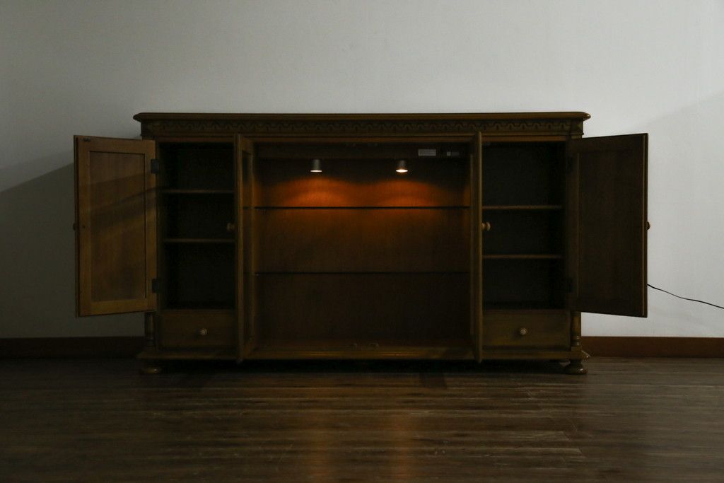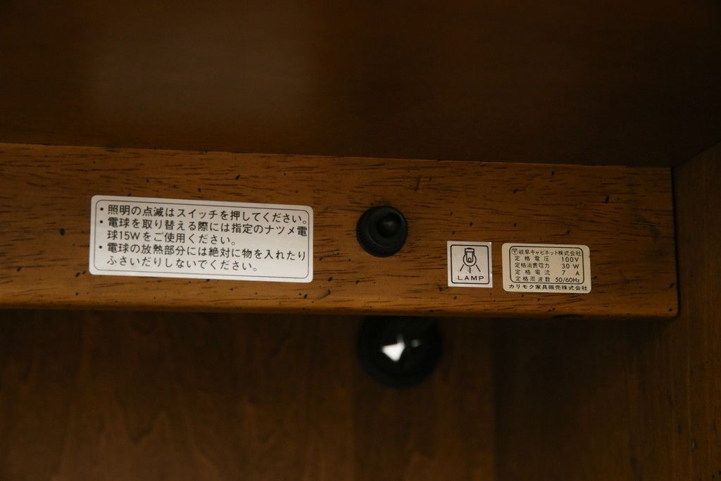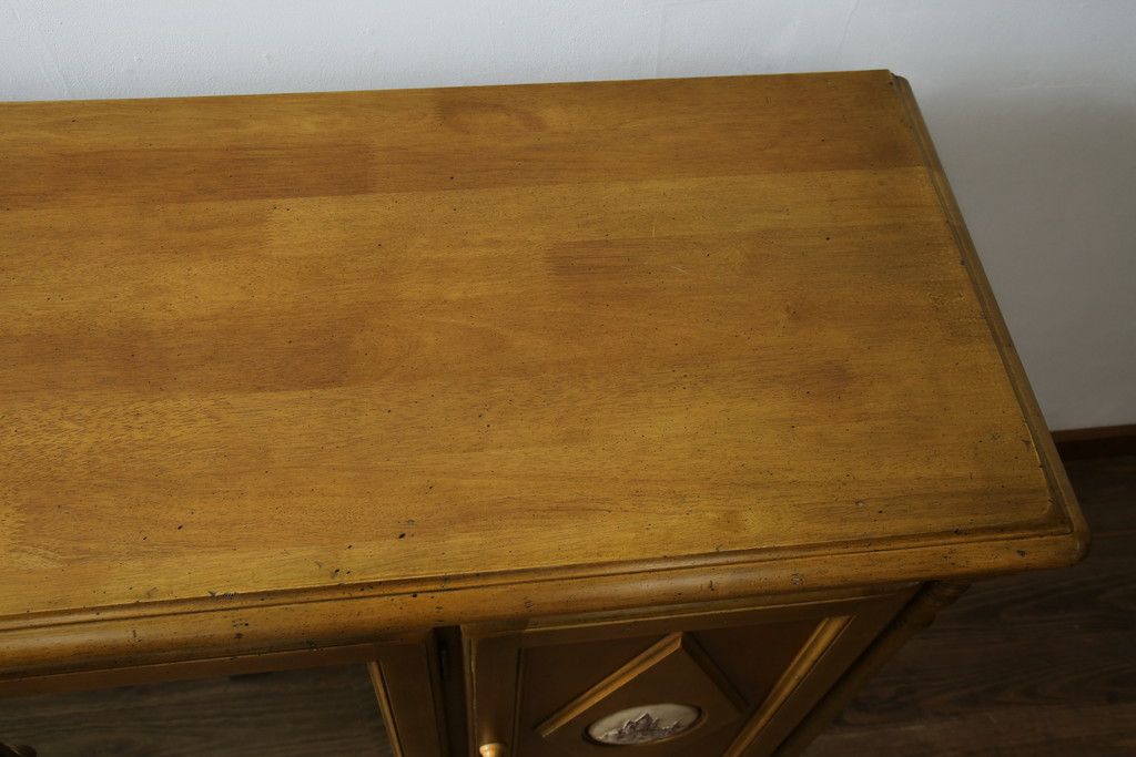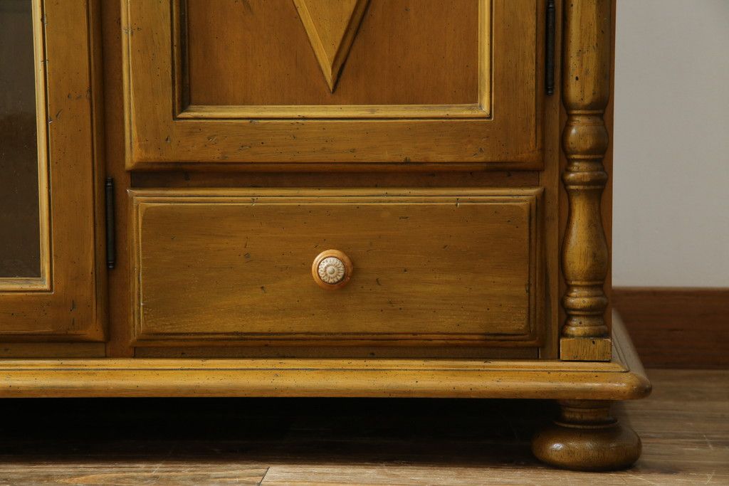 中古 美品 カリモク家具(karimoku) 可愛い脚と陶板がアクセントのアンティーク調カントリーキャビネット(サイドボード、サイドキャビネット、収納棚、戸棚)(R-082615)