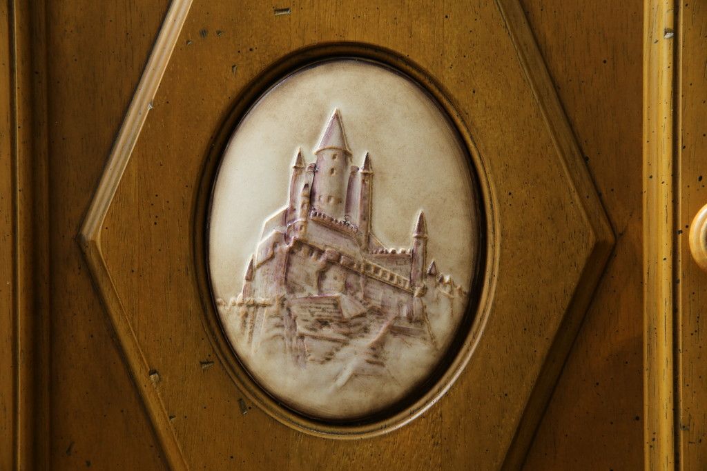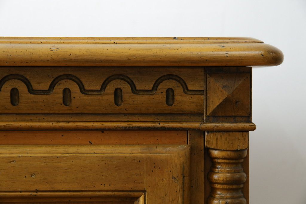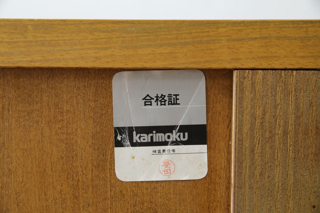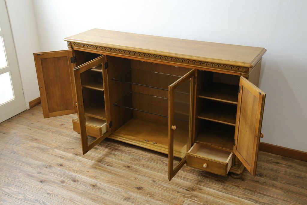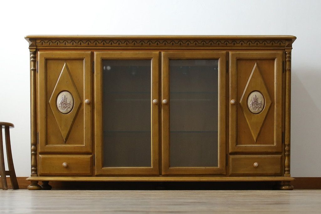 キャビネット・戸棚> サイドボード > 中古 美品 カリモク家具(karimoku) 可愛い脚と陶板がアクセントのアンティーク調カントリーキャビネット(サイドボード、サイドキャビネット、収納棚、戸棚)(R-082615)