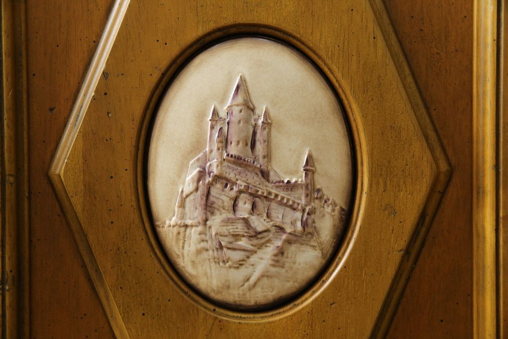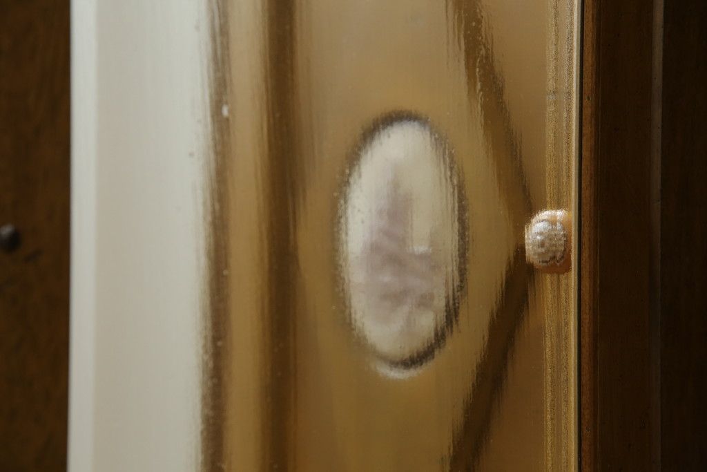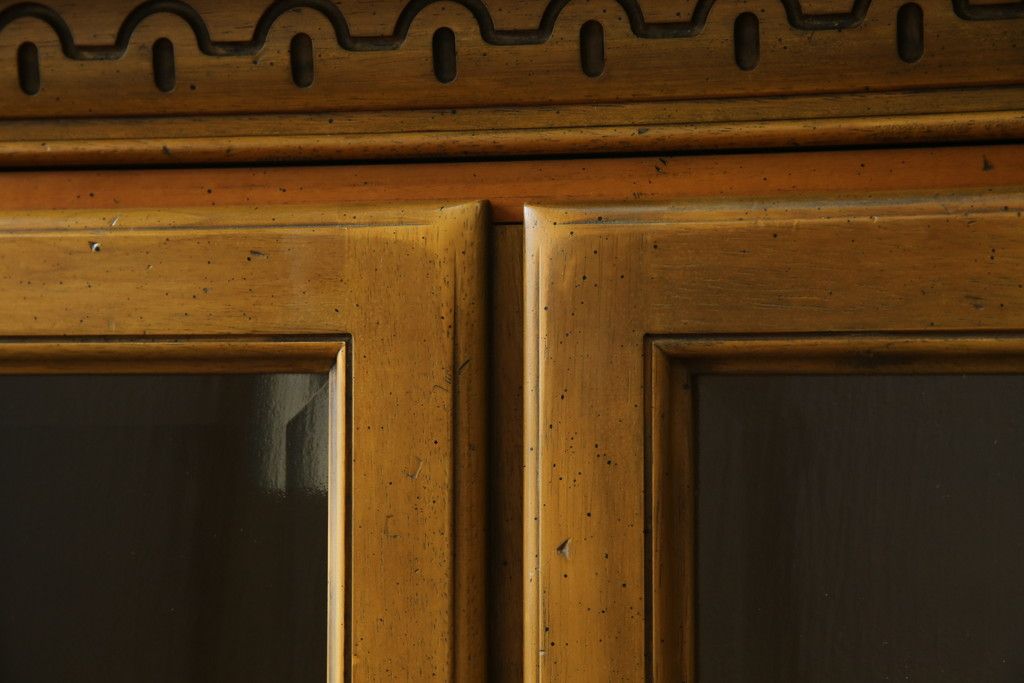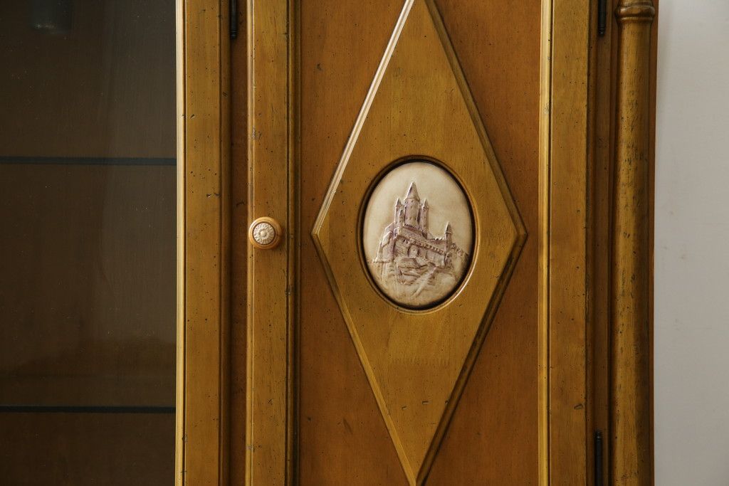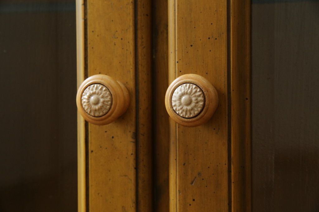 キャビネット・戸棚> サイドキャビネット > 中古 美品 カリモク家具(karimoku) 可愛い脚と陶板がアクセントのアンティーク調カントリーキャビネット(サイドボード、サイドキャビネット、収納棚、戸棚)(R-082615)