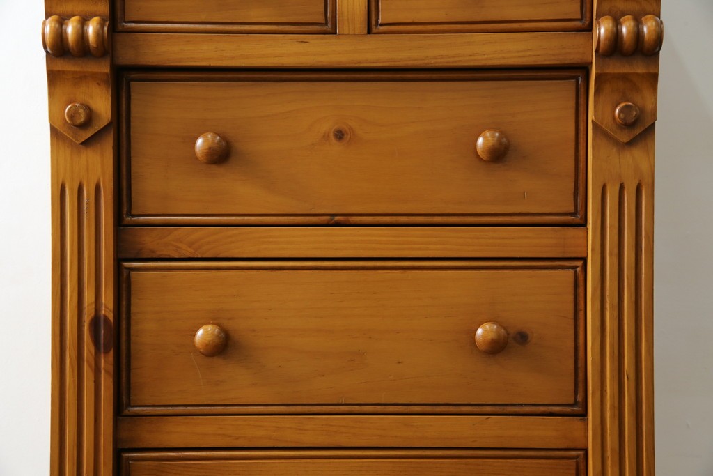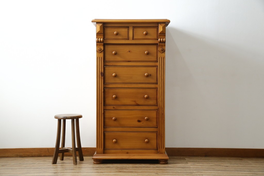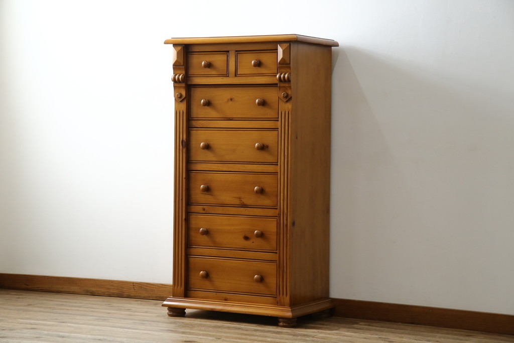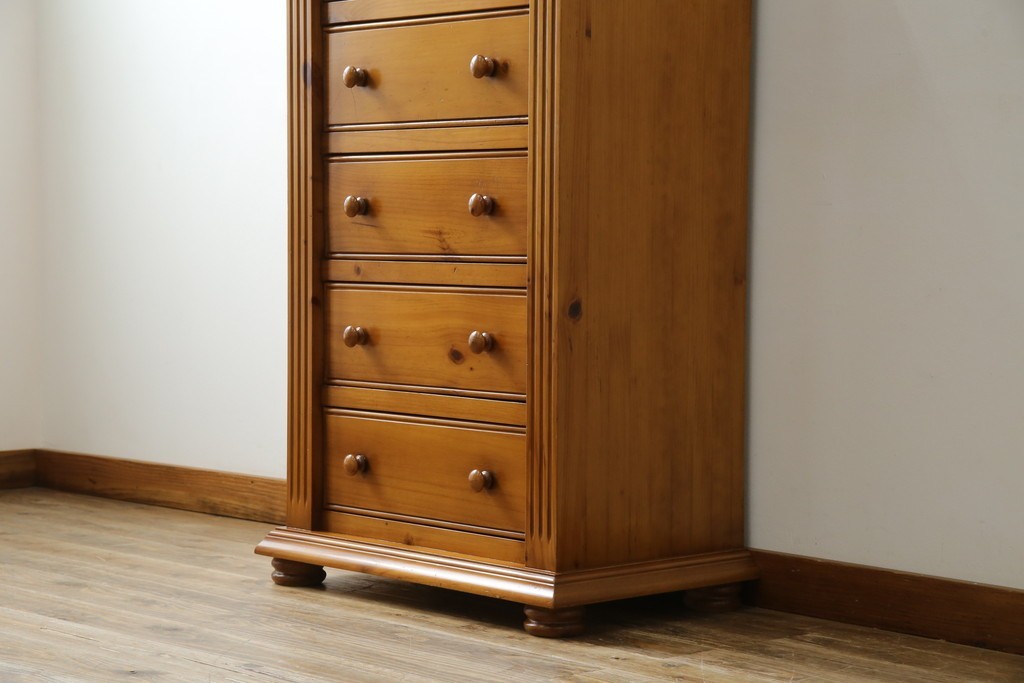 中古 美品 アメリカ輸入家具 パイン材 縦型 カントリースタイルの空間づくりにおすすめのトールチェスト (R-082646)