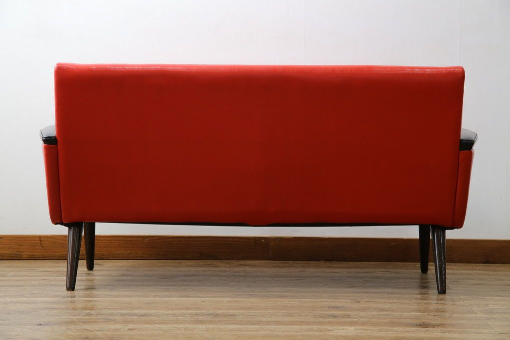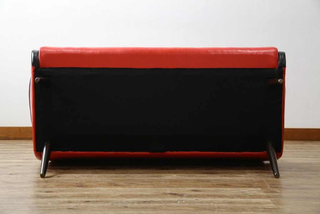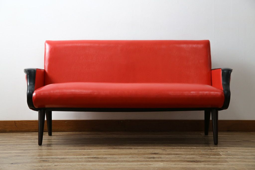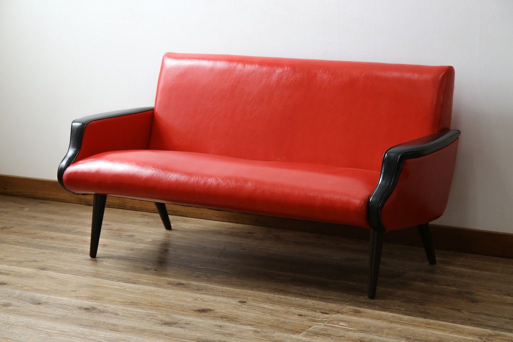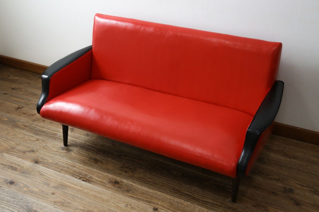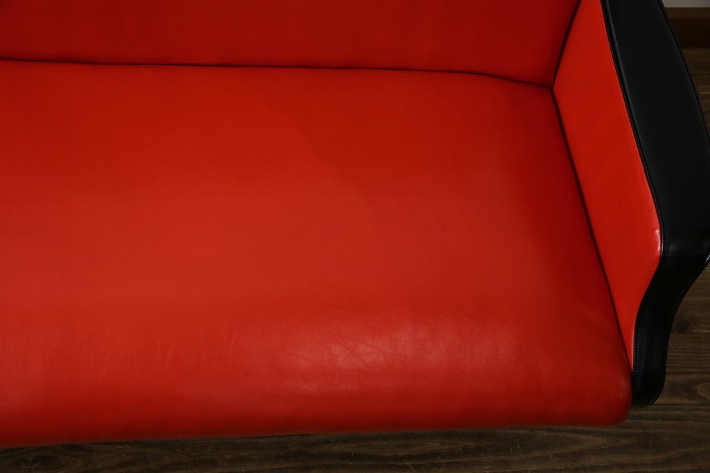 ソファ> 2人掛けソファ > 和製ビンテージ 1970年代 希少なレッドカラー 遊び心溢れる真紅の2人掛けレトロフェイクレザーソファ(2P、二人掛け、2人掛け、ヴィンテージ)(R-082667)