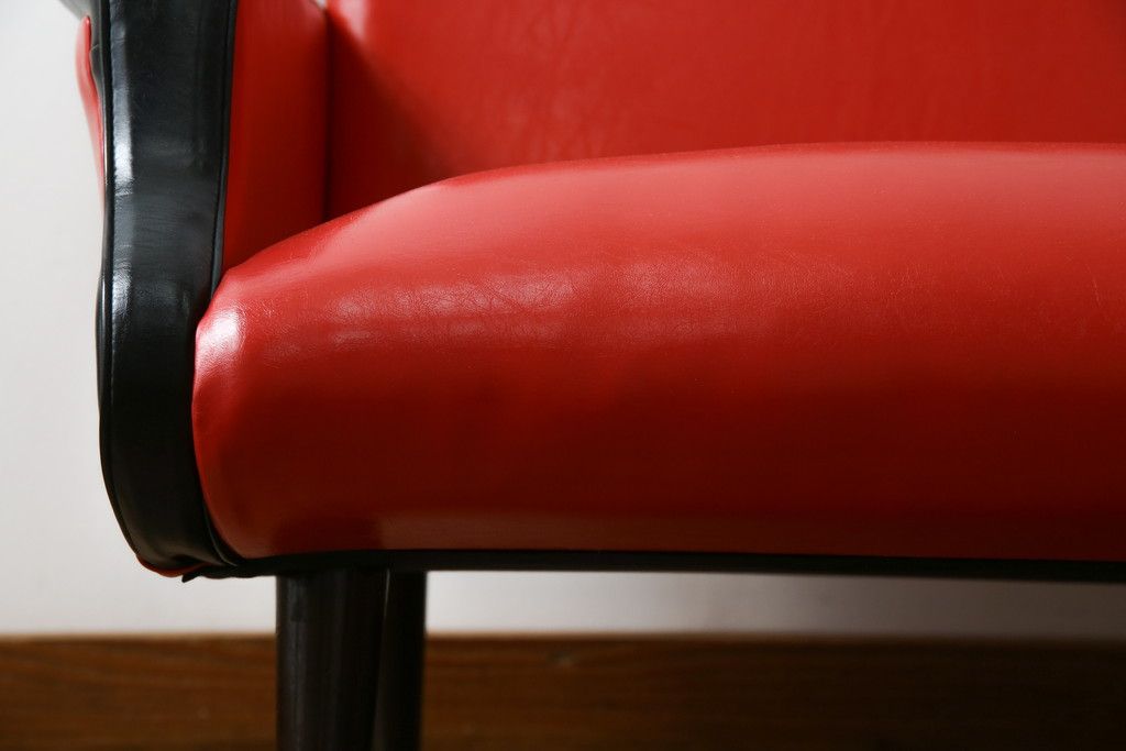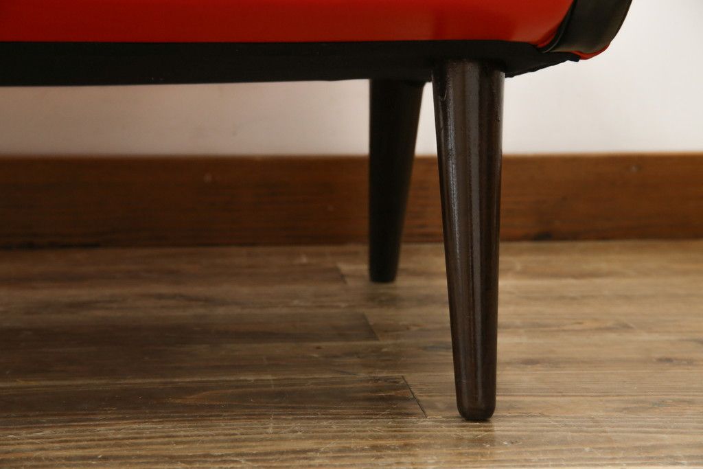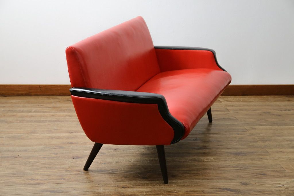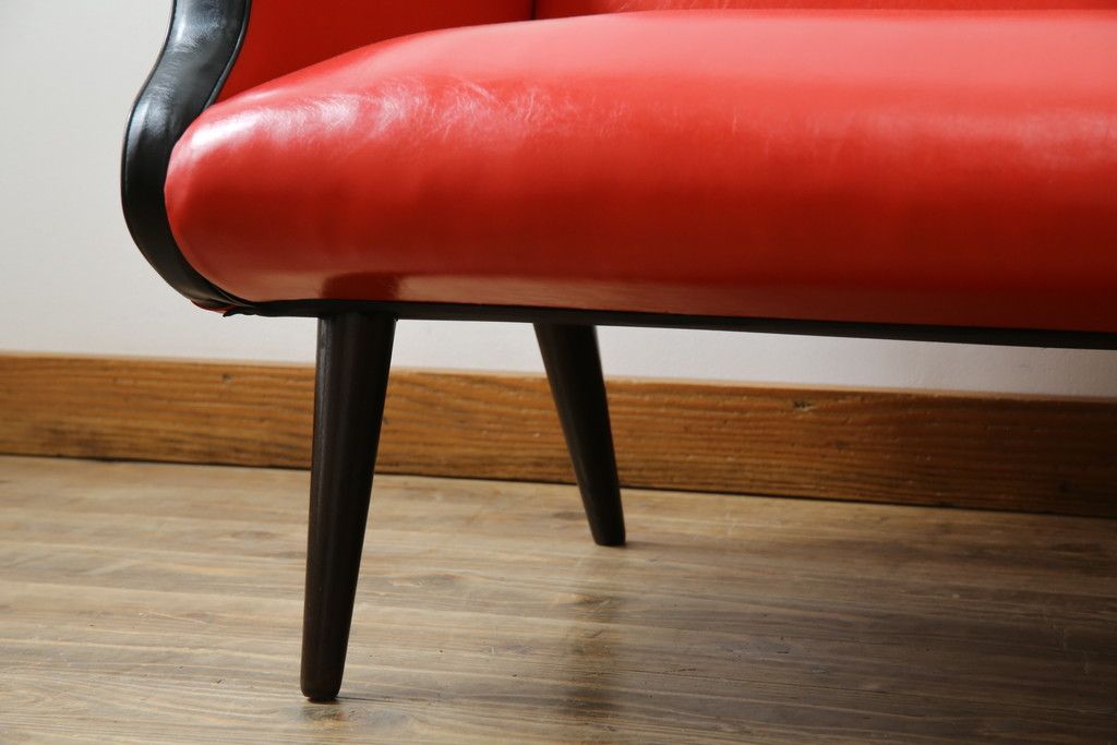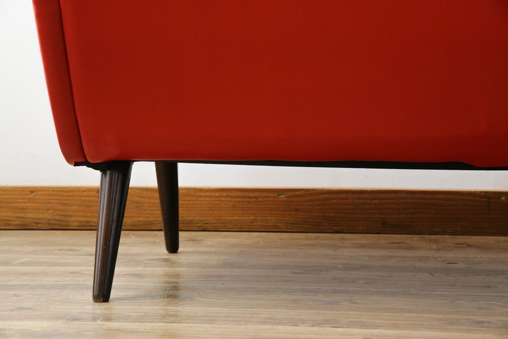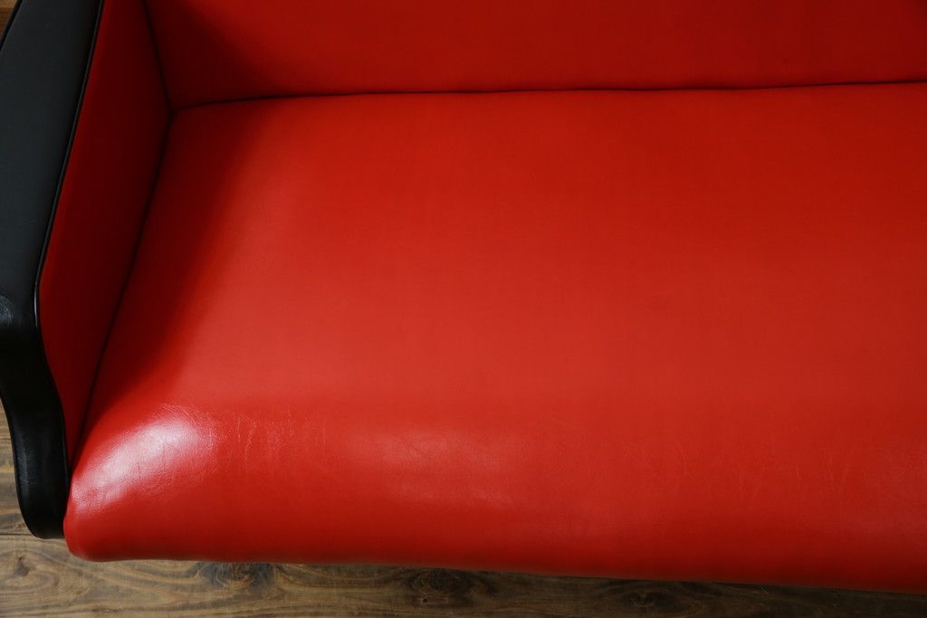 ソファ> 2人掛けソファ > 和製ビンテージ 1970年代 希少なレッドカラー 遊び心溢れる真紅の2人掛けレトロフェイクレザーソファ(2P、二人掛け、2人掛け、ヴィンテージ)(R-082667)