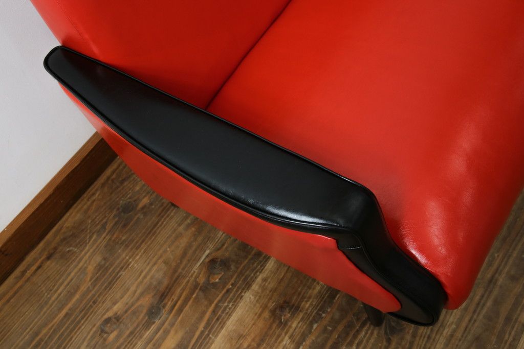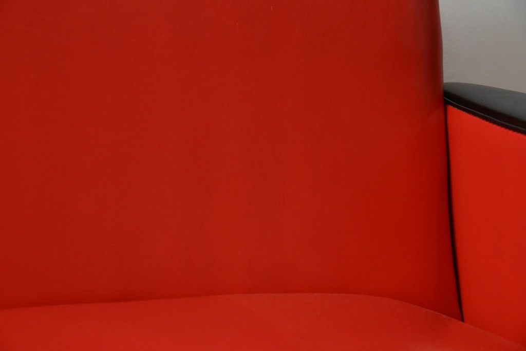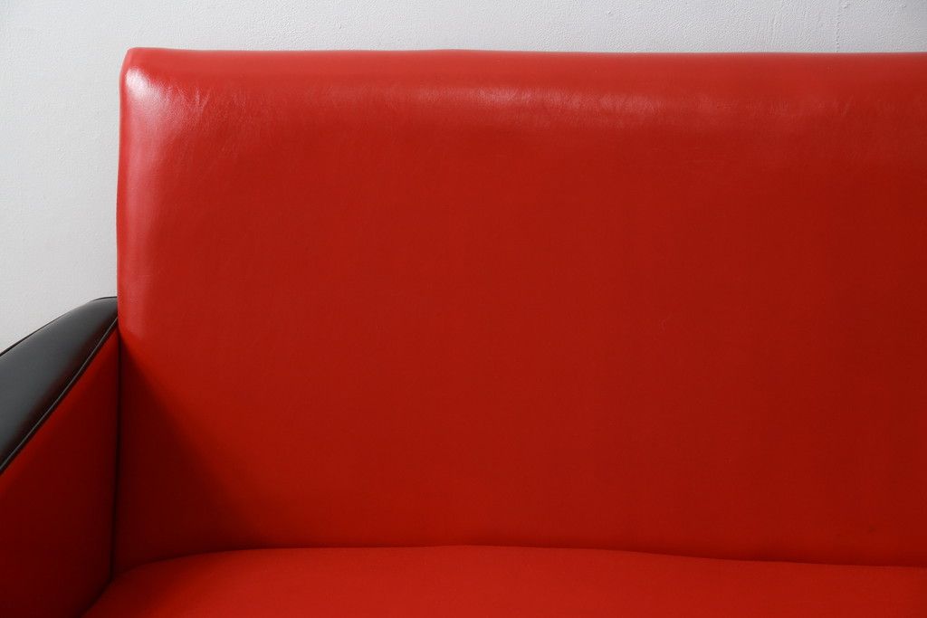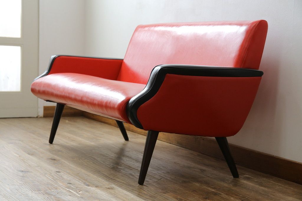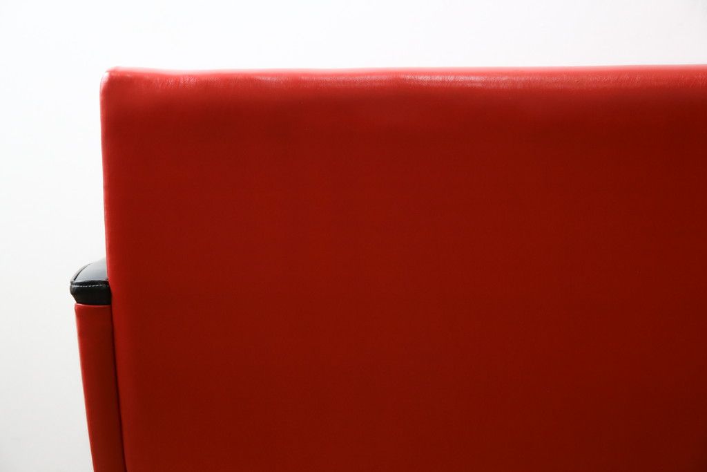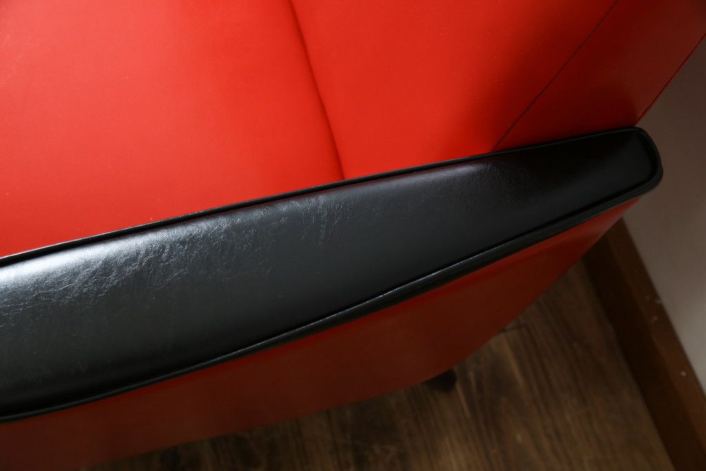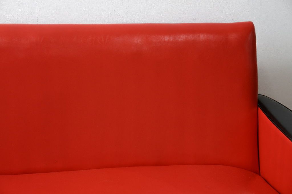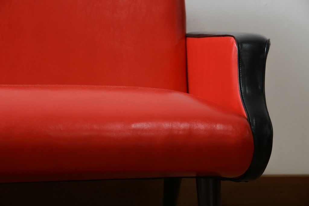 ソファ > 和製ビンテージ 1970年代 希少なレッドカラー 遊び心溢れる真紅の2人掛けレトロフェイクレザーソファ(2P、二人掛け、2人掛け、ヴィンテージ)(R-082667)