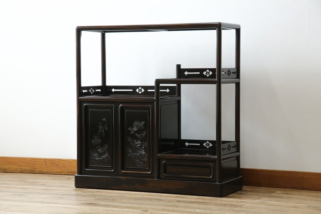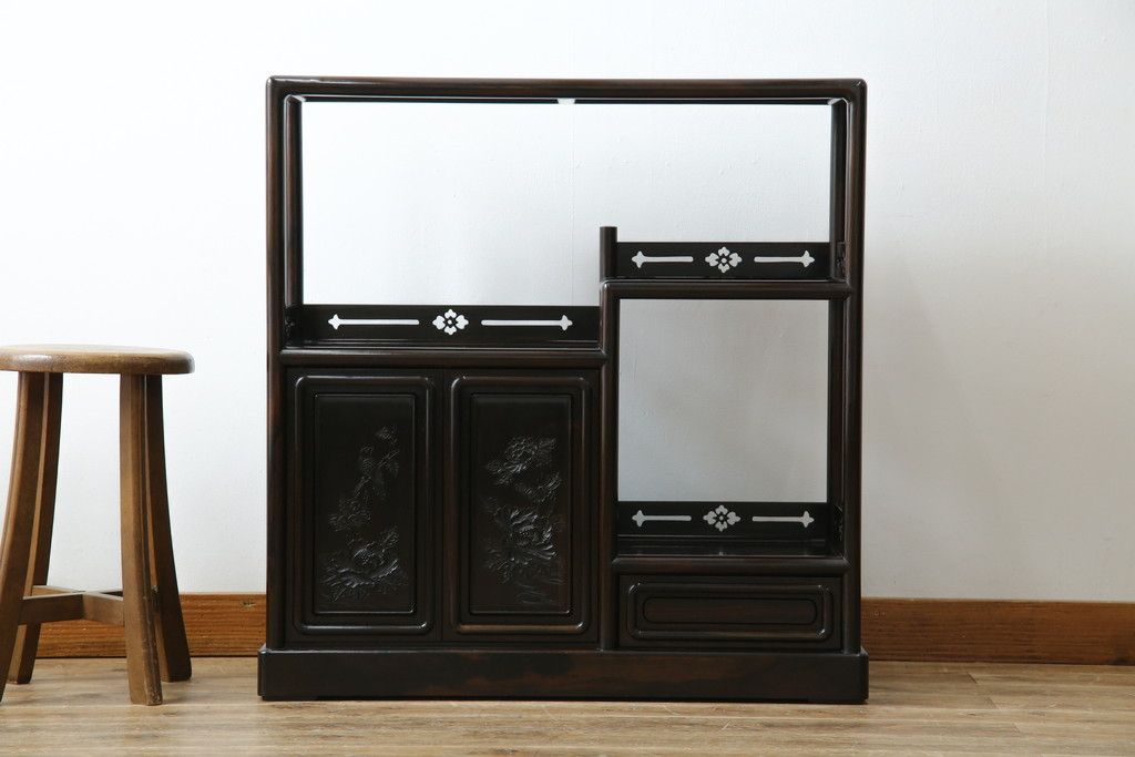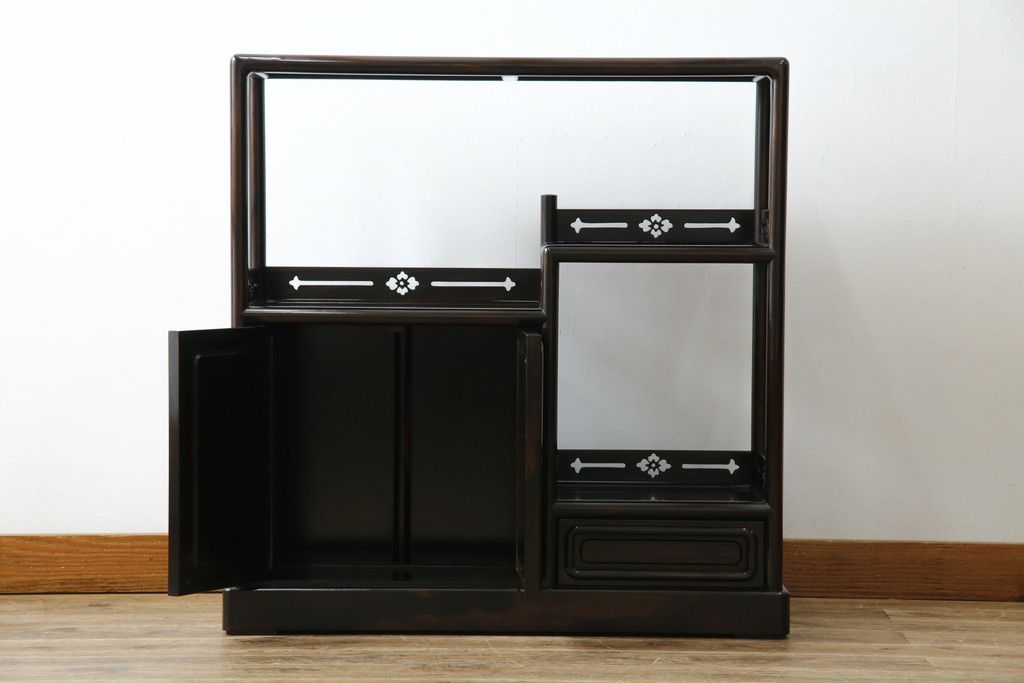キャビネット・戸棚 > 中古 美品 黒檀の風合いが魅力の小振りな茶棚(コクタン、飾り棚、違い棚、収納棚、戸棚、民芸家具)(R-082691)