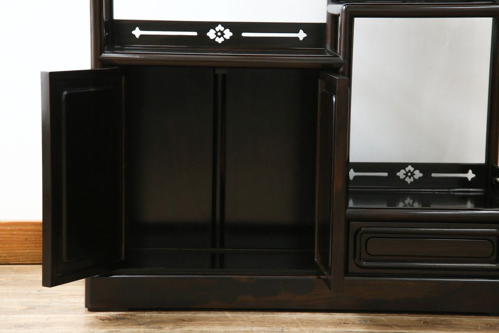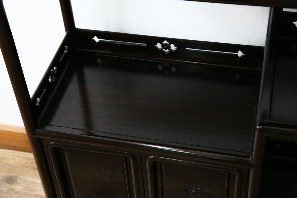 和箪笥> 茶箪笥・茶棚 > 中古 美品 黒檀の風合いが魅力の小振りな茶棚(コクタン、飾り棚、違い棚、収納棚、戸棚、民芸家具)(R-082691)