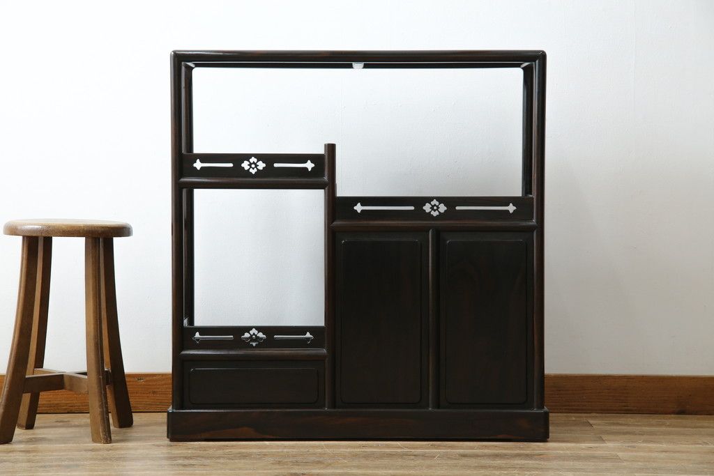 和箪笥 > 中古 美品 黒檀の風合いが魅力の小振りな茶棚(コクタン、飾り棚、違い棚、収納棚、戸棚、民芸家具)(R-082691)