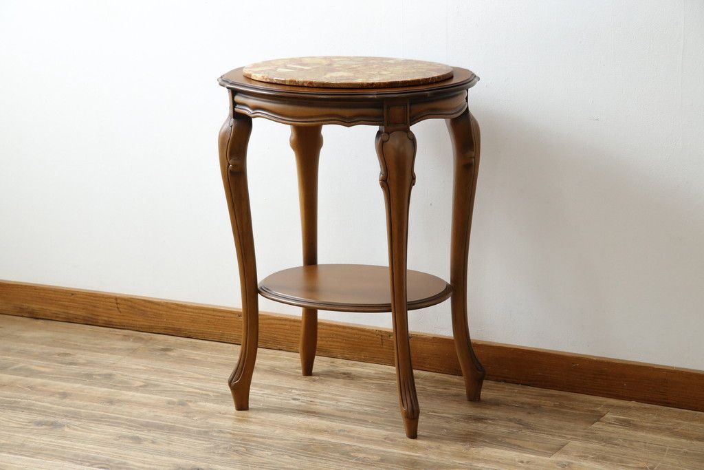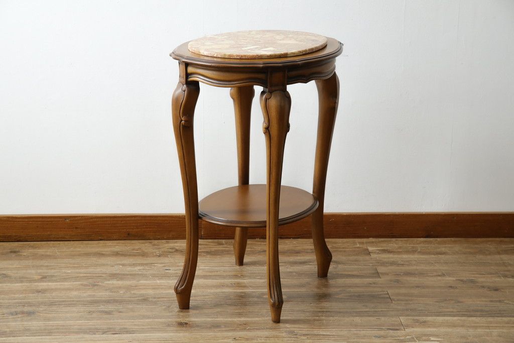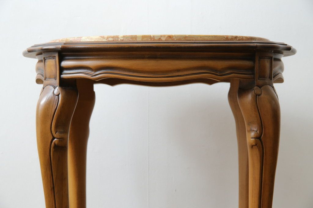 ラフジュ工房> テーブル > 中古 イタリア 大理石トップのかわいいデザインのサイドテーブル(フラワースタンド、コンソールテーブル、ナイトテーブル、花台、飾り台)(R-082699)