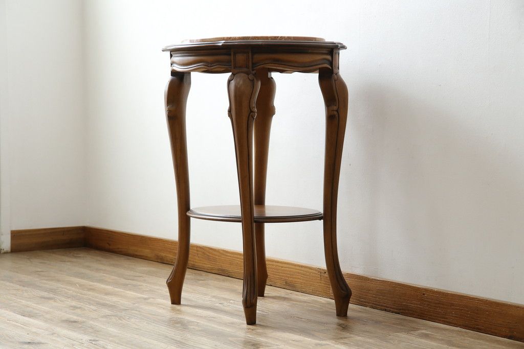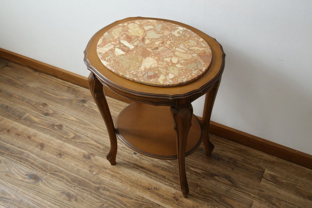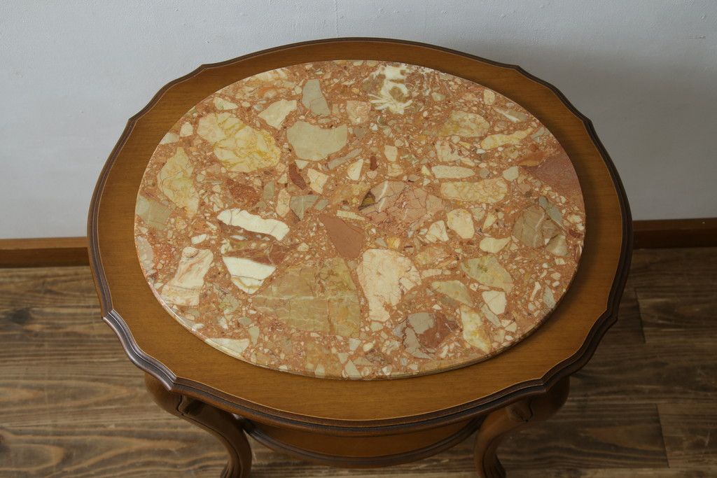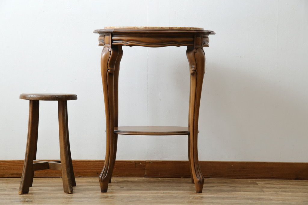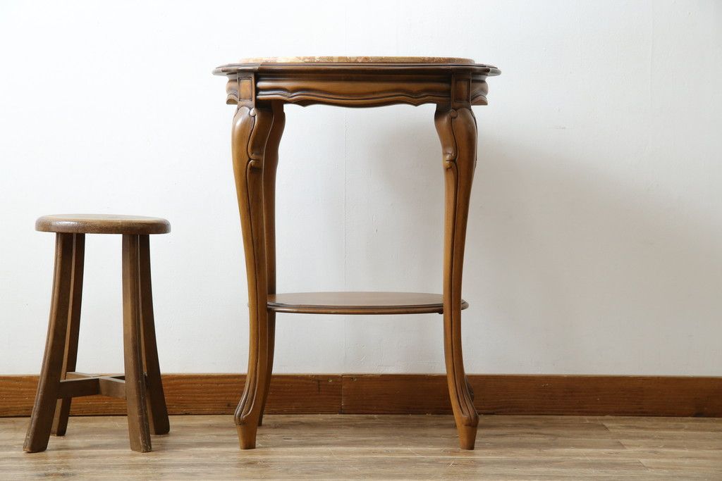 ラフジュ工房> 花台・飾り台 > 中古 イタリア 大理石トップのかわいいデザインのサイドテーブル(フラワースタンド、コンソールテーブル、ナイトテーブル、花台、飾り台)(R-082699)