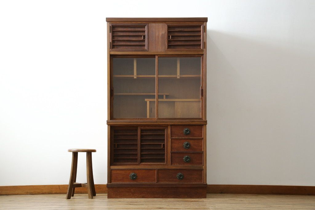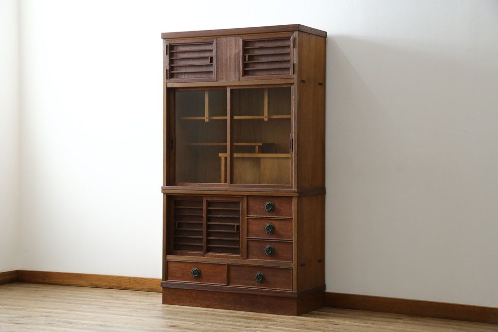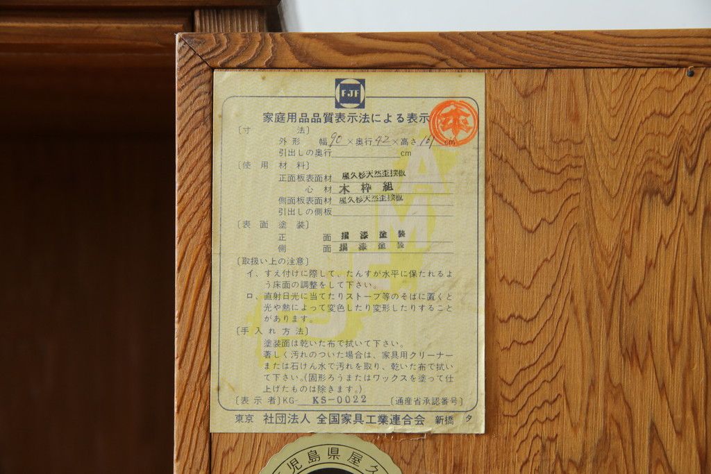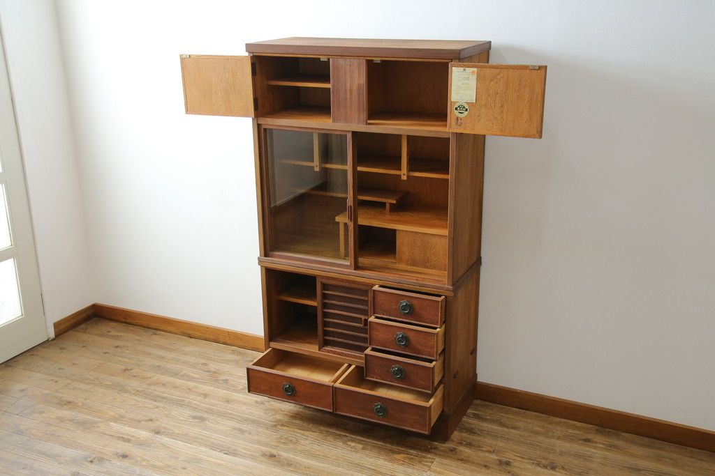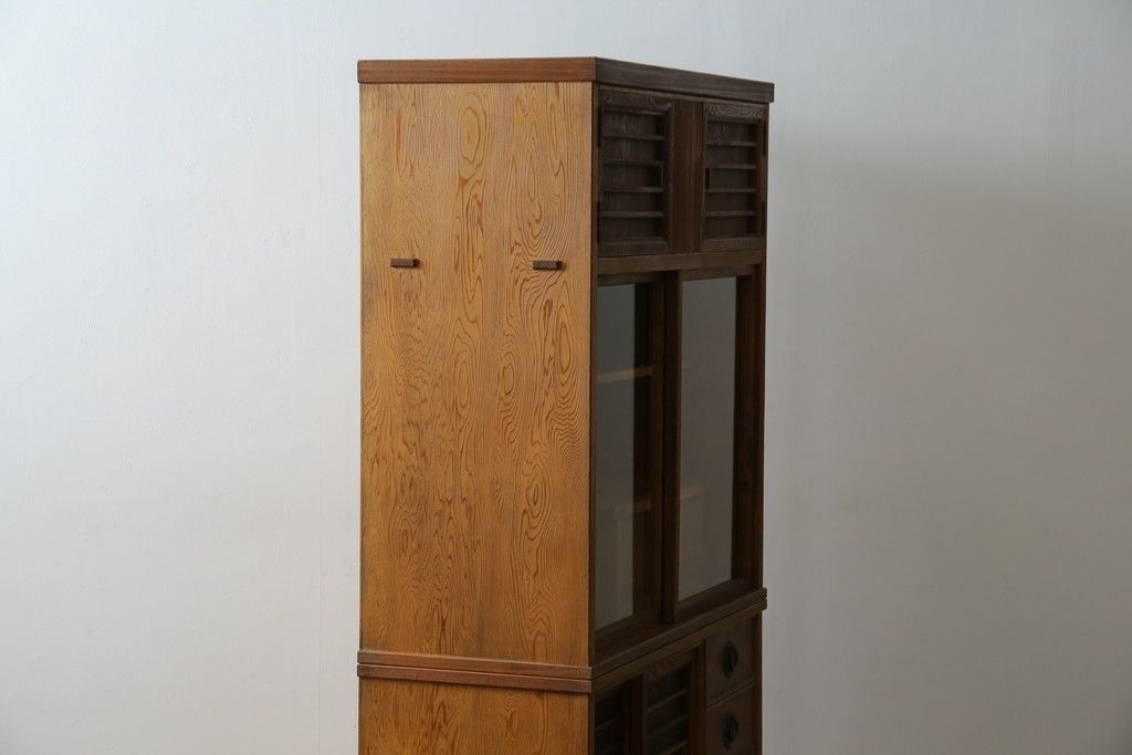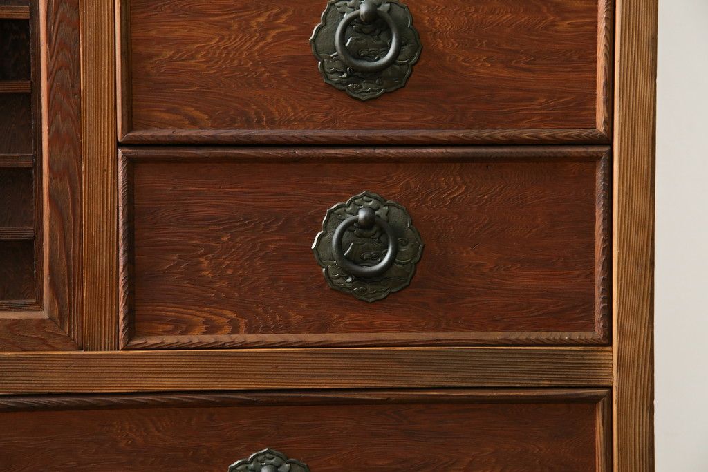 和箪笥 > 和製ビンテージ 美品 屋久杉 優しい色合いと杢目が魅力的な茶箪笥(茶タンス、収納棚、戸棚、茶棚、飾り棚、キャビネット、ヴィンテージ)(R-082701)