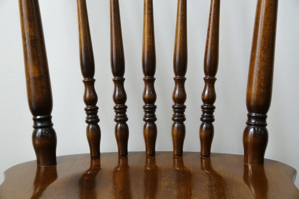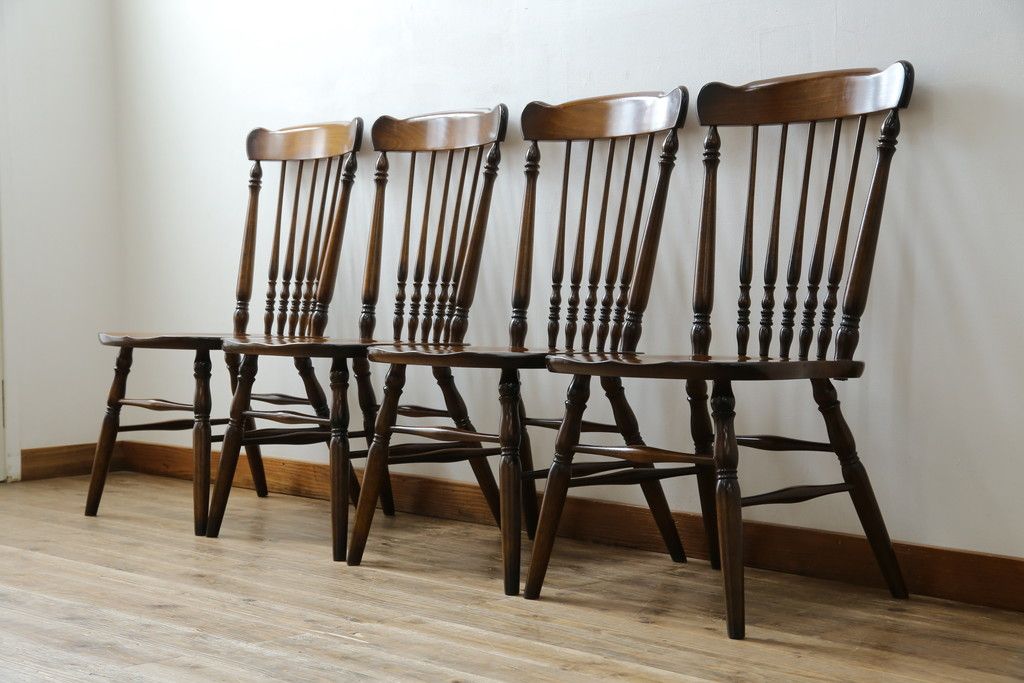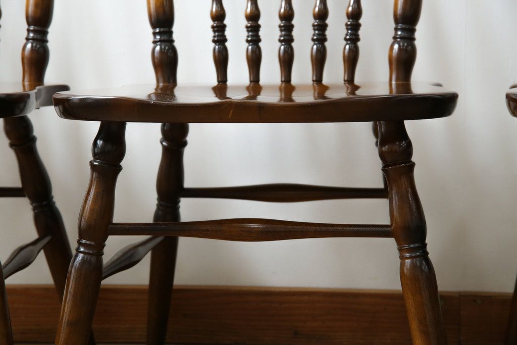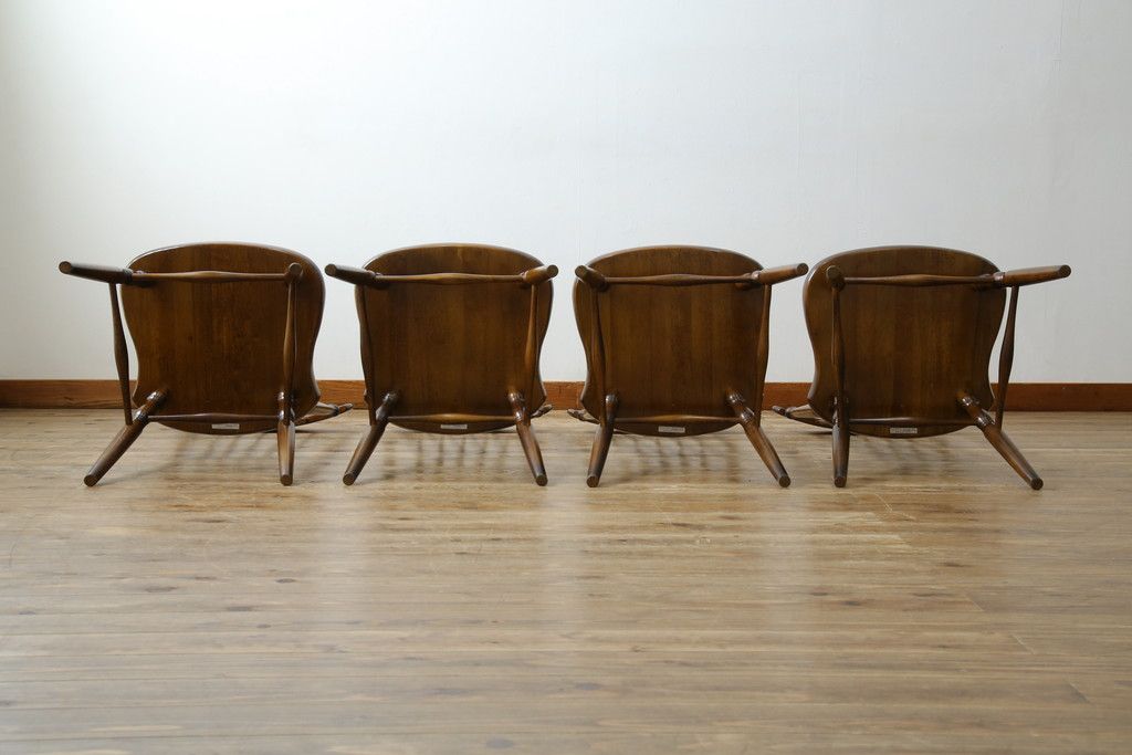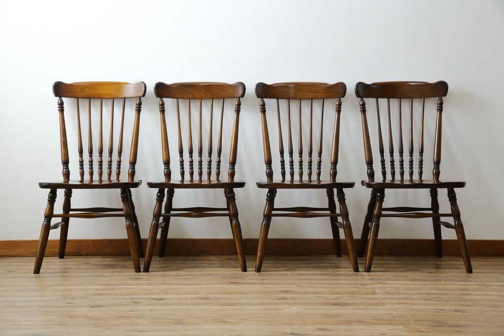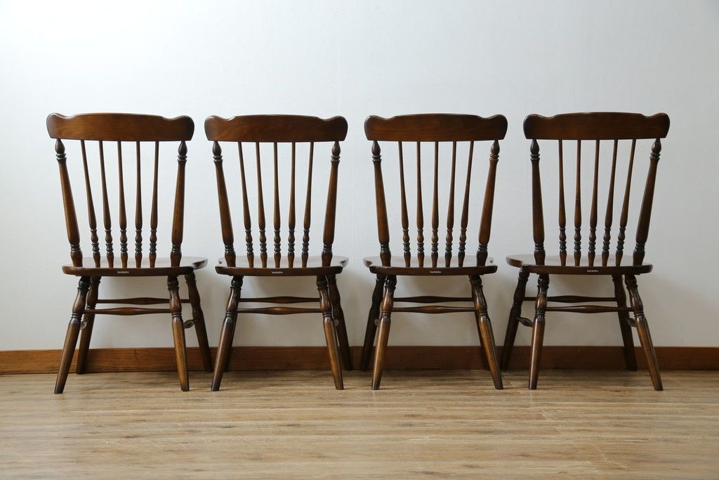椅子・ベンチ> ダイニングチェア > 中古 美品 カリモク家具(karimoku) コロニアルシリーズ(Colonial) クラシカルな美しさと快適性を兼ね備えたウィンザーチェア4脚セット(ダイニングチェア、アームレスチェア、椅子、イス、バラ売り可能)(R-082710)