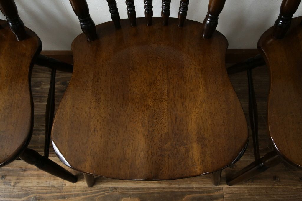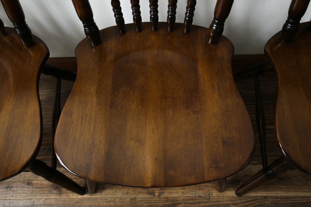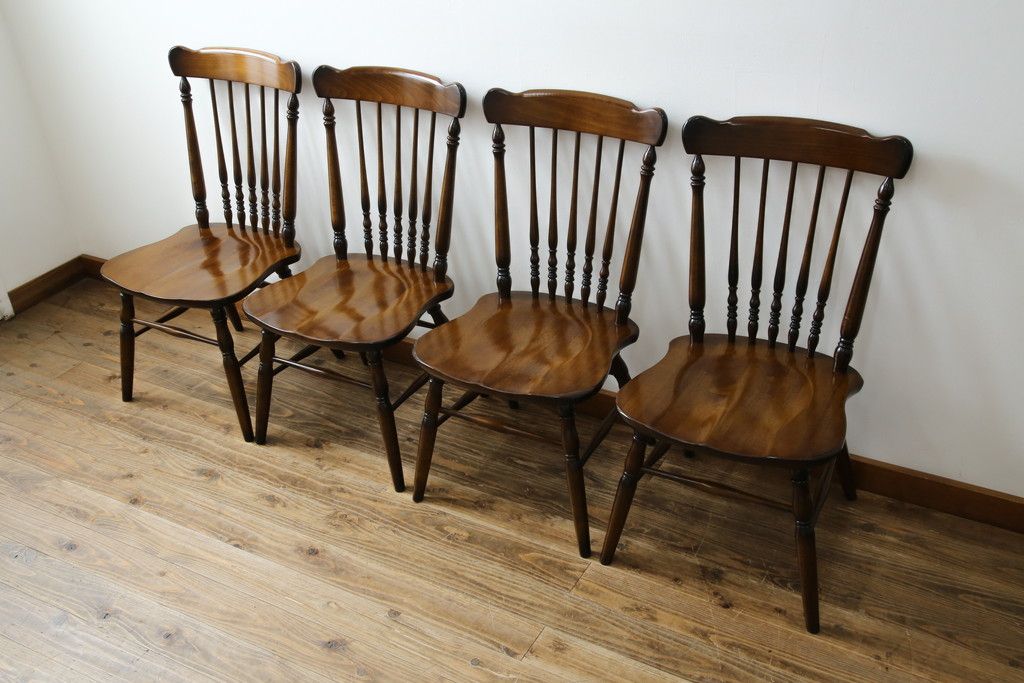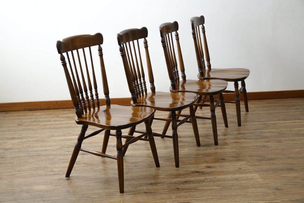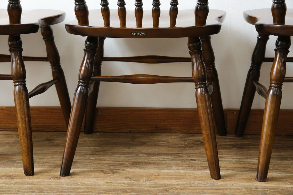 中古 美品 カリモク家具(karimoku) コロニアルシリーズ(Colonial) クラシカルな美しさと快適性を兼ね備えたウィンザーチェア4脚セット(ダイニングチェア、アームレスチェア、椅子、イス、バラ売り可能)(R-082710)